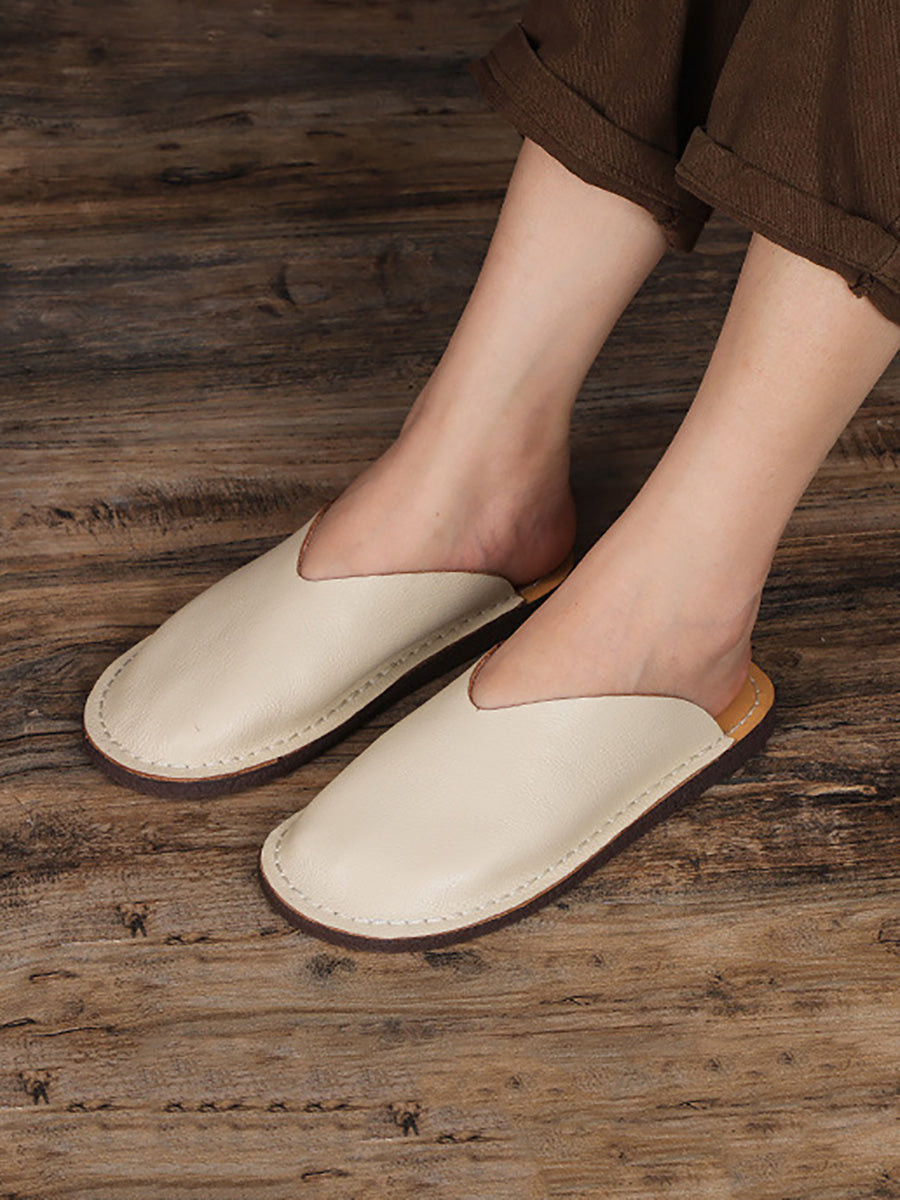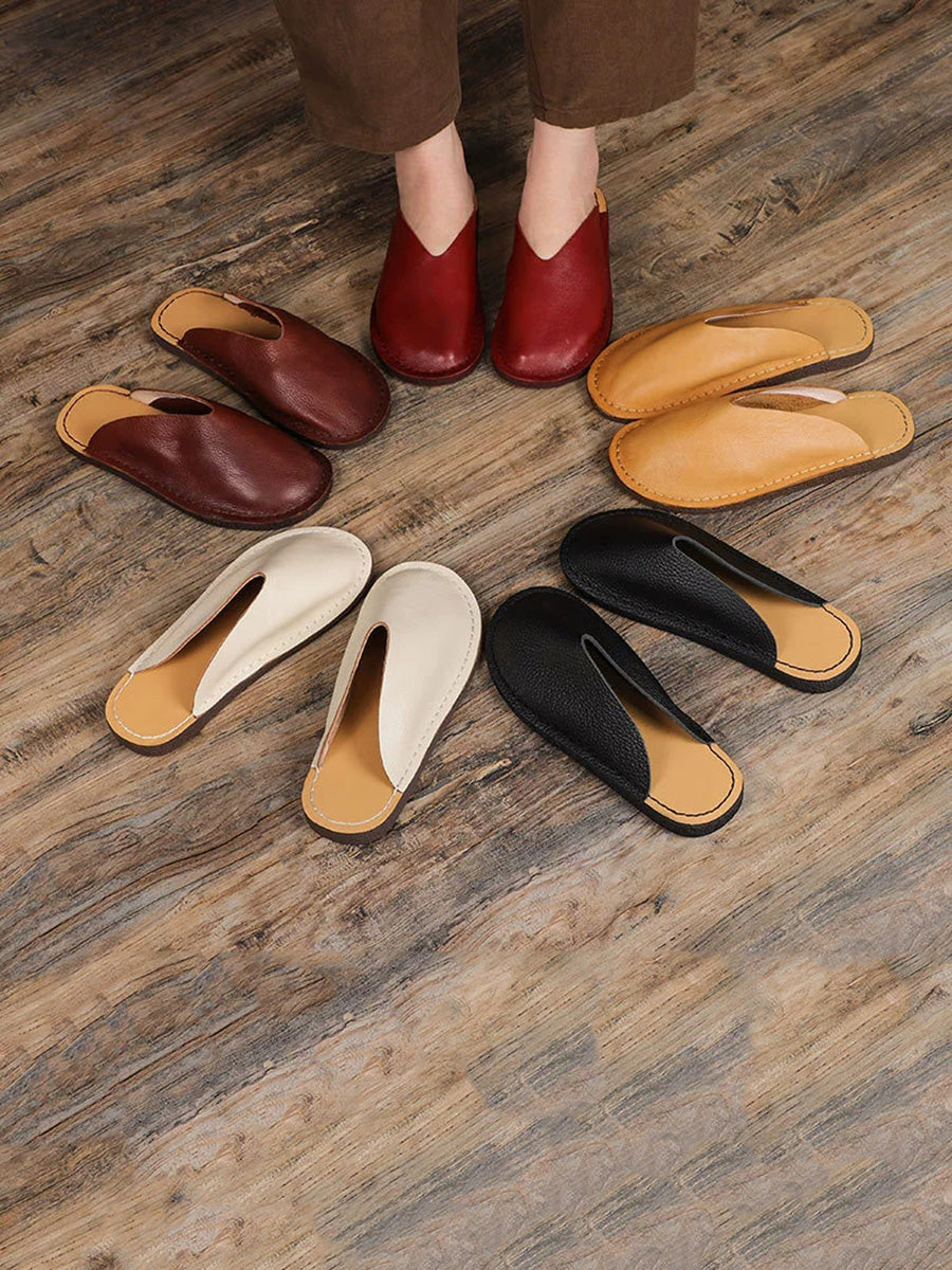 Women Casual Genuine Leather Flat Slippers