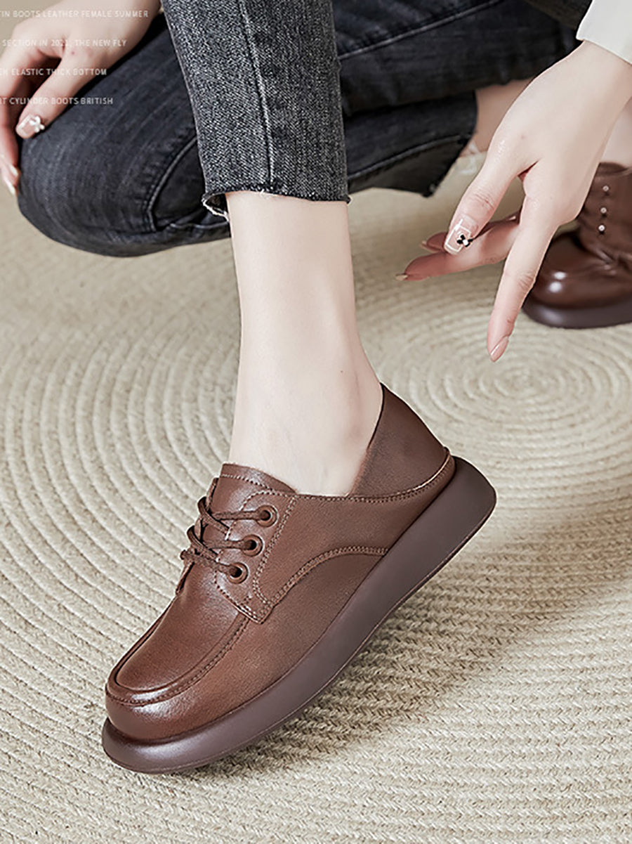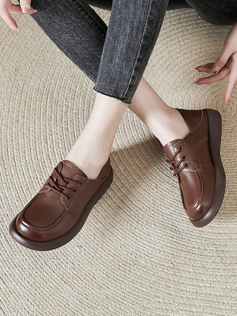 Women Casual Genuine Leather Low Heel Loafer Shoes