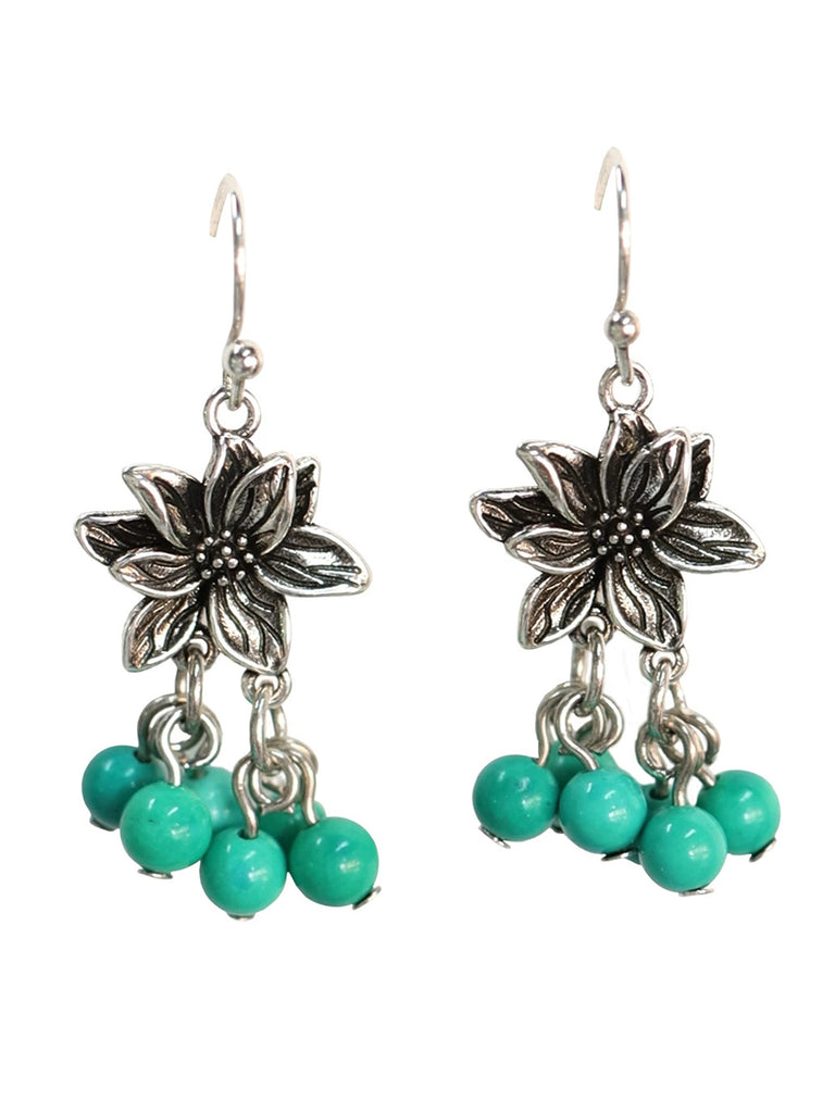 Women Ethnic Alloy Lotus Turquoise Beads Tassel Earrings