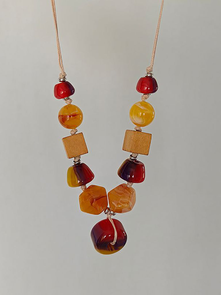 Women Ethnic Geometric Resin Weave Pandent Necklace