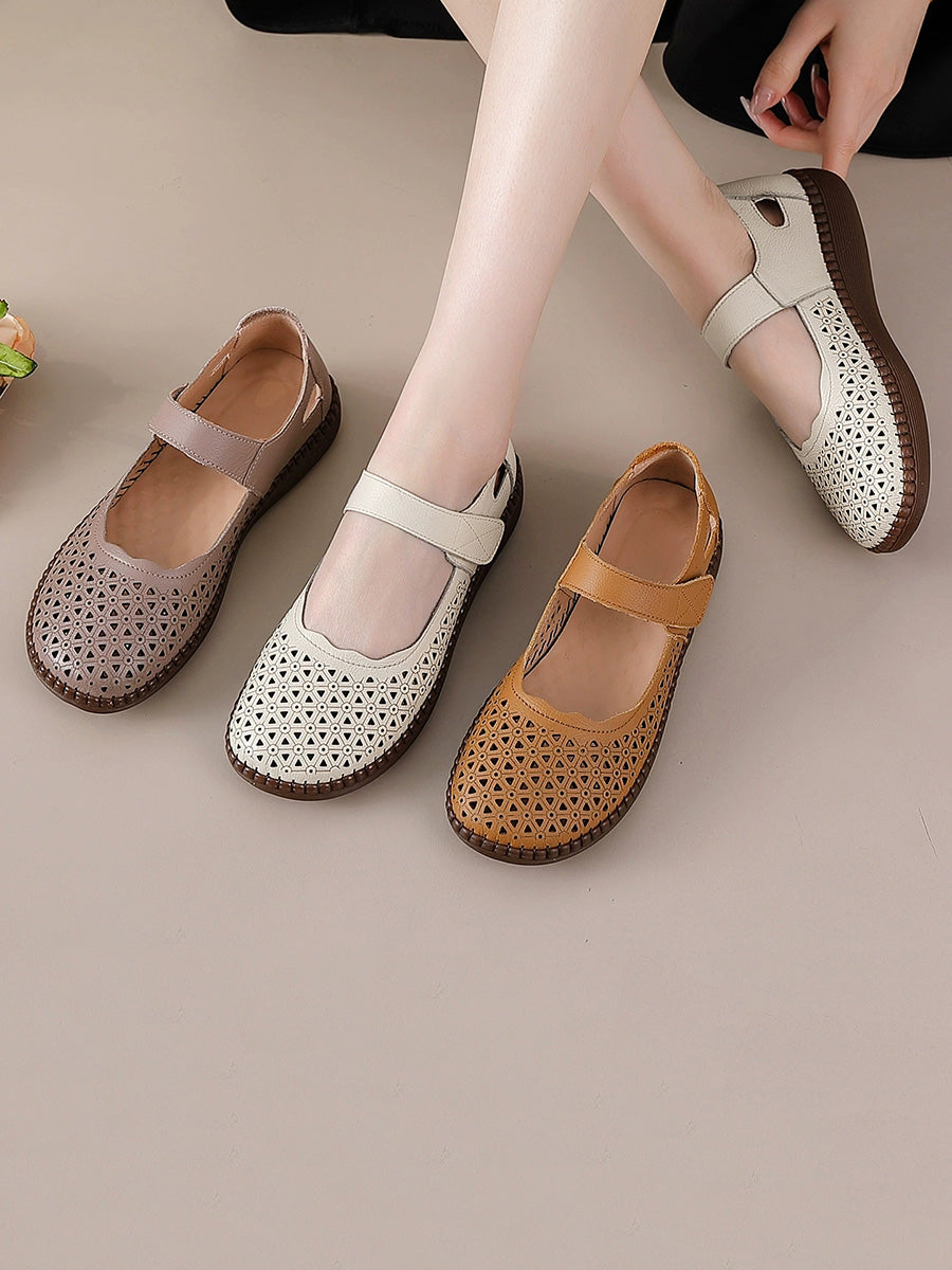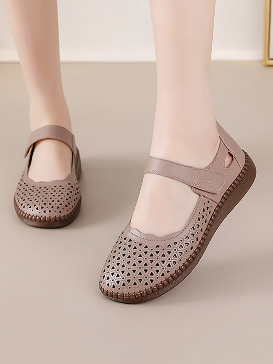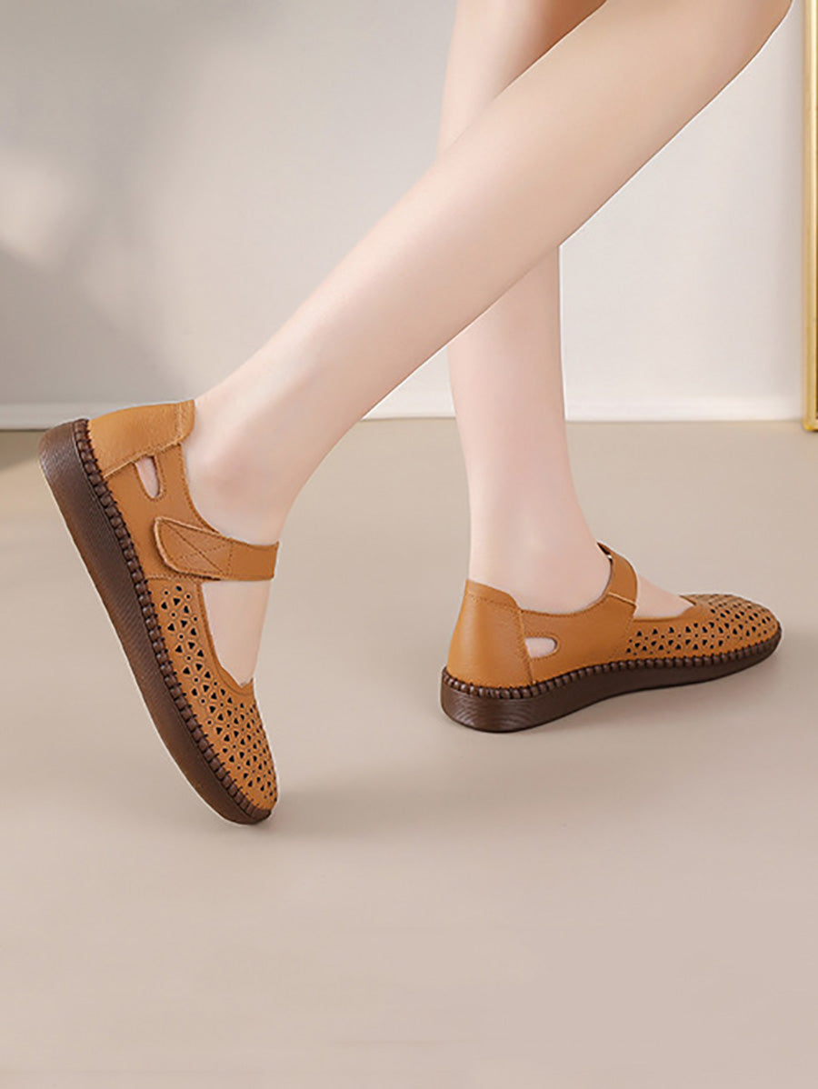Women Genuine Leather Hollow Out Flat Shoes
