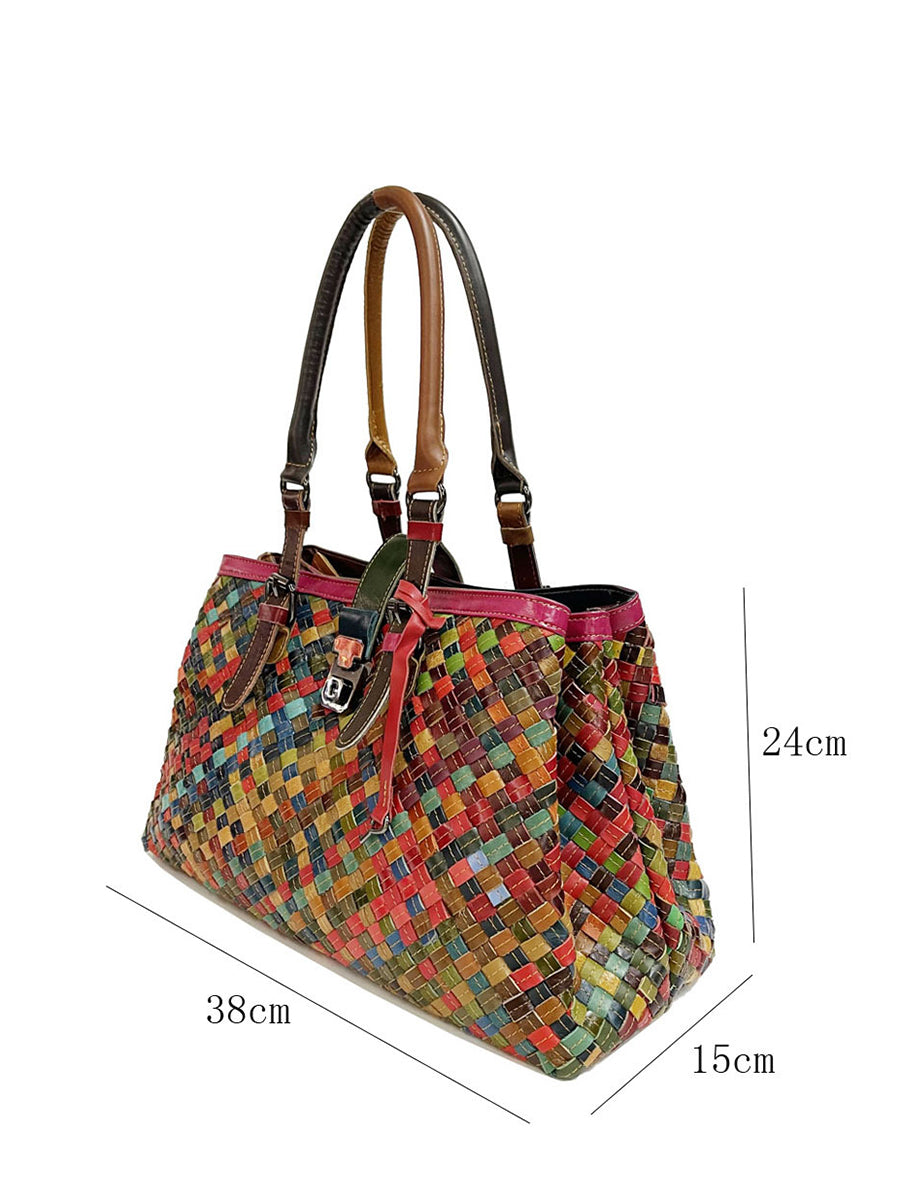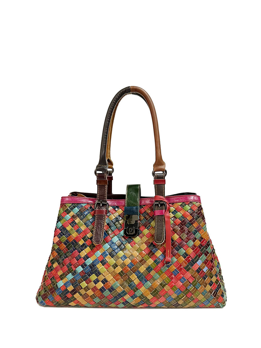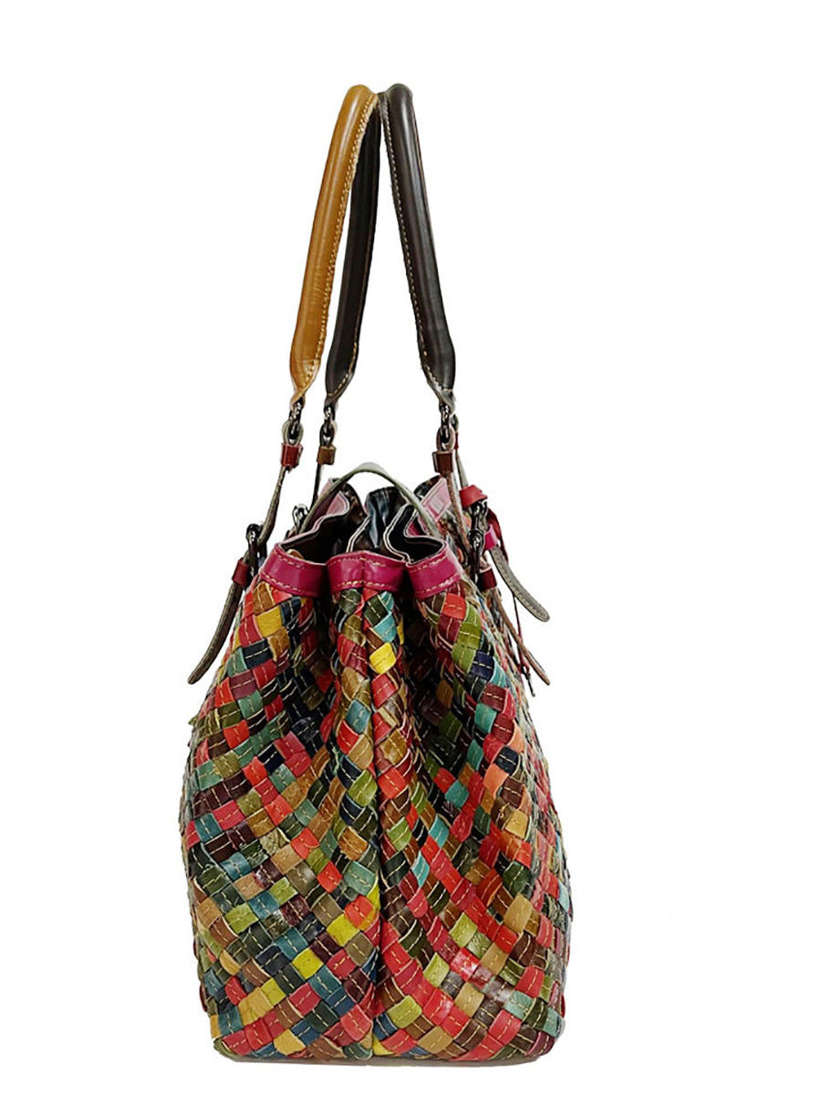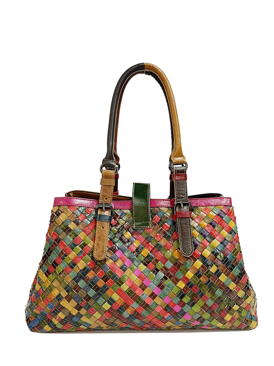 This bag is made of high-quality genuine leather and first-layer cowhide. The color is natural, and the woven bag design is unique. It can be used as a handbag, shoulder bag or messenger bag. It has multiple pockets inside, which can hold a mobile phone, wallet, ID bag, tissue, umbrella, etc. The zipper closure is safe and reliable.