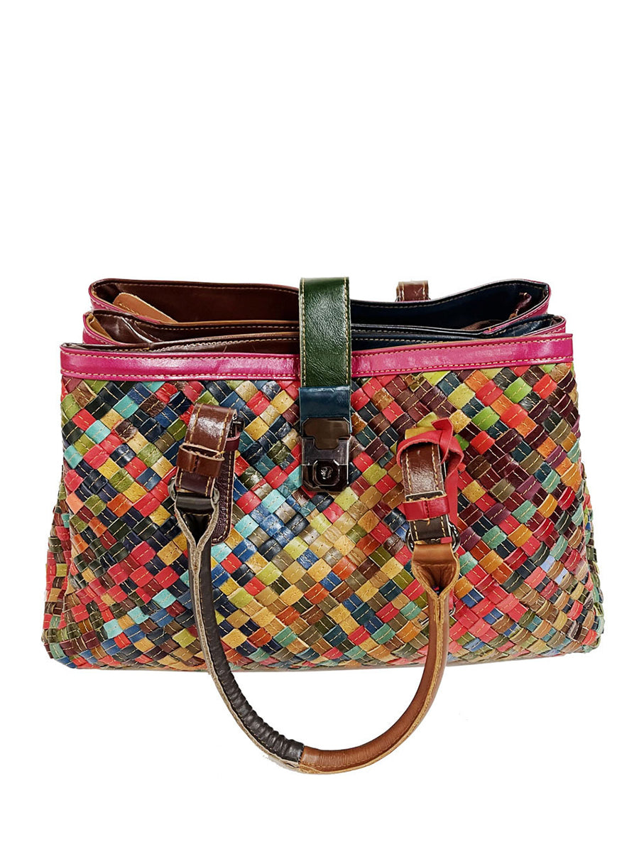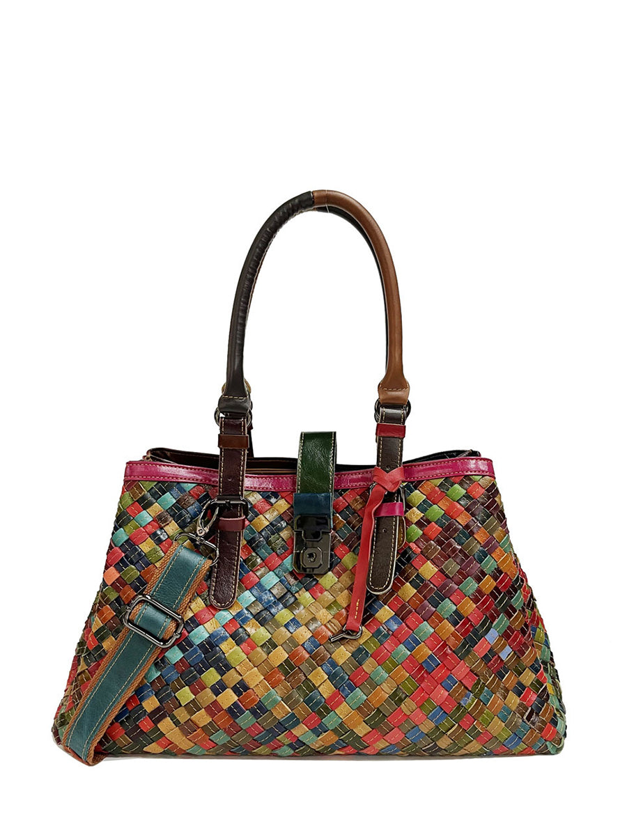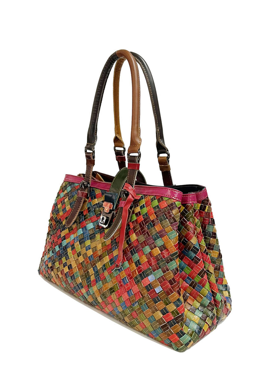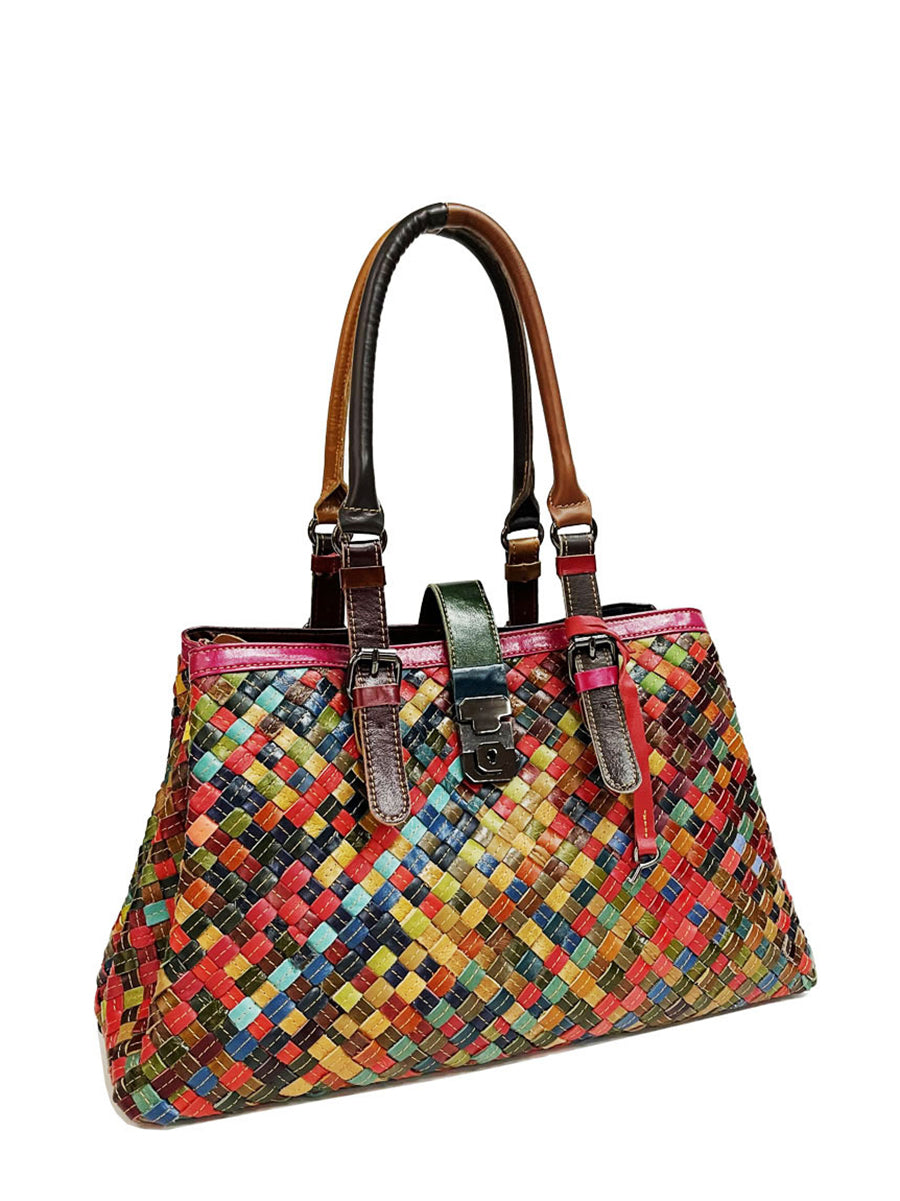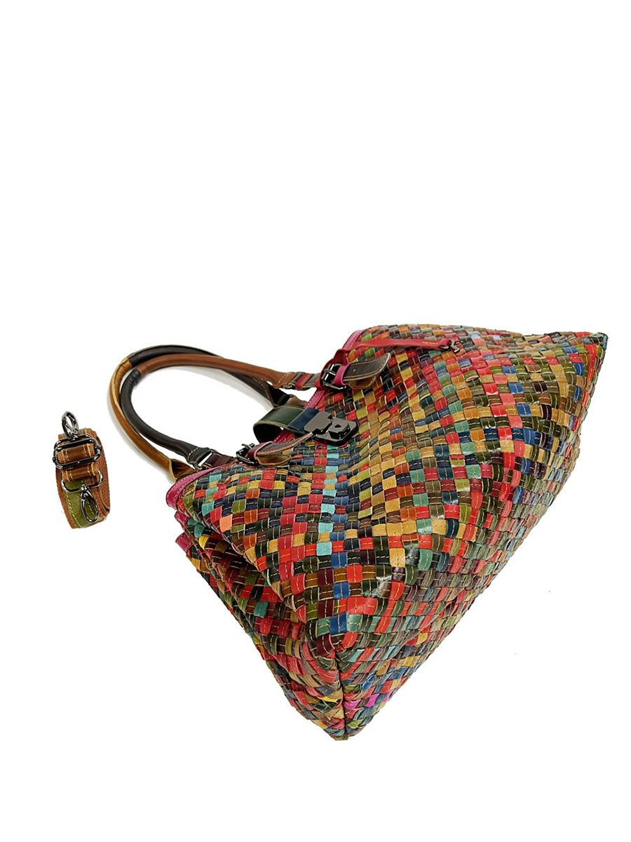 This bag is made of high-quality genuine leather and first-layer cowhide. The color is natural, and the woven bag design is unique. It can be used as a handbag, shoulder bag or messenger bag. It has multiple pockets inside, which can hold a mobile phone, wallet, ID bag, tissue, umbrella, etc. The zipper closure is safe and reliable.