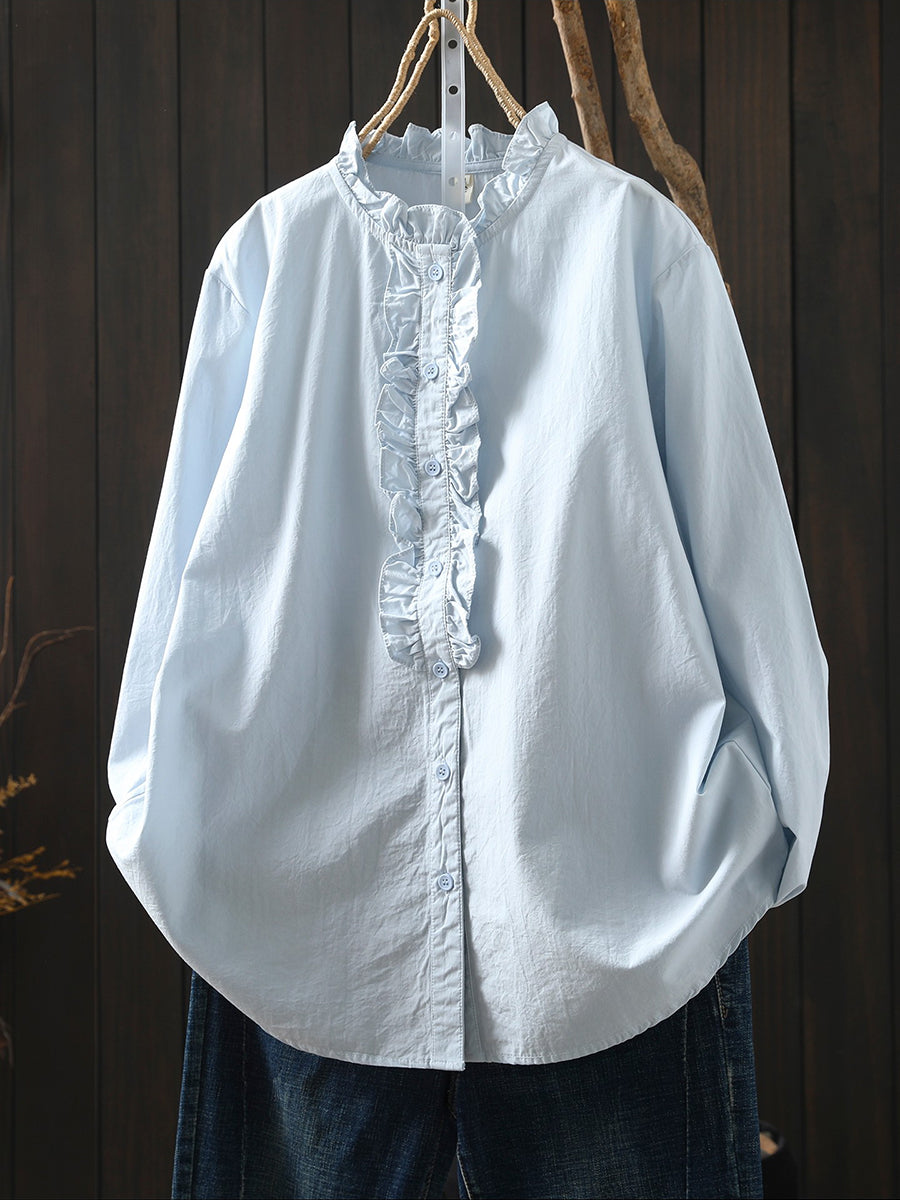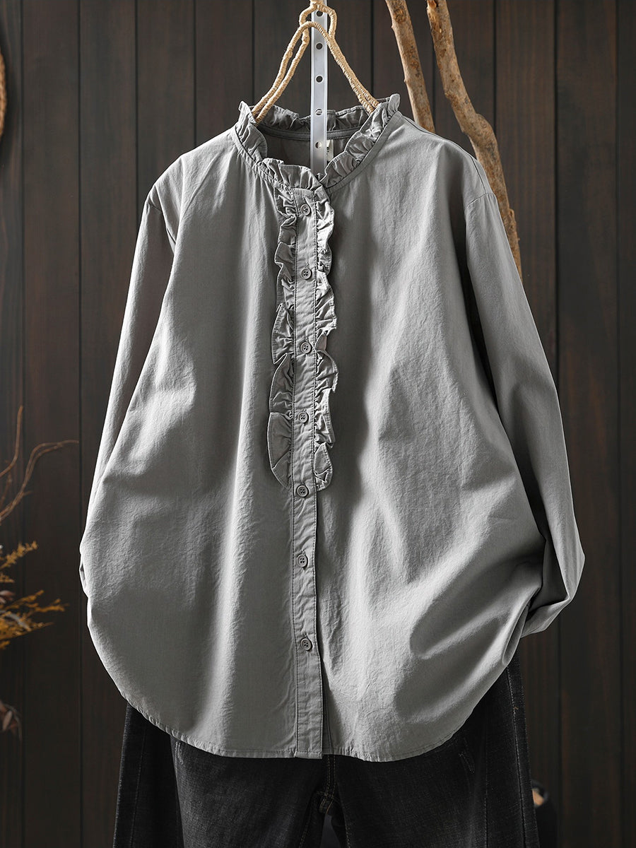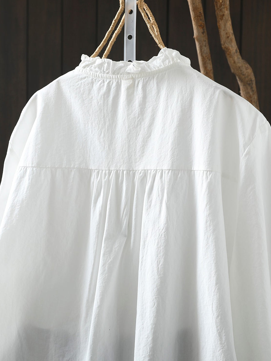 Women Spring Artsy 100%Cotton Stand Collar Shirt