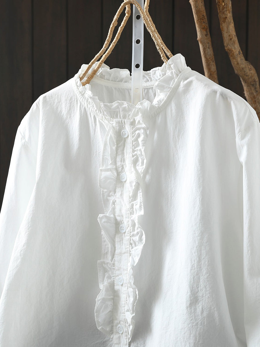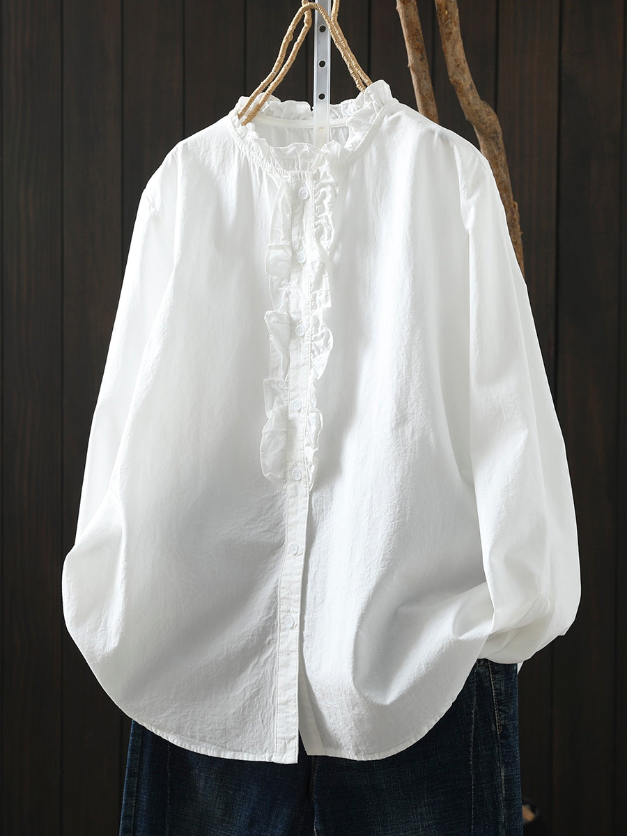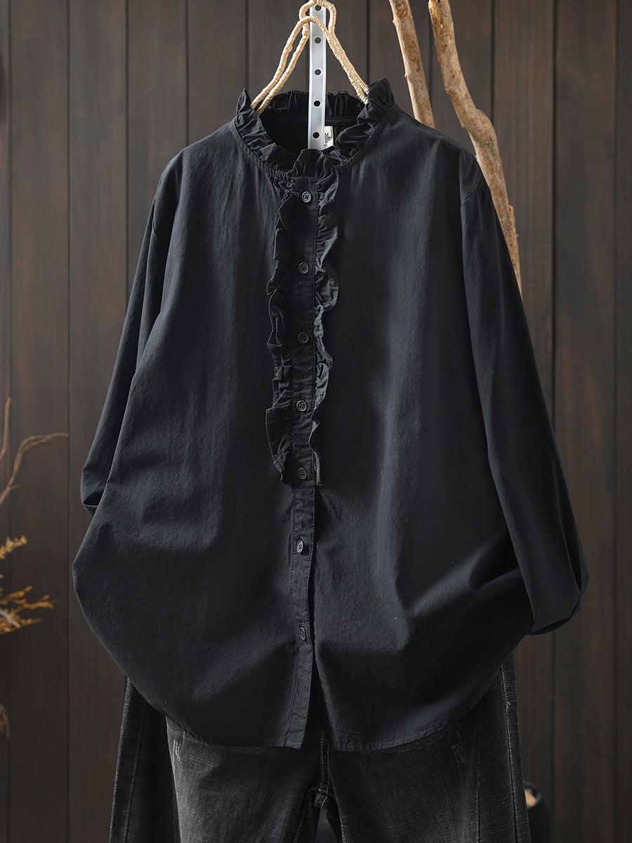 Women Spring Artsy 100%Cotton Stand Collar Shirt