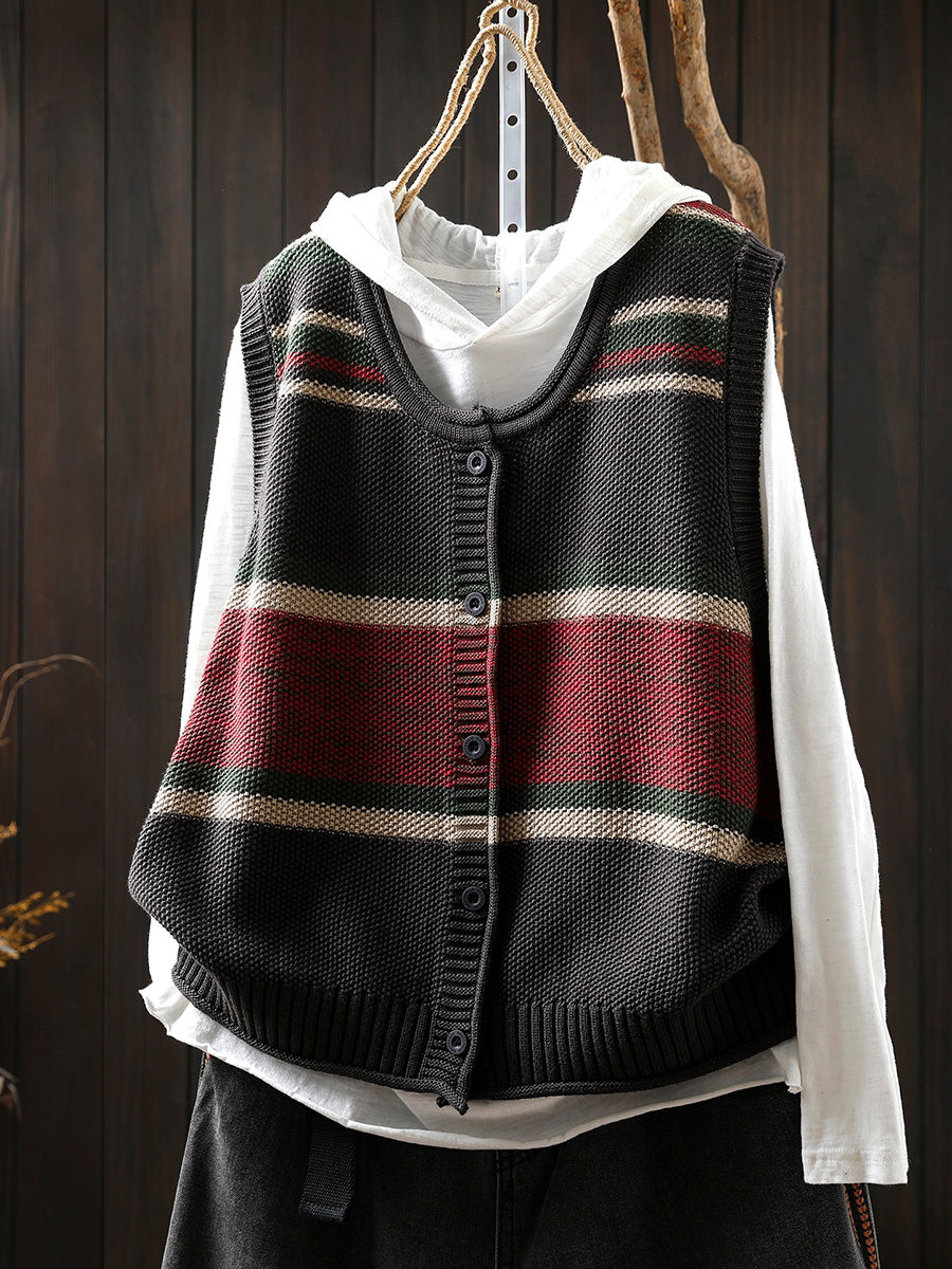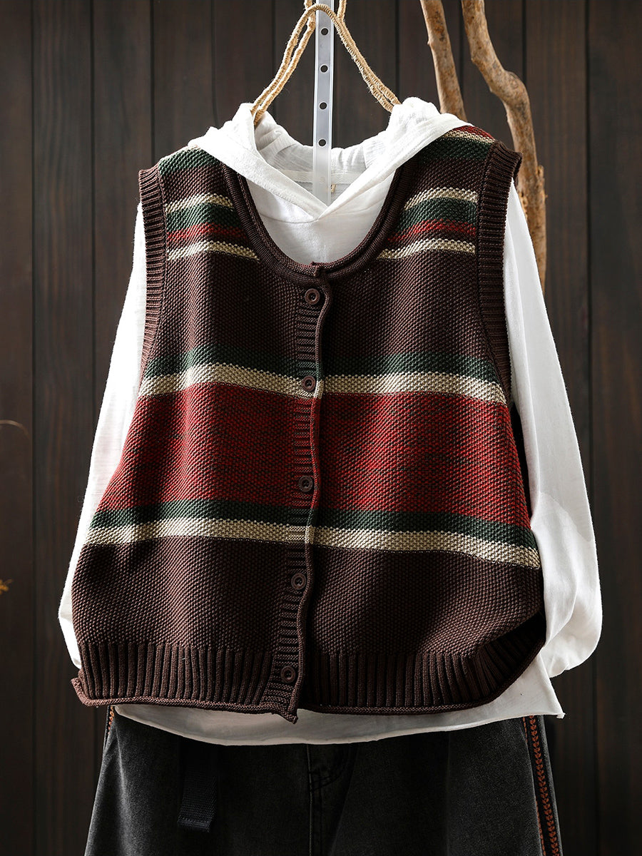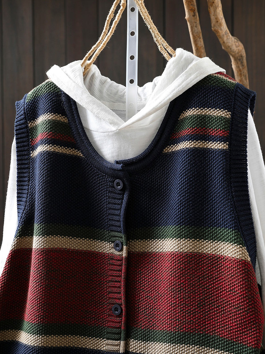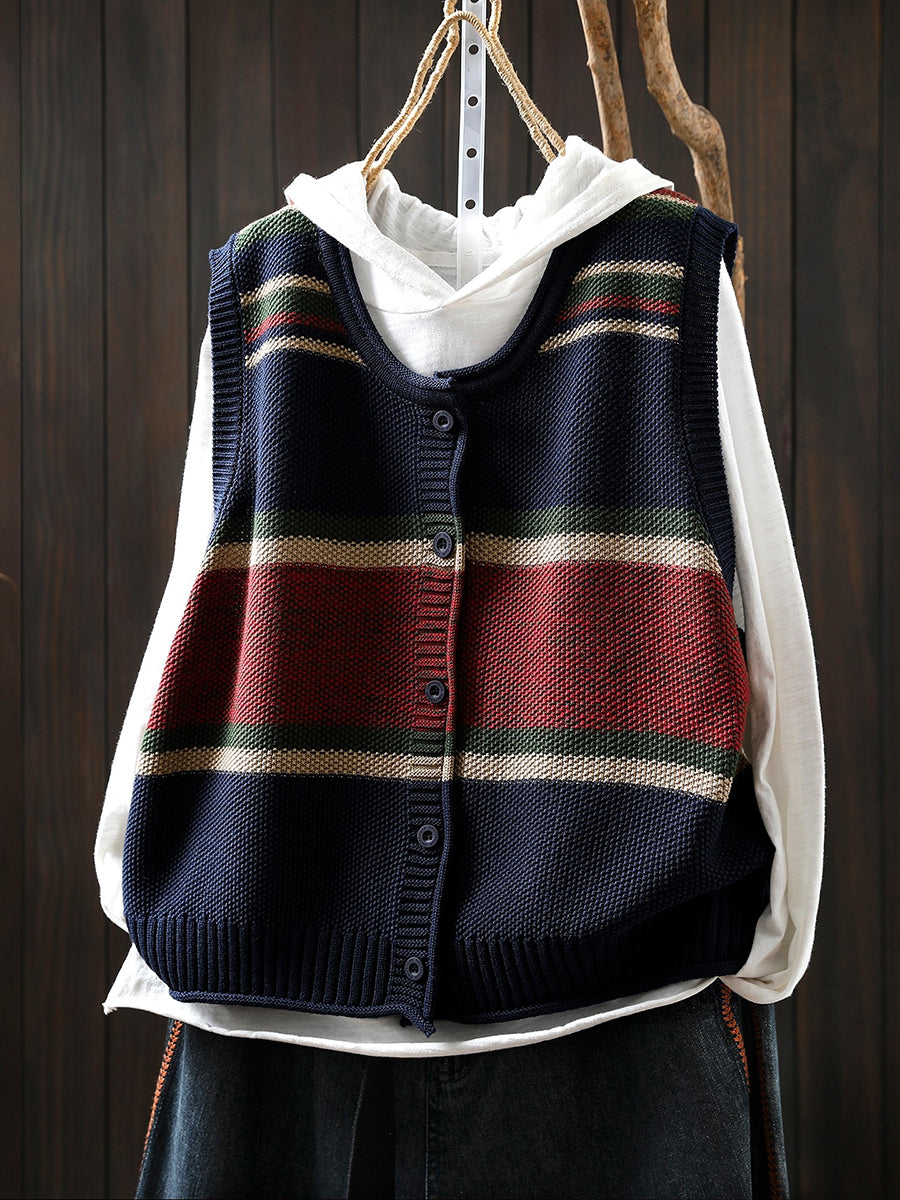 Women Spring Artsy Colorblock O-Neck Knitted Vest