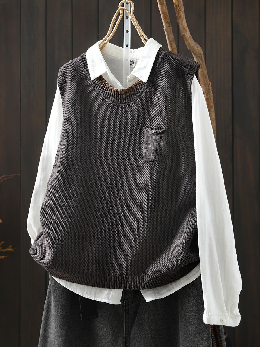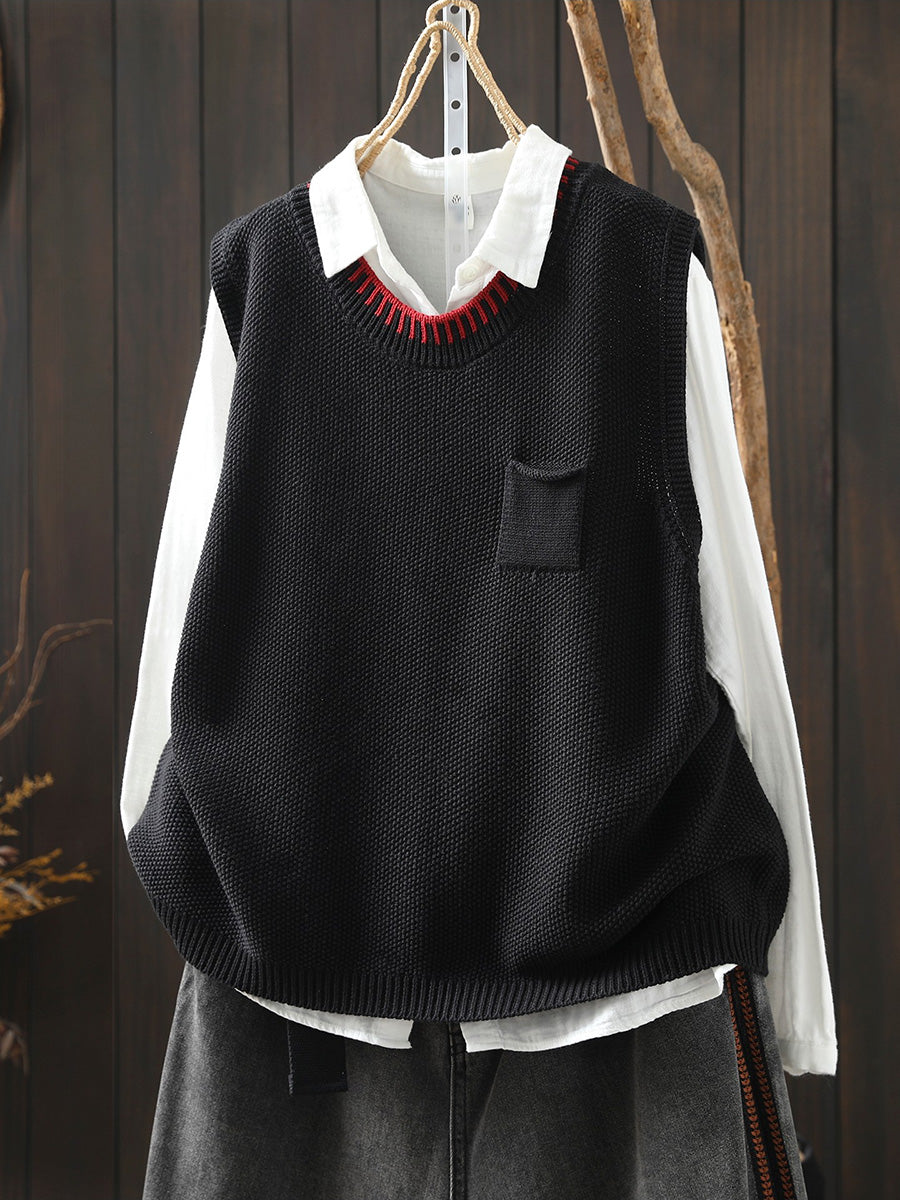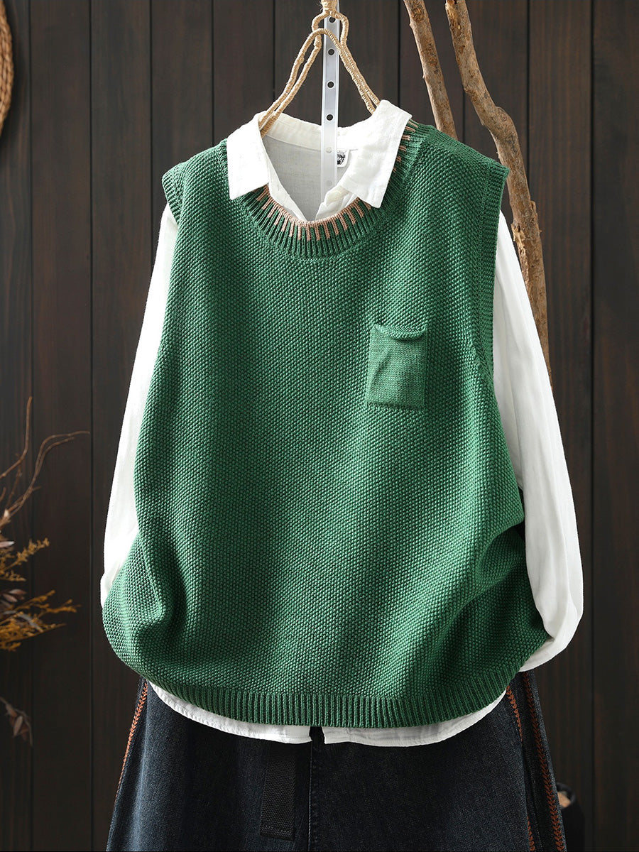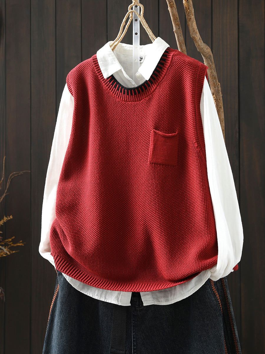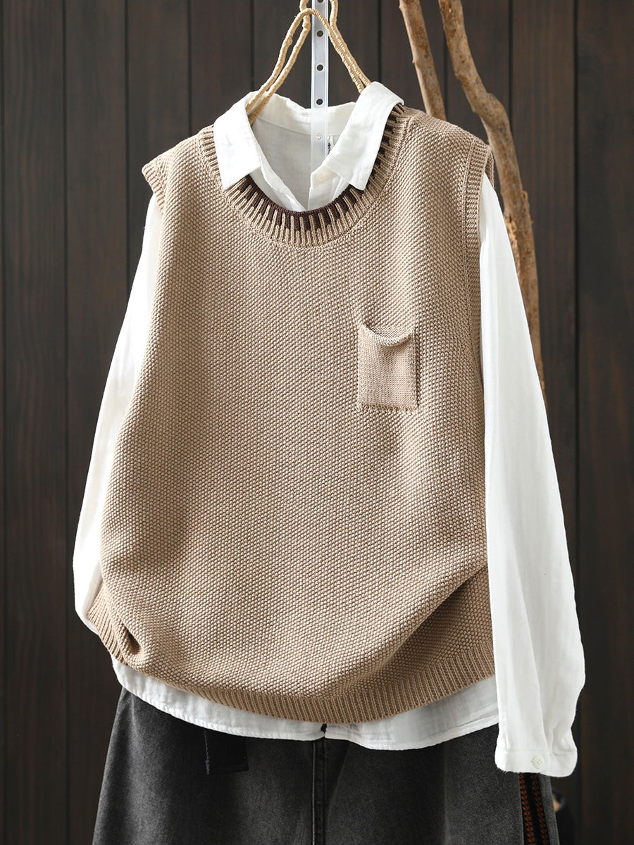 Women Spring Artsy O-Neck Colorblock Knitted Vest