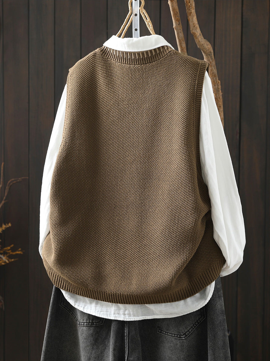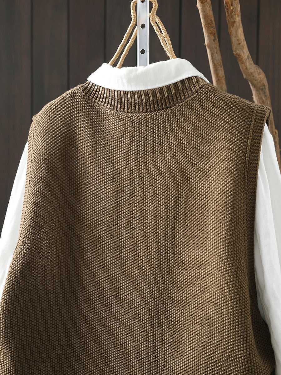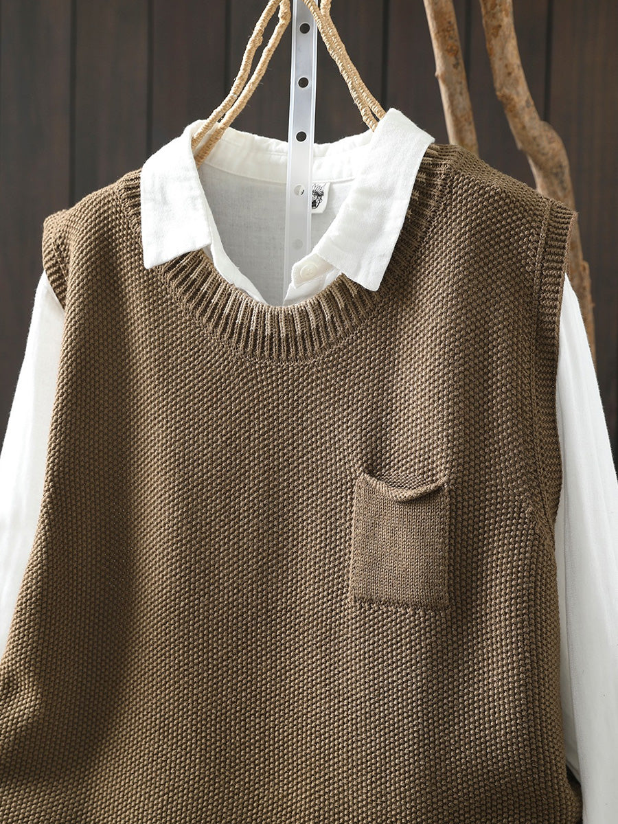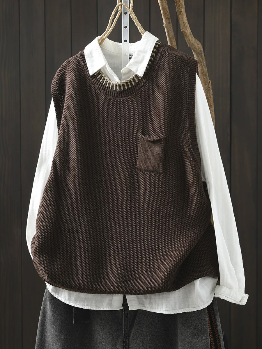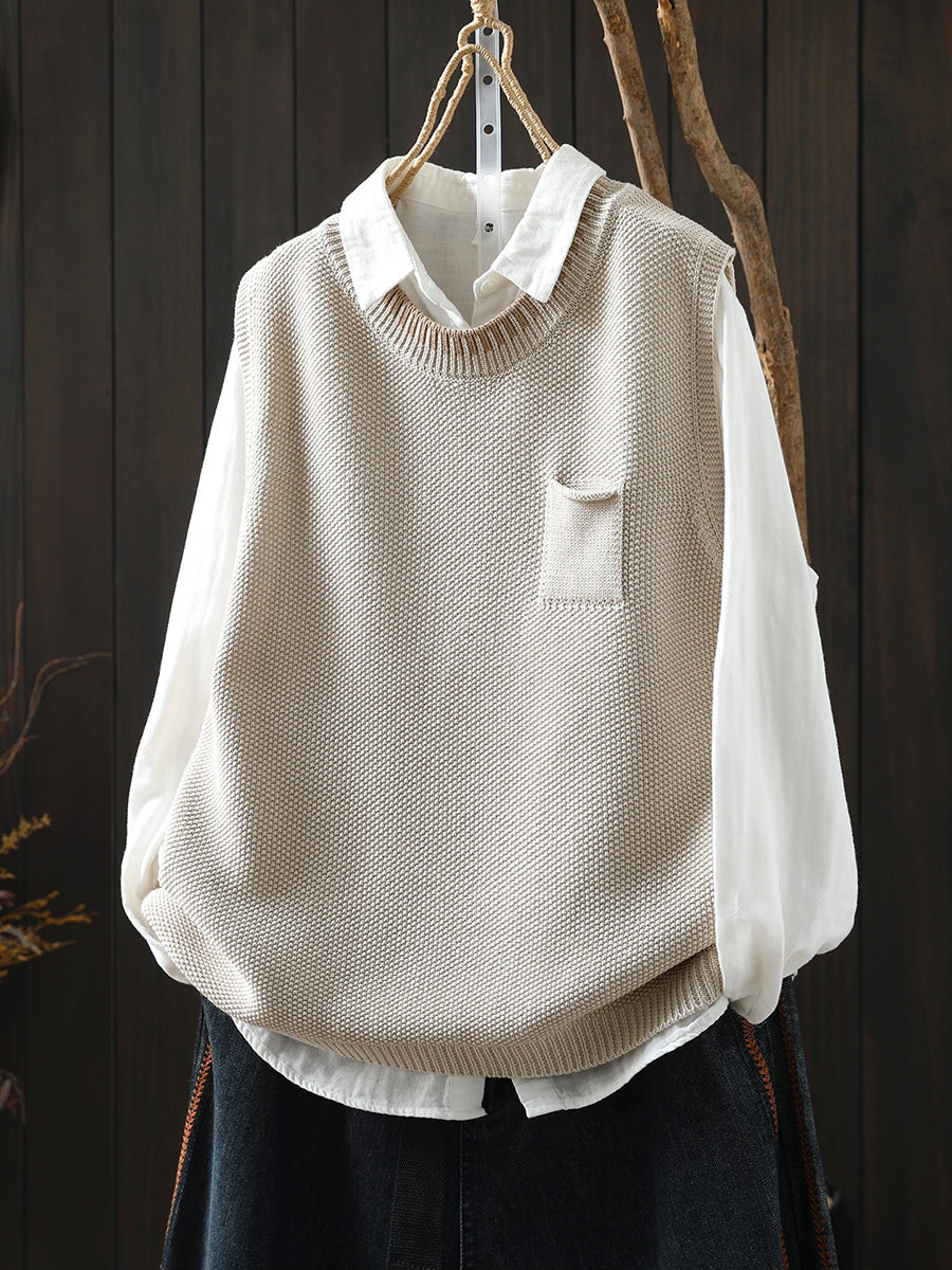 Women Spring Artsy O-Neck Colorblock Knitted Vest