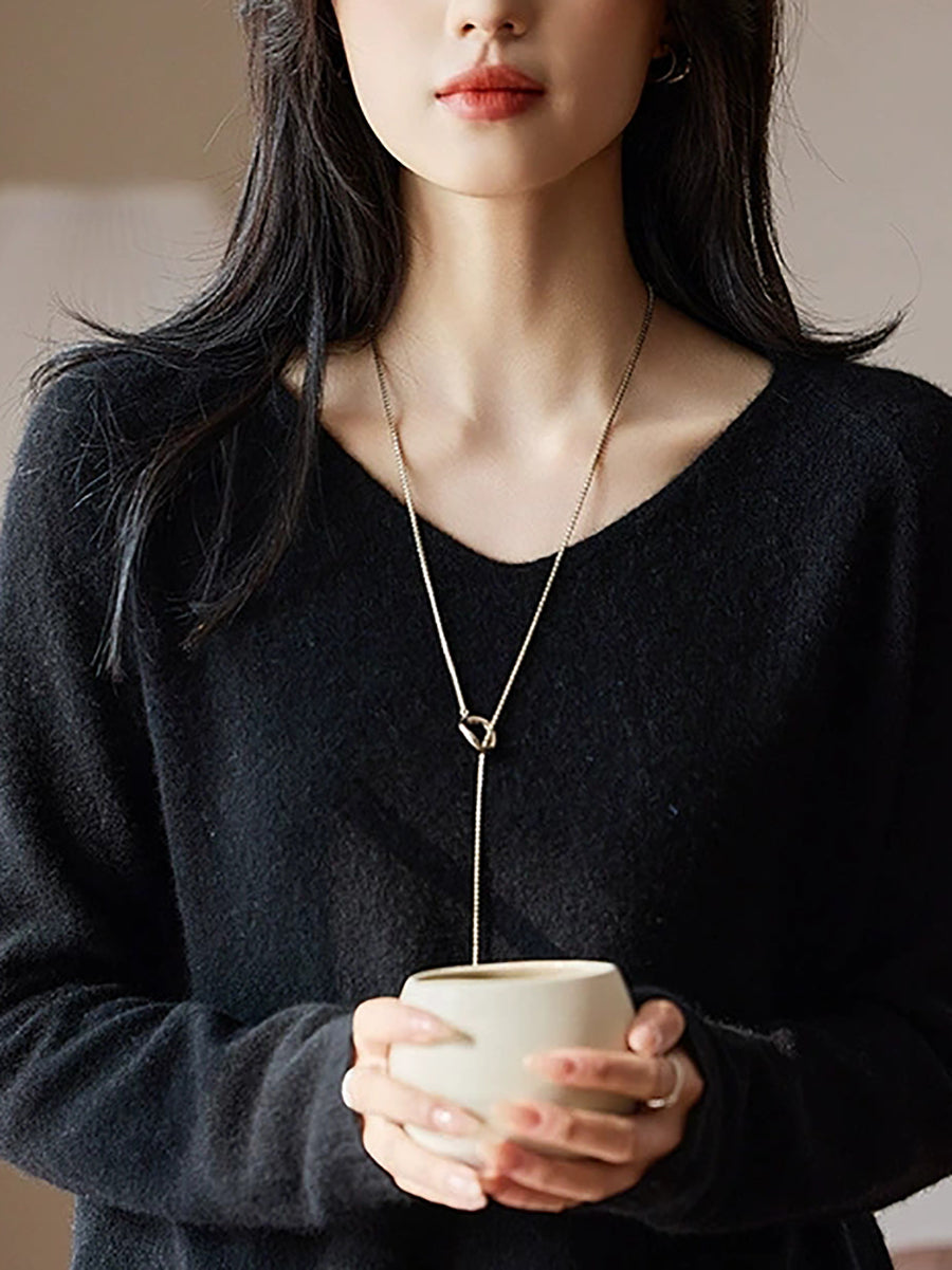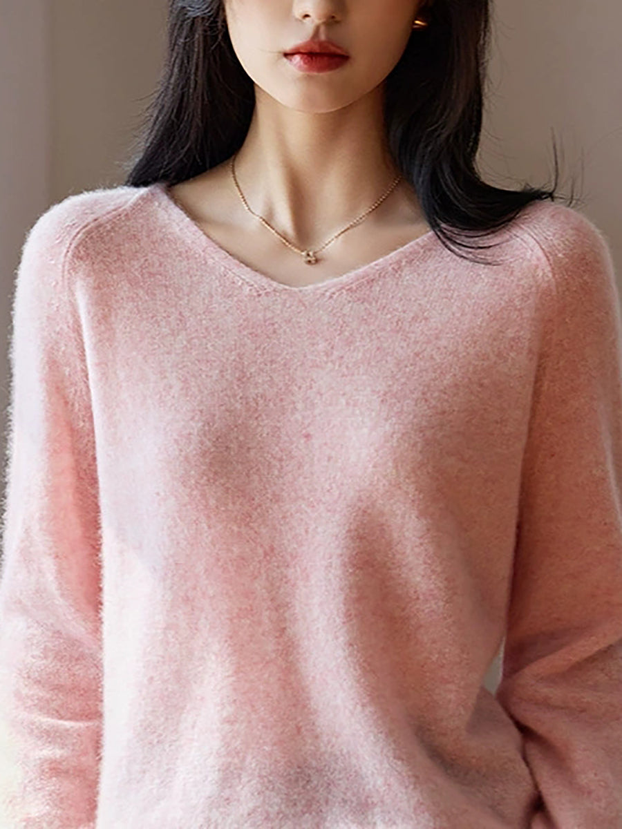 Women Spring Artsy Pure Color V-Neck Wool Sweater