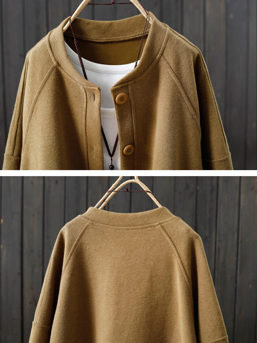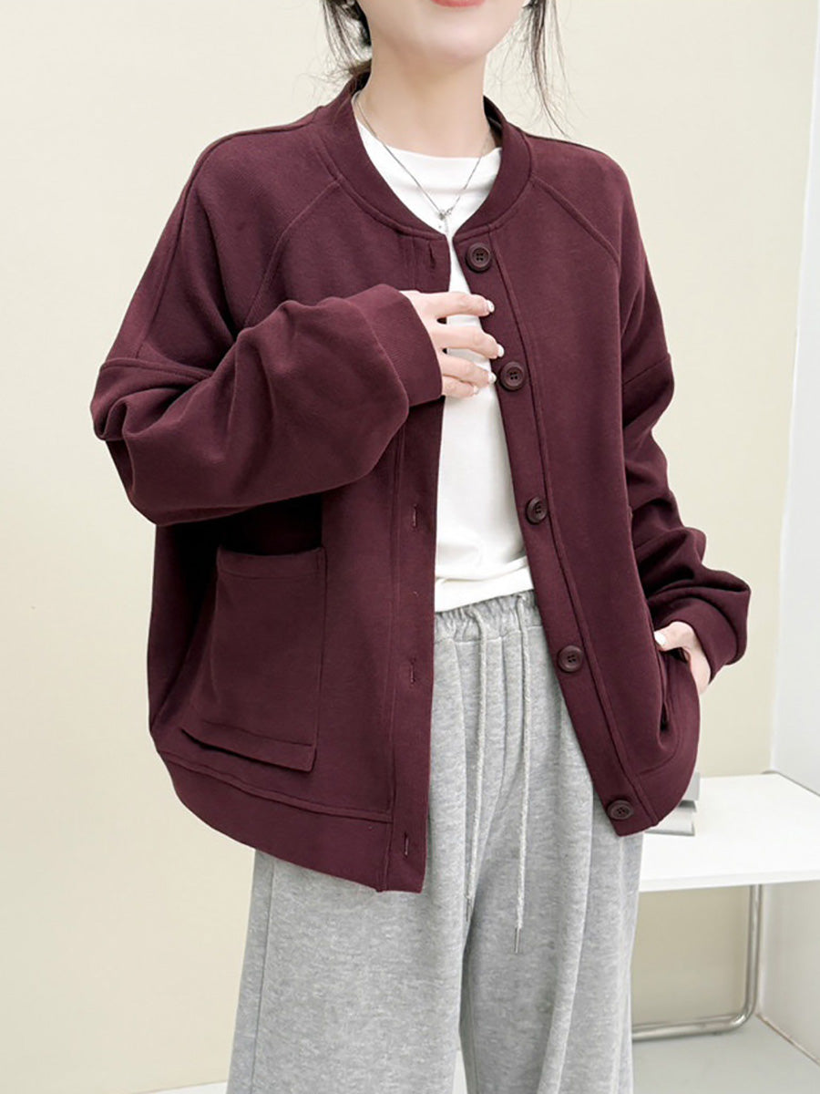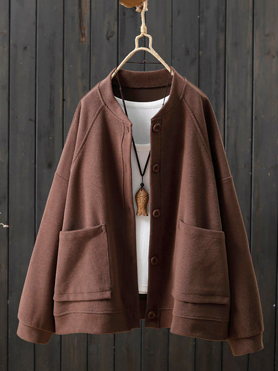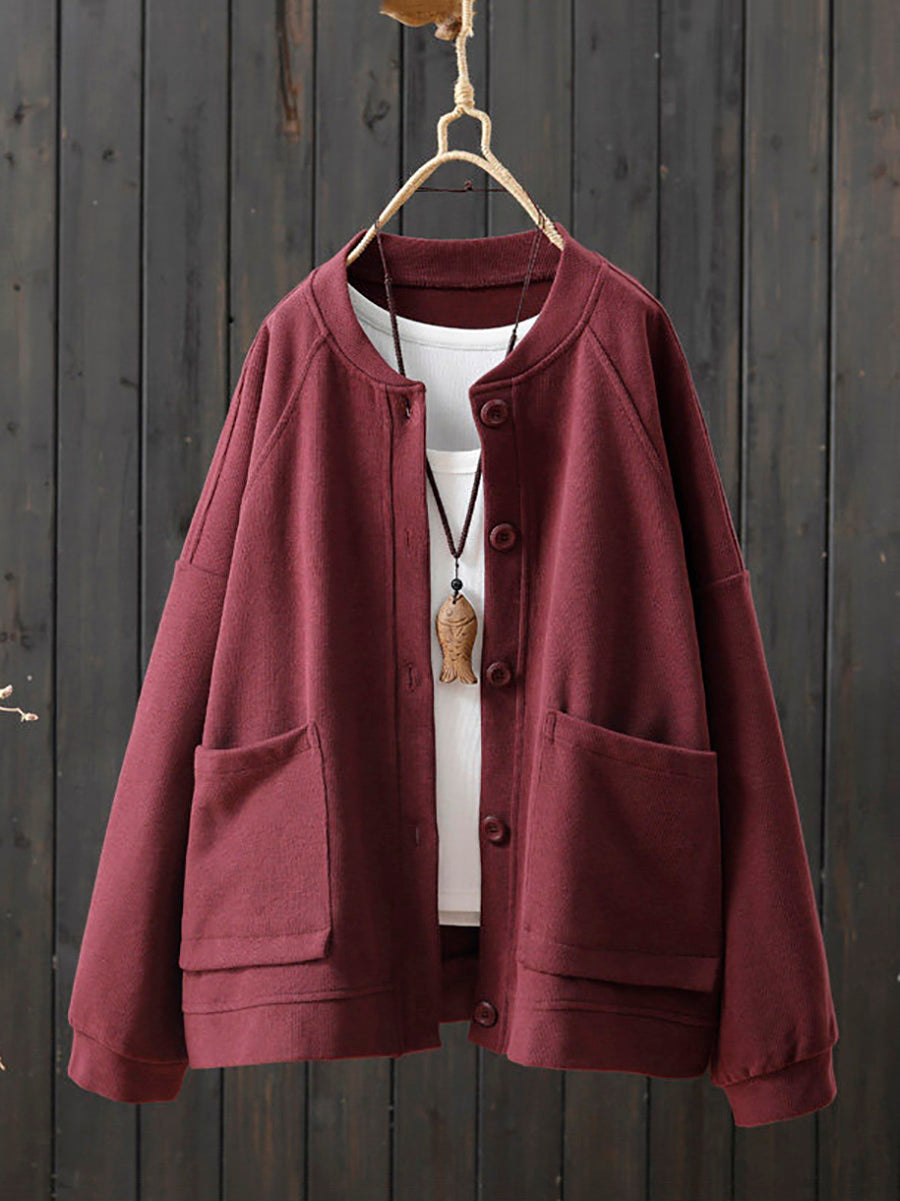 Women Spring Casual Pure Color O-Neck Cotton Coat