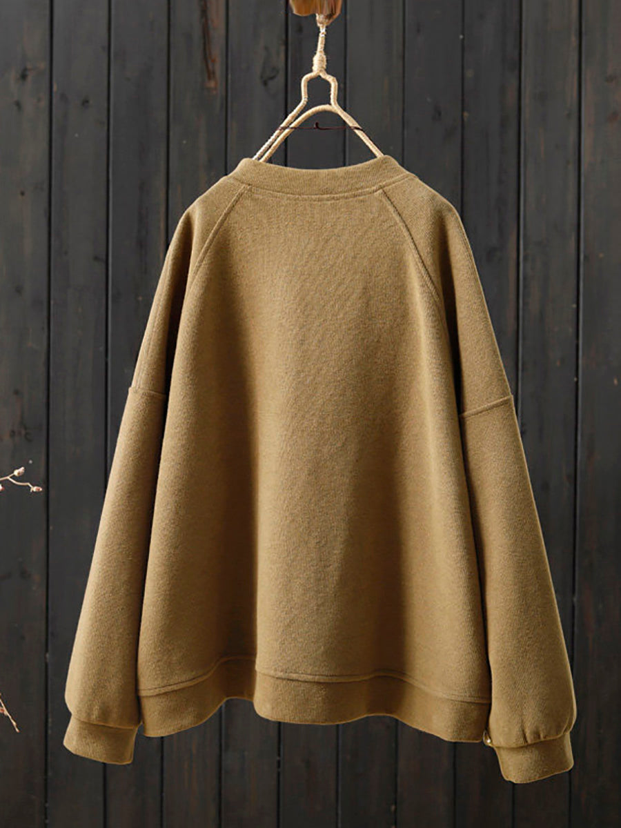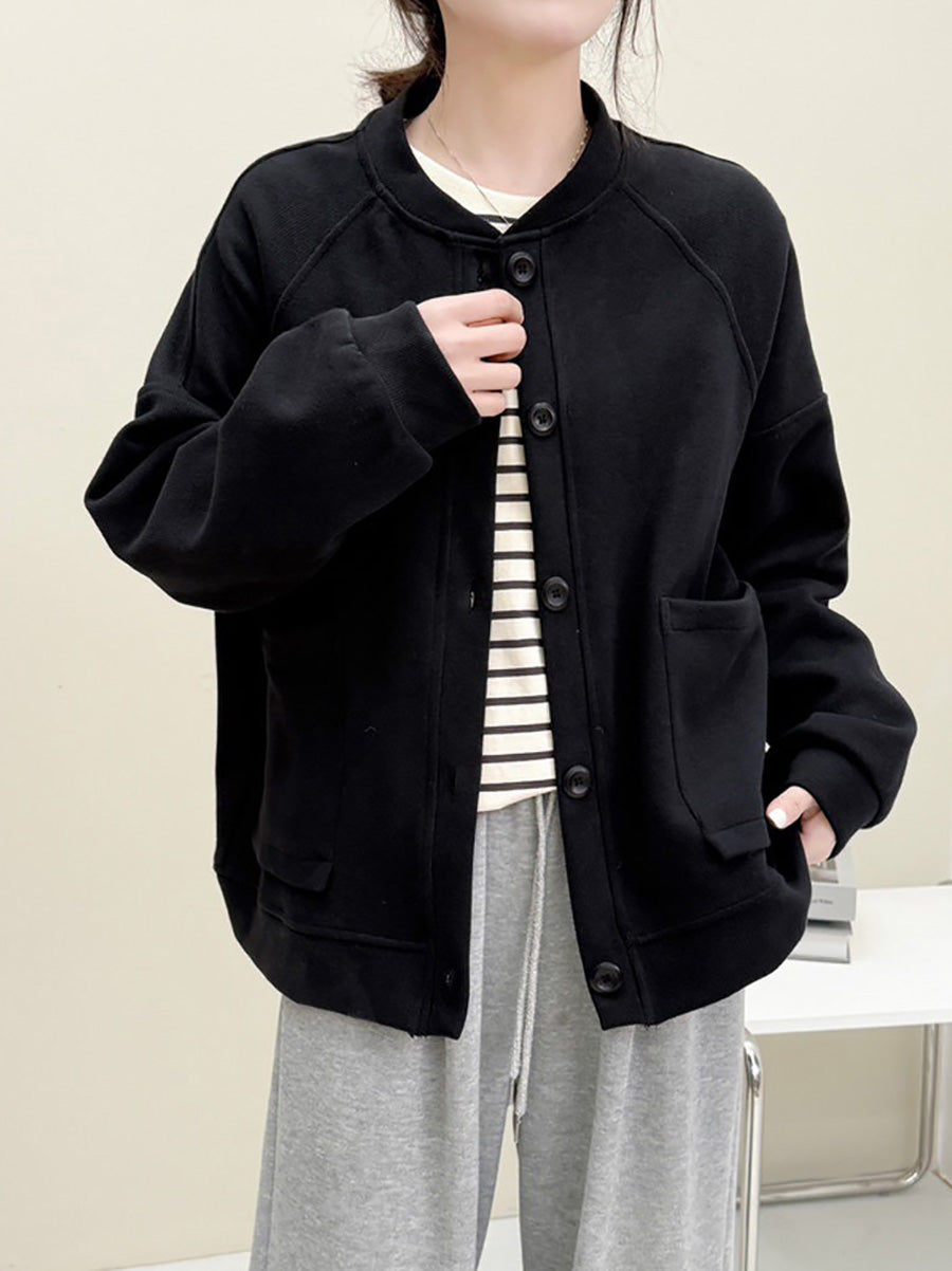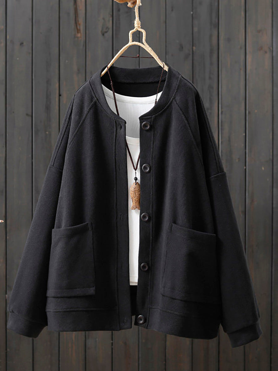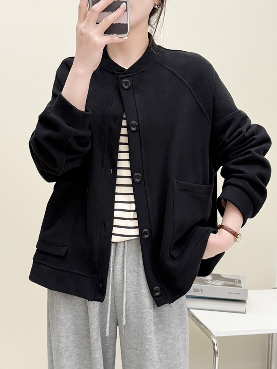 Women Spring Casual Pure Color O-Neck Cotton Coat