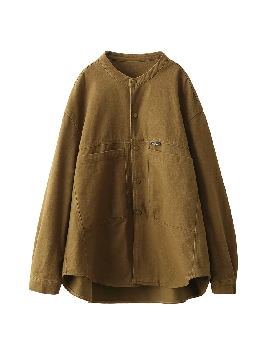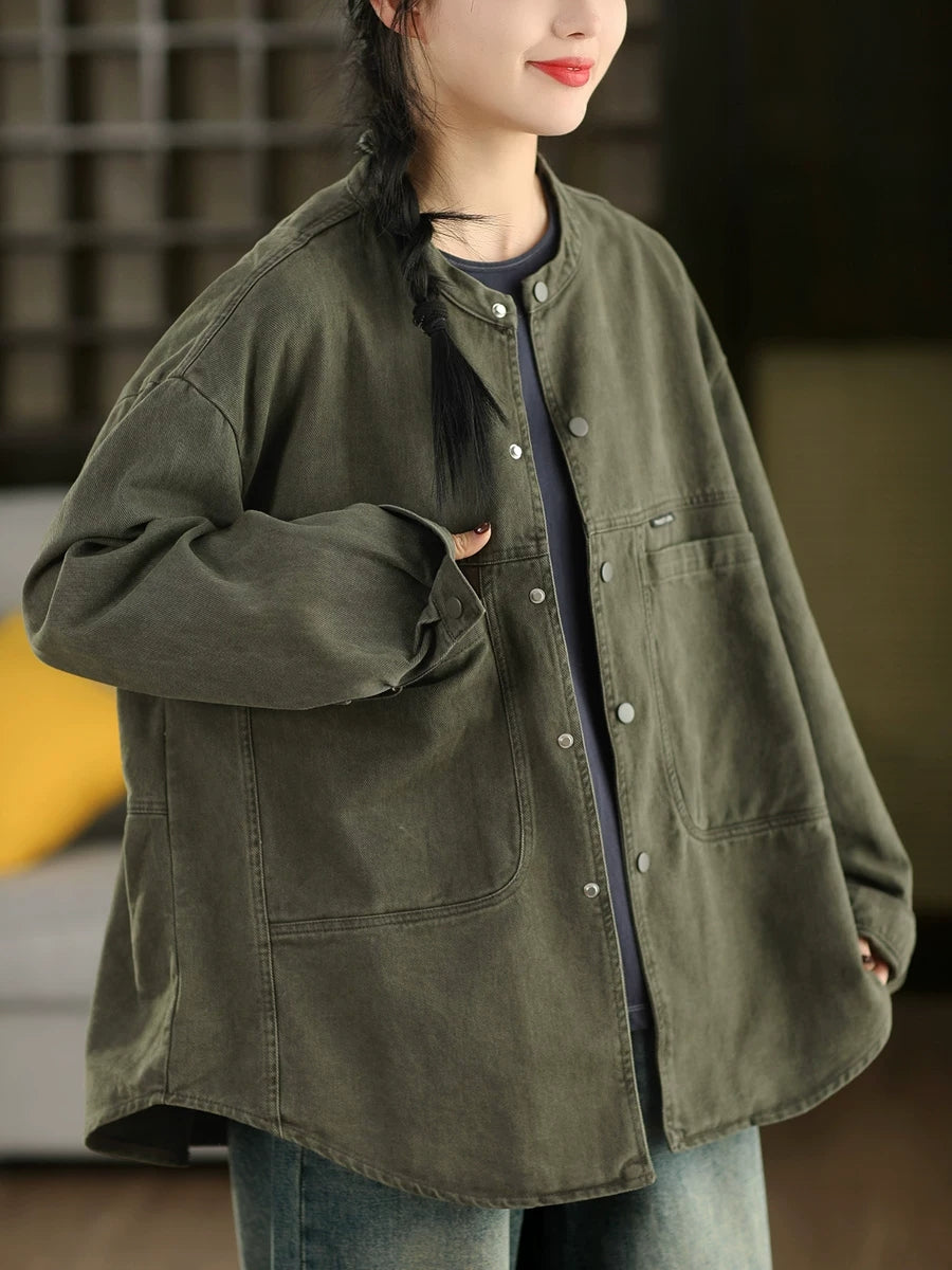 Women Spring Pure Color 100%Cotton Shirt Coat