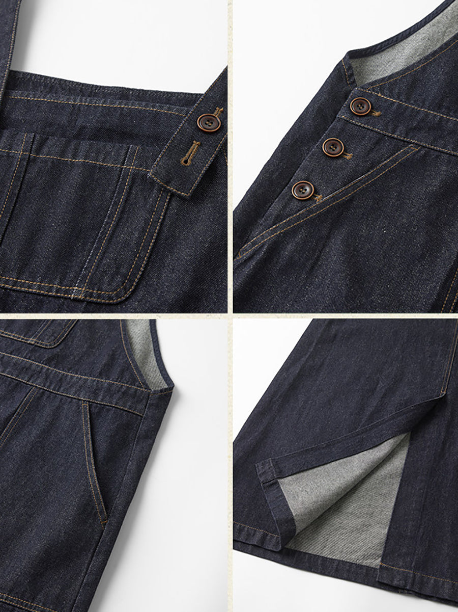 Crafted from premium 100% cotton, this ankle-length denim overall dress combines timeless retro aesthetics with versatile solid coloring. Designed for transitional seasons, it transitions seamlessly from spring through autumn, offering both comfort and enduring style. The classic overall silhouette delivers practical functionality while maintaining sophisticated simplicity.