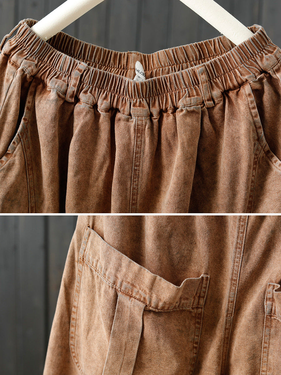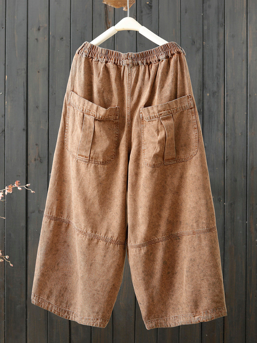 Women Spring Retro Pure Color Wide-leg Pants