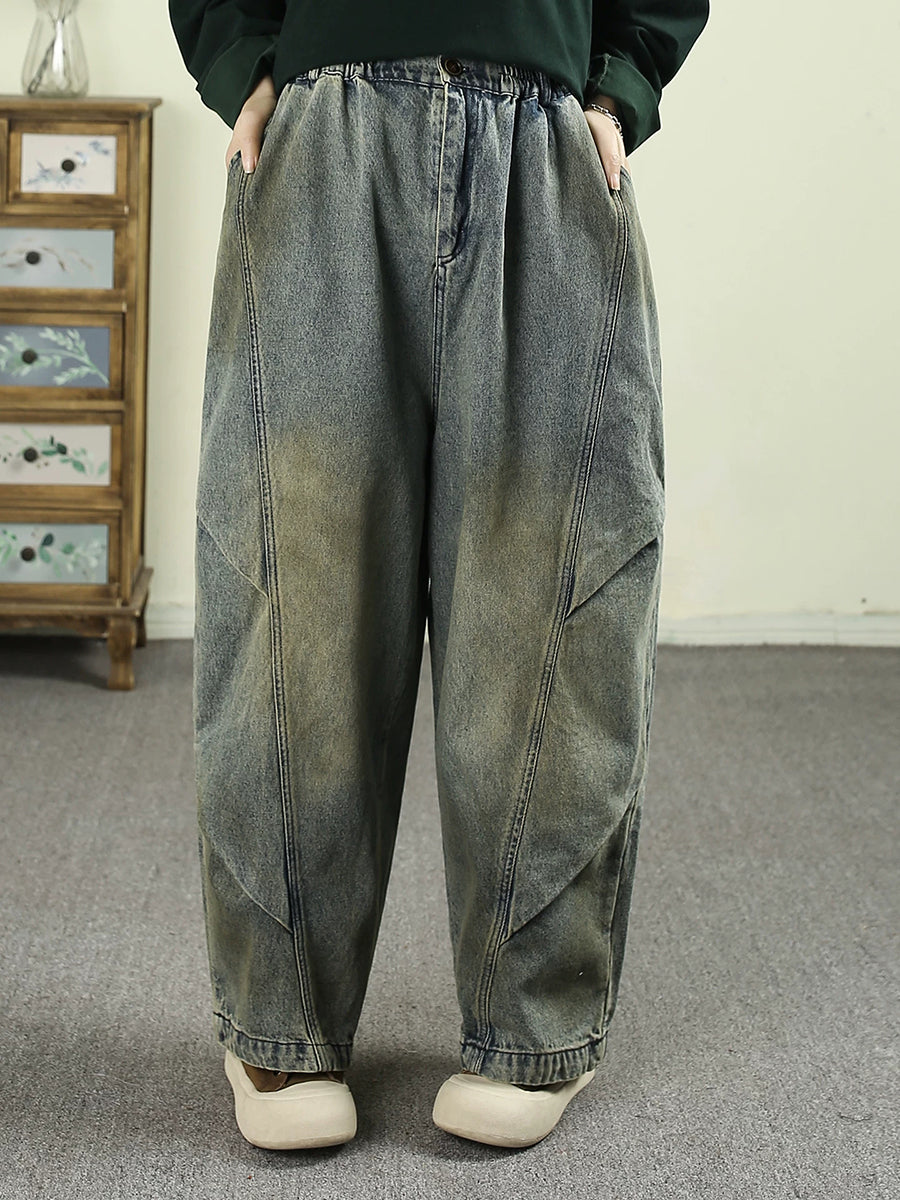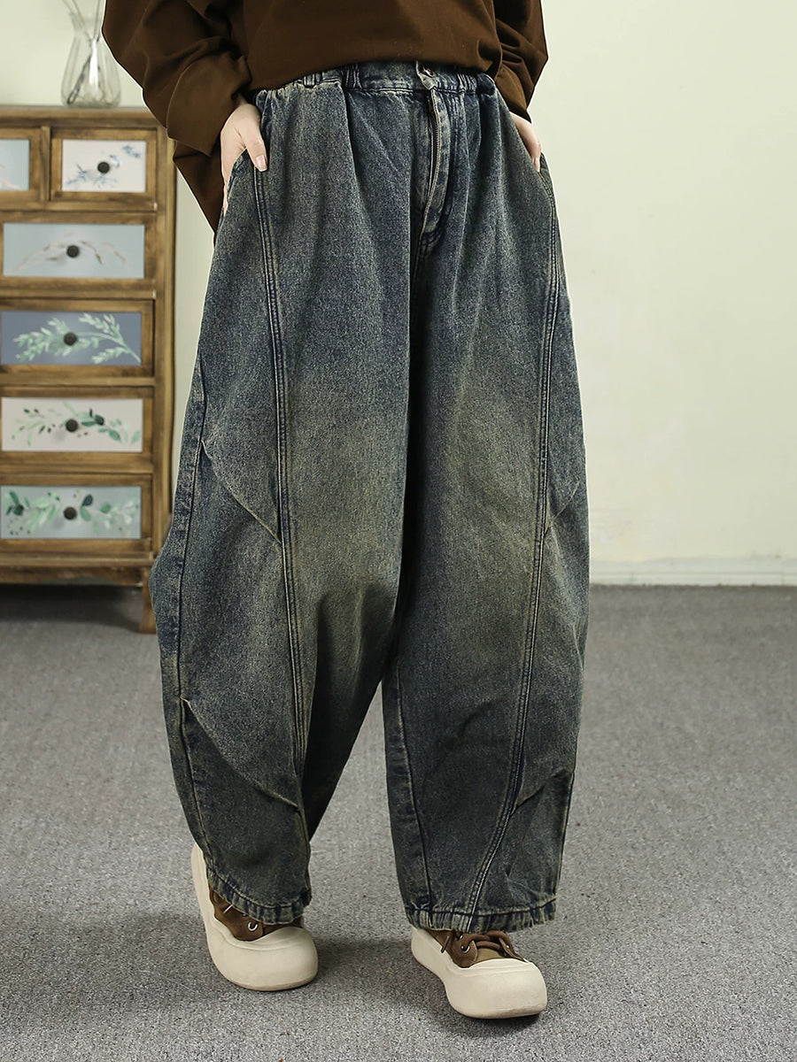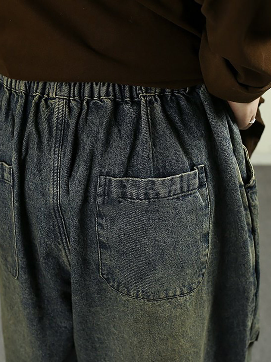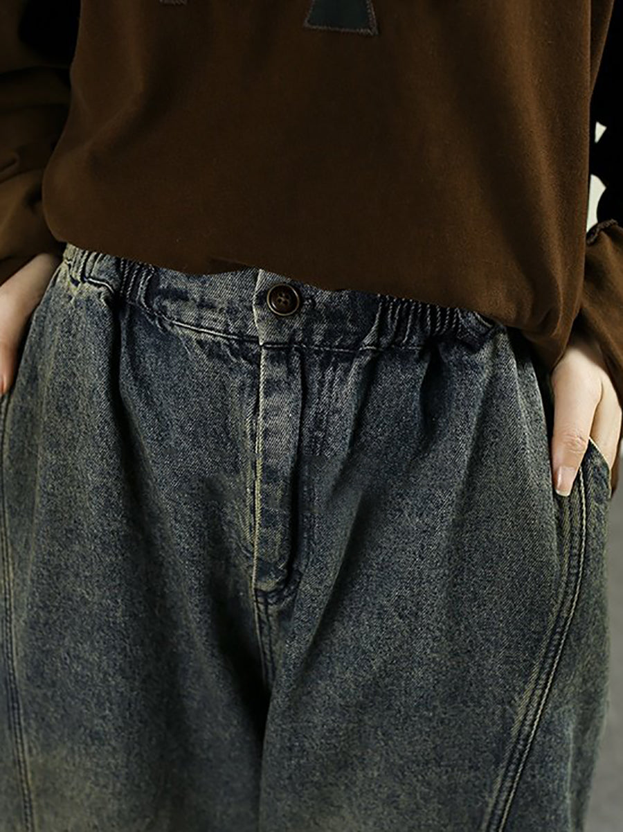 Women Spring Vintage Washed Denim Harem Pants