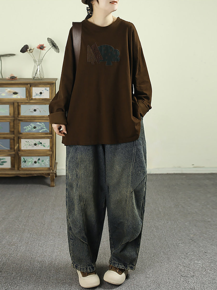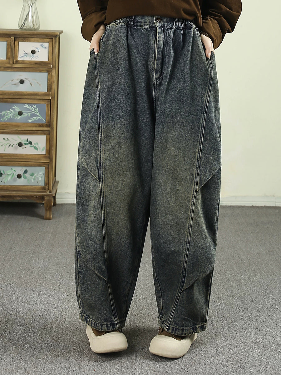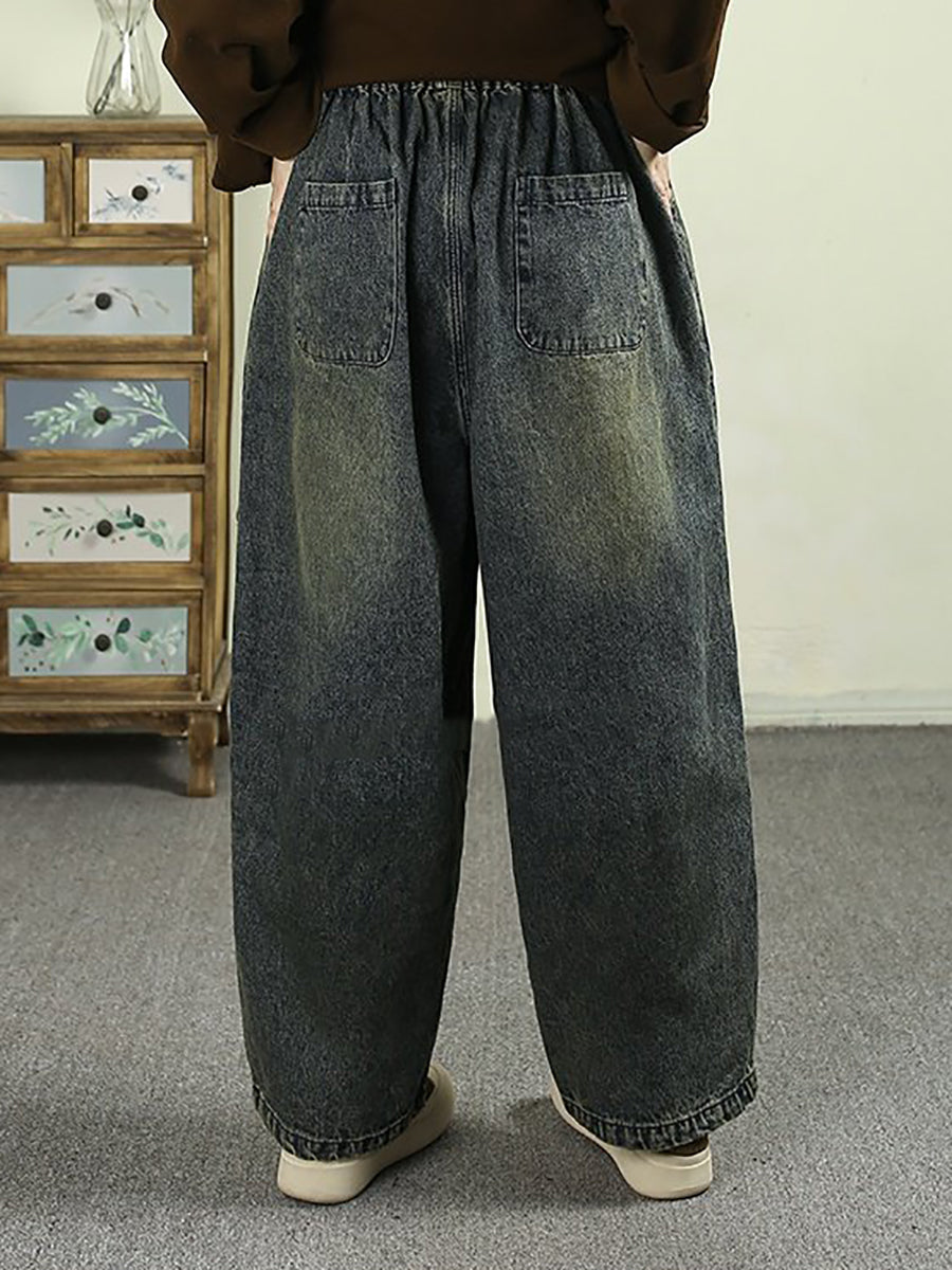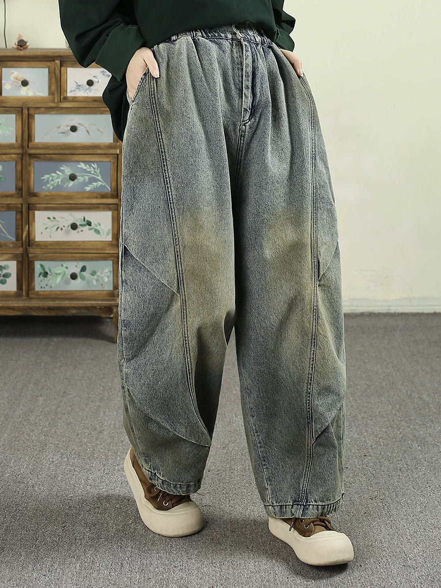 Women Spring Vintage Washed Denim Harem Pants