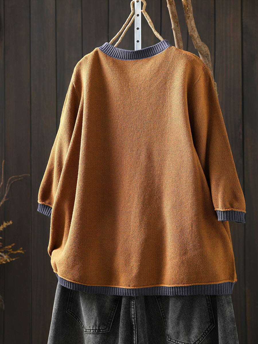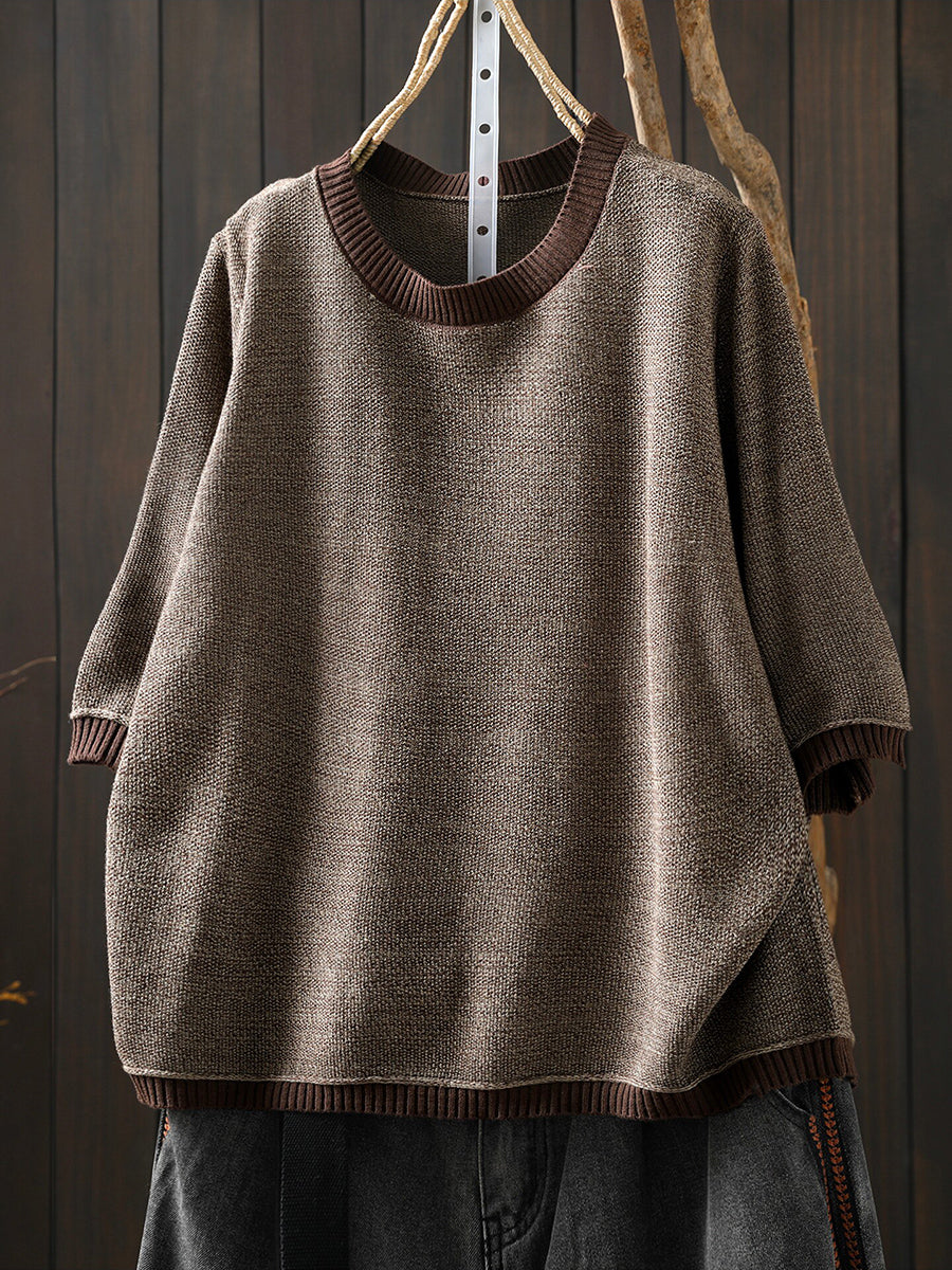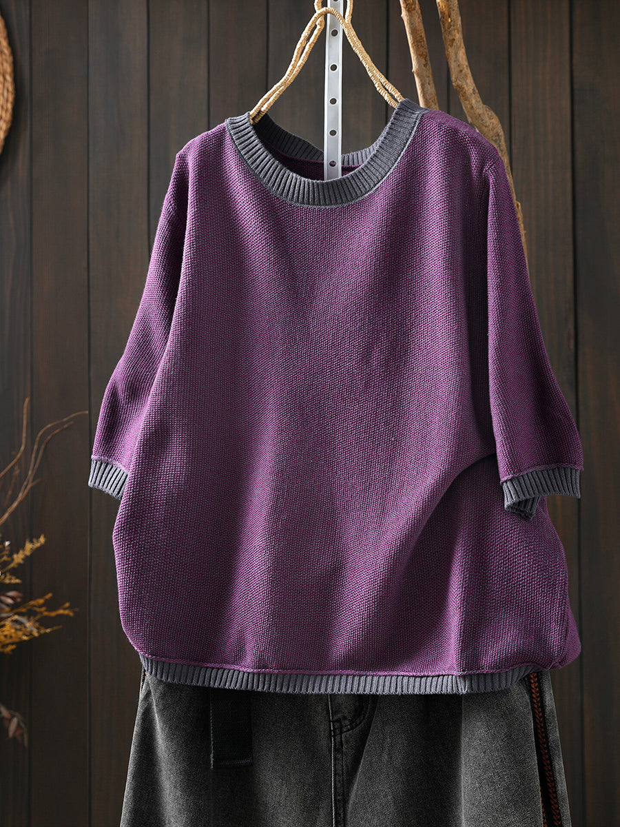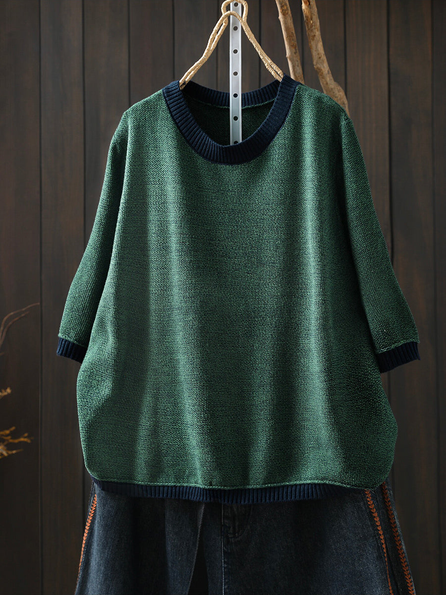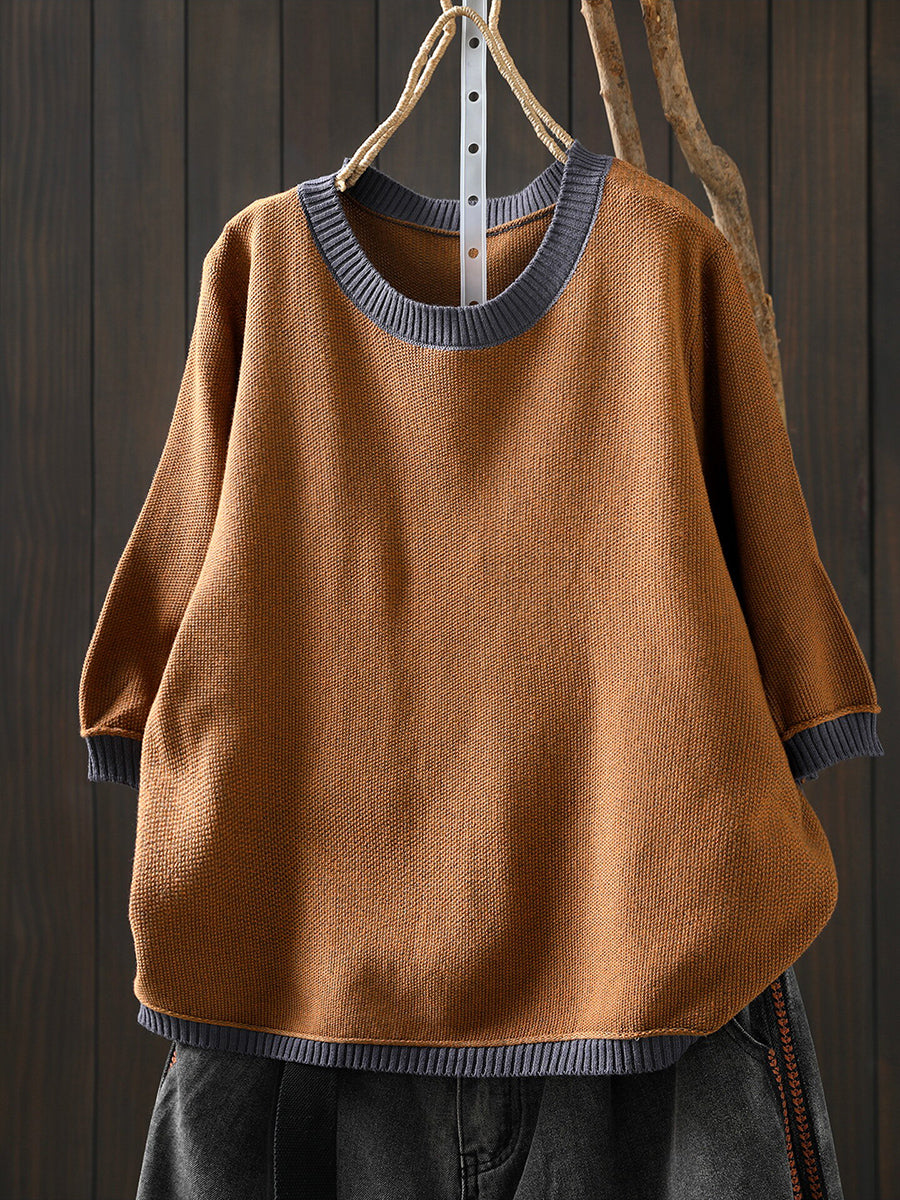 Women Summer Artsy Colorblock Cotton Plaid O-Neck Shirt