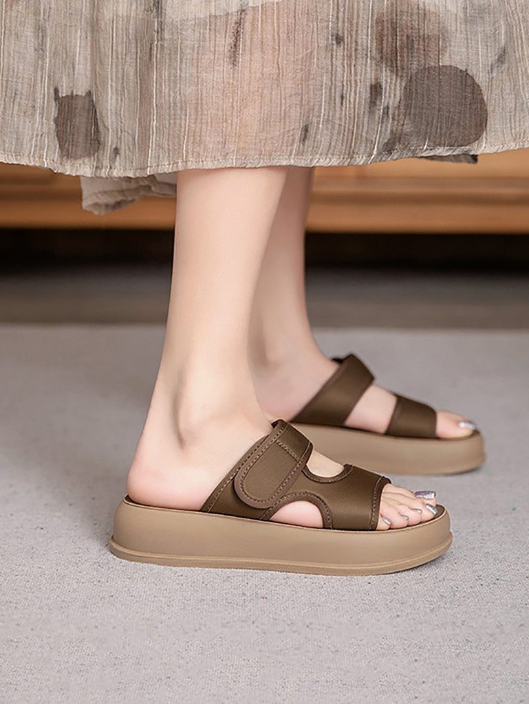 Women Summer Casual Genuine Leather Platform Slippers