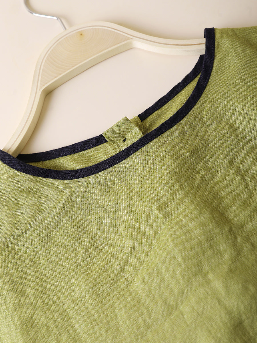 Women Summer Casual Pure Color O-Neck 100%Linen Dress