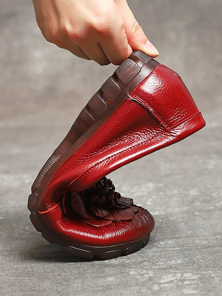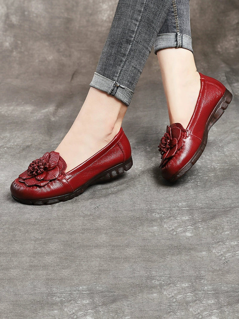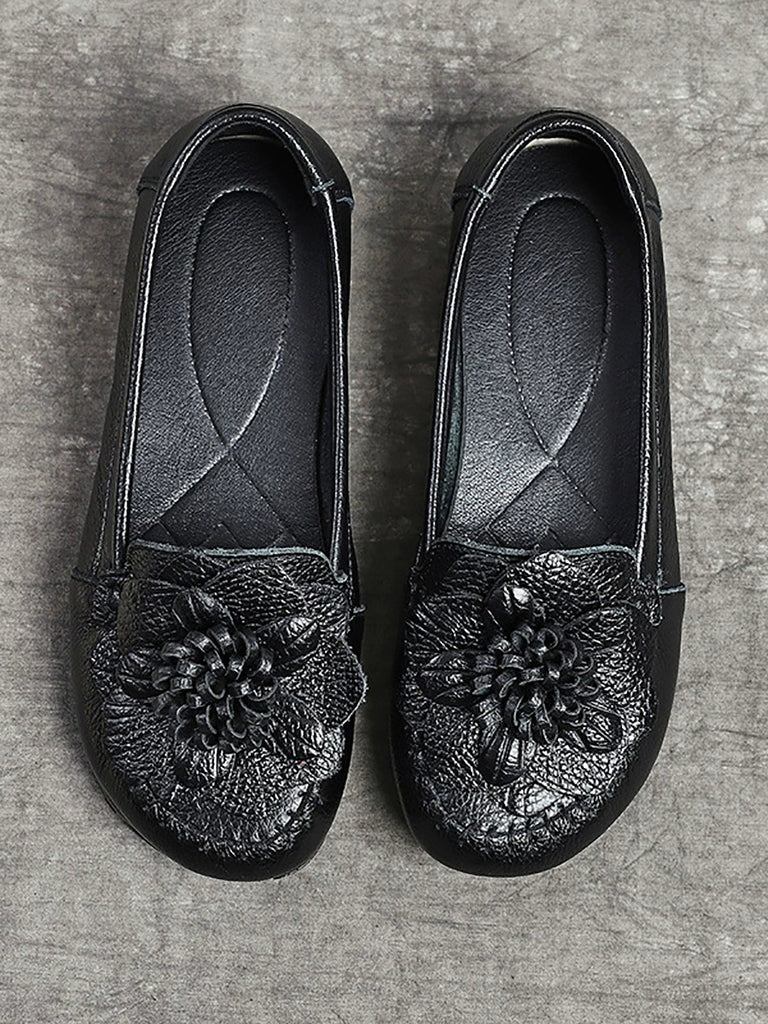 Women Summer Genuine Leather Flower Low Heel Shoes