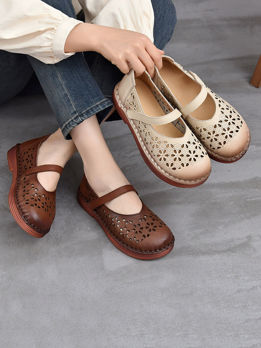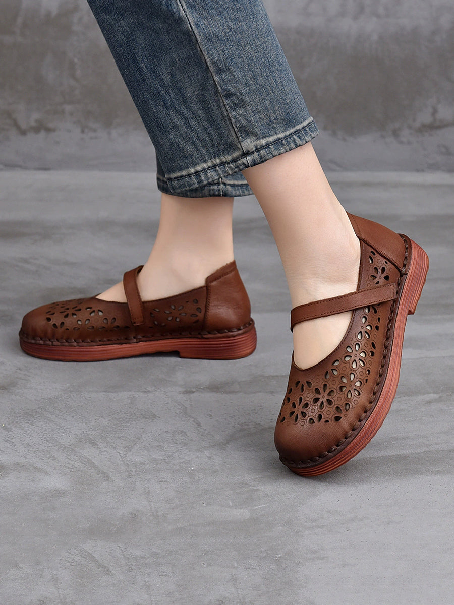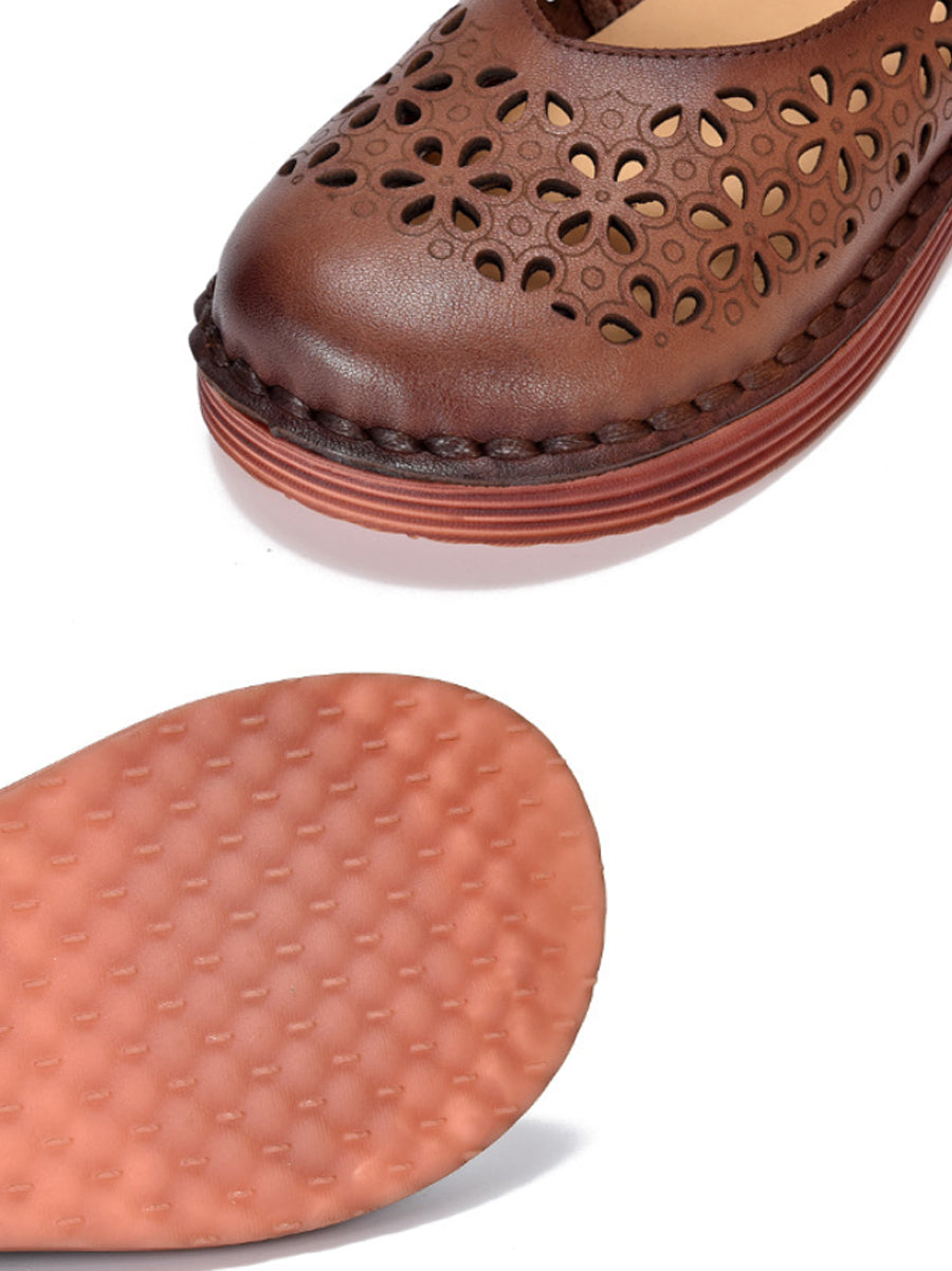 Women Summer Genuine Leather Hollow Out Shoes