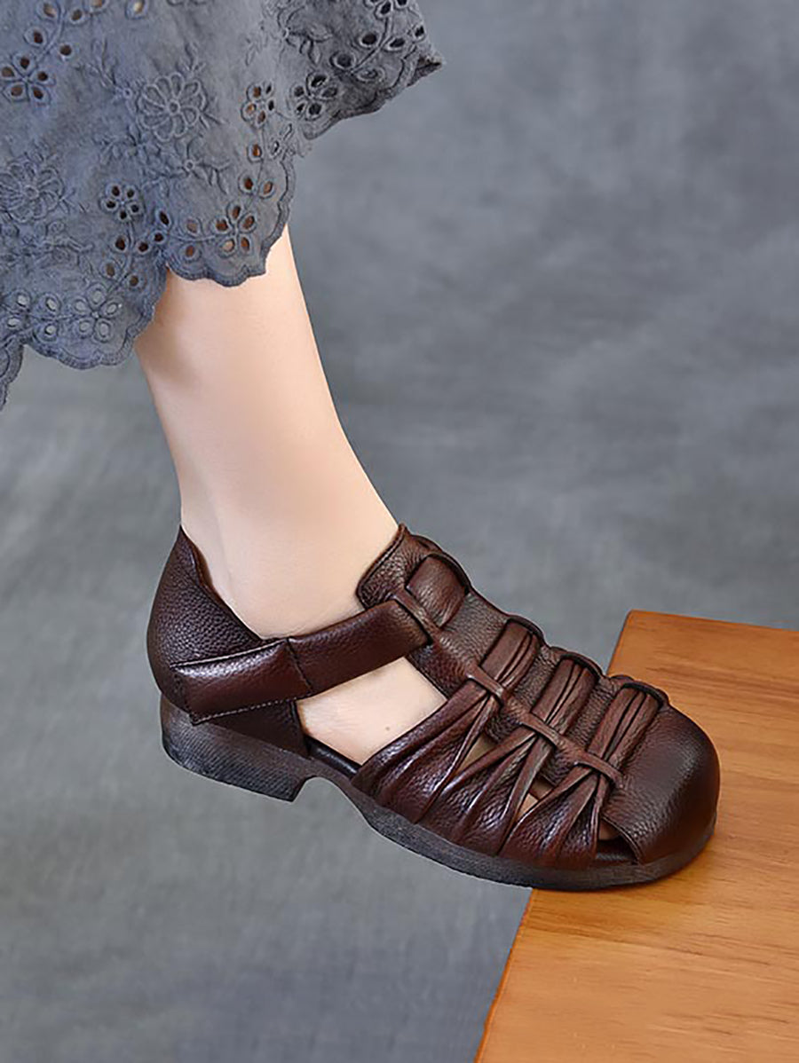 Women Summer Genuine Leather Low Heel Sandals