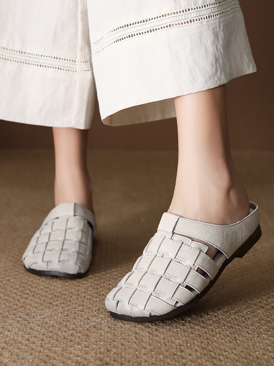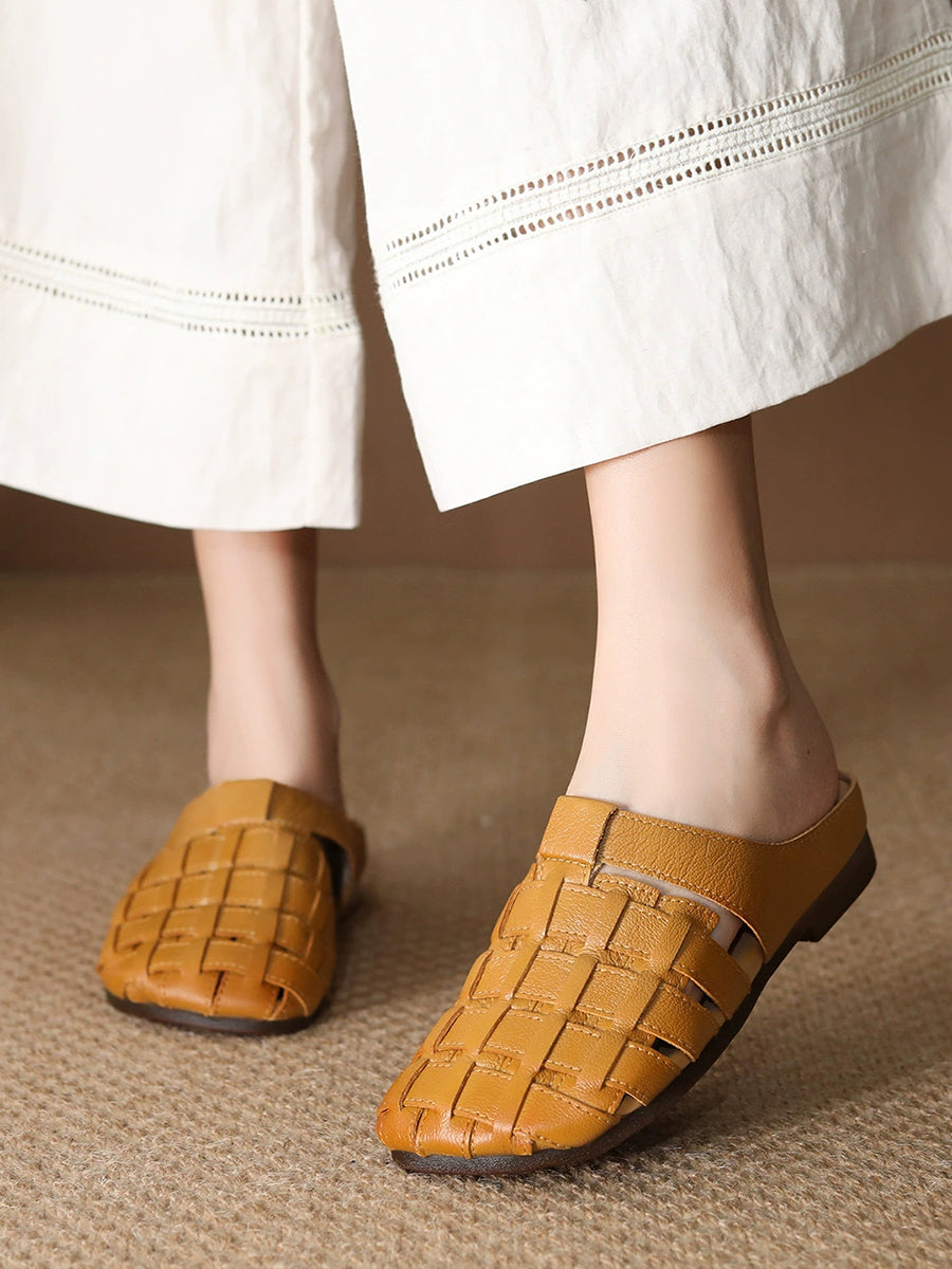 Women Summer Genuine Leather Weave Slippers