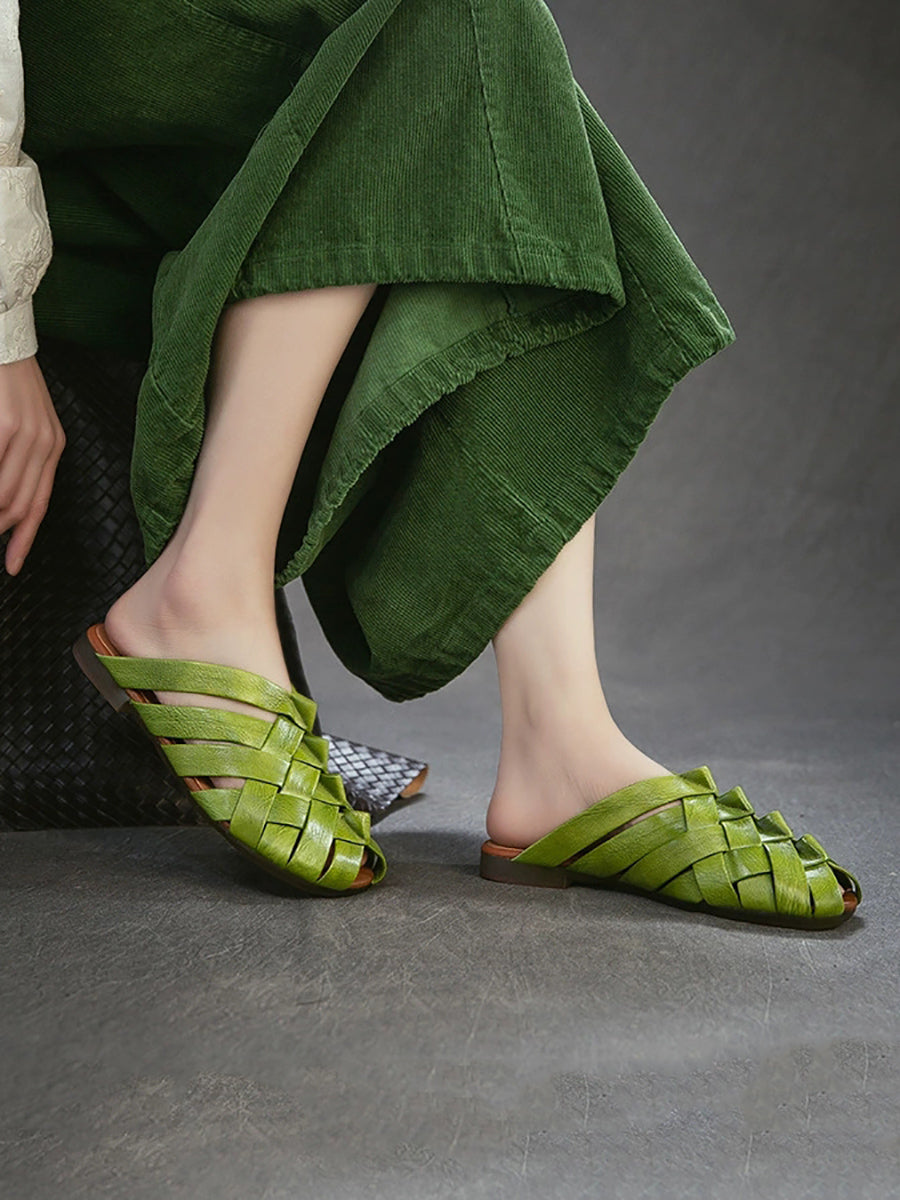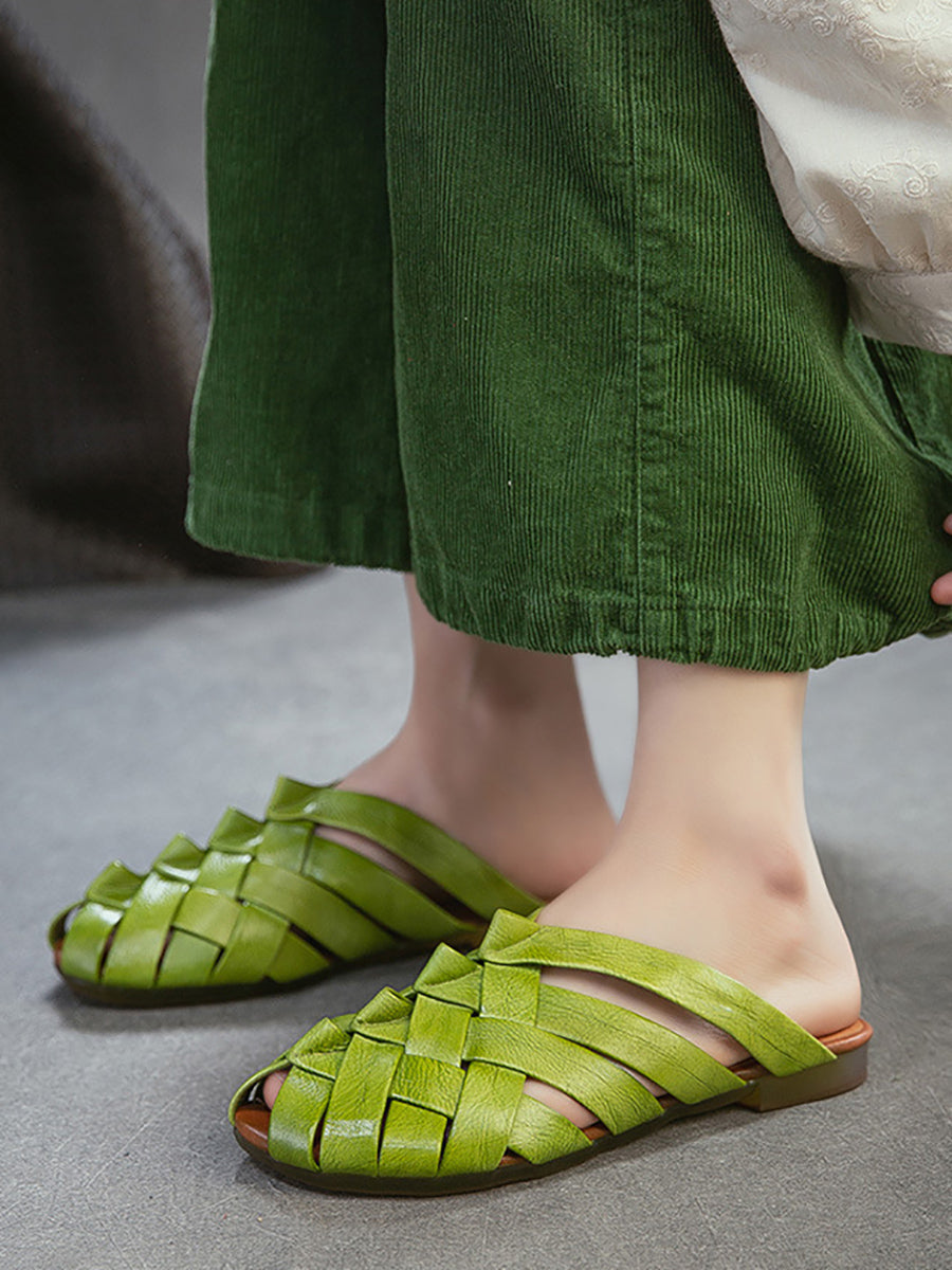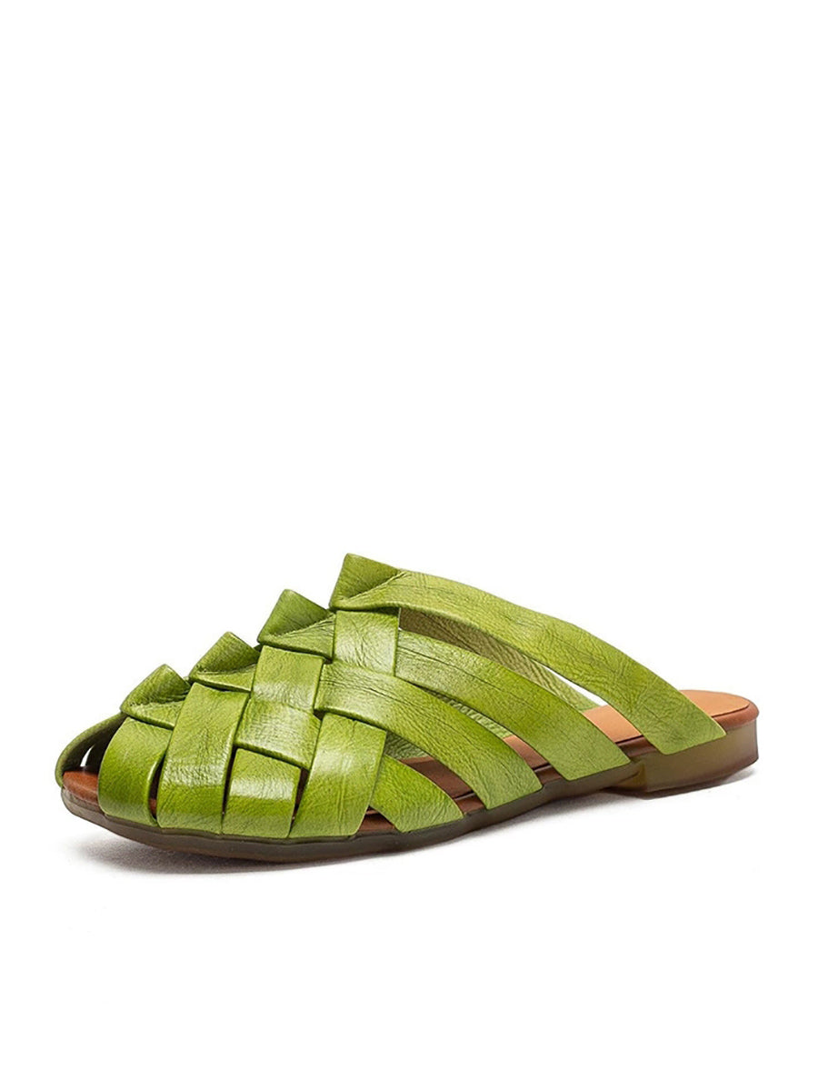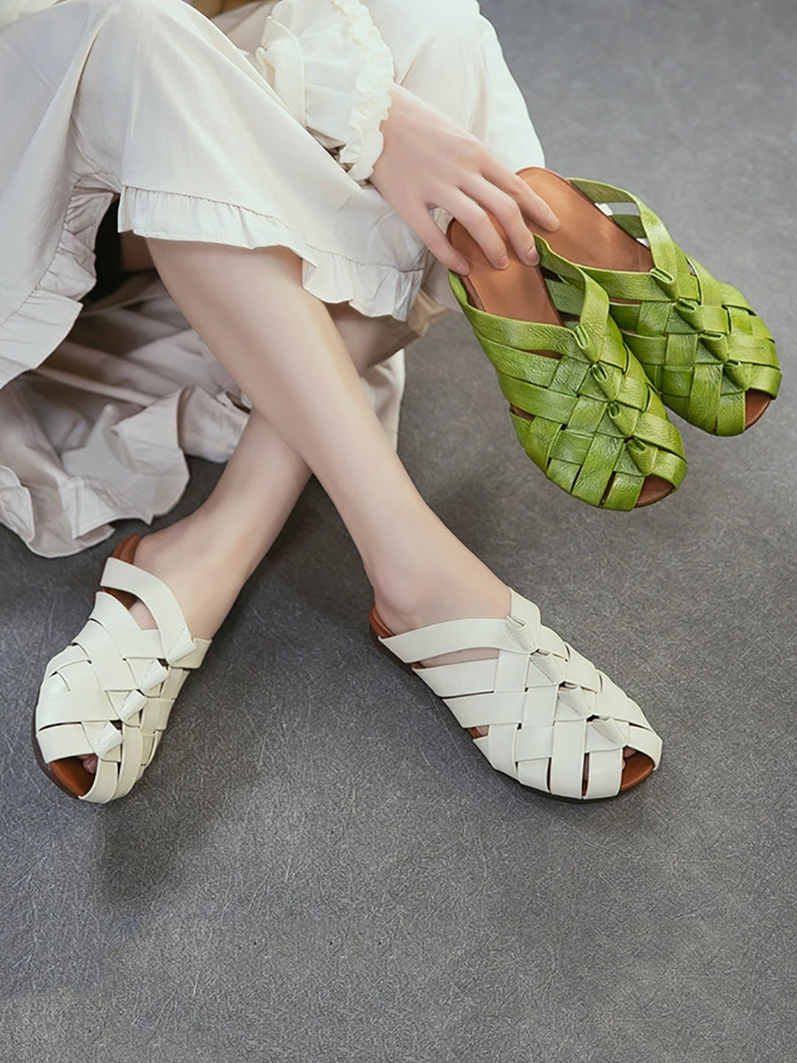 Women Summer Leather Weave Slippers