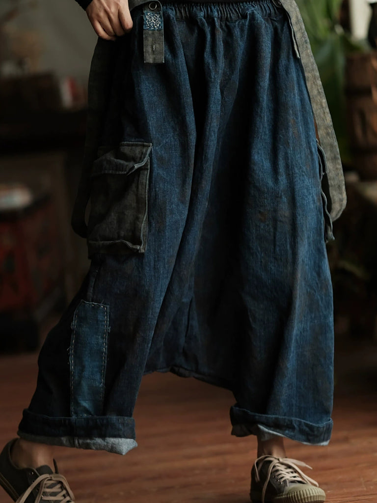 Women Summer Retro Cotton Low Crotch Pants Jumpsuits