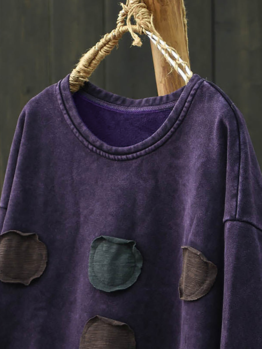 Plus Size Women Summer Retro Dot Patch 100%Cotton T-Shirt