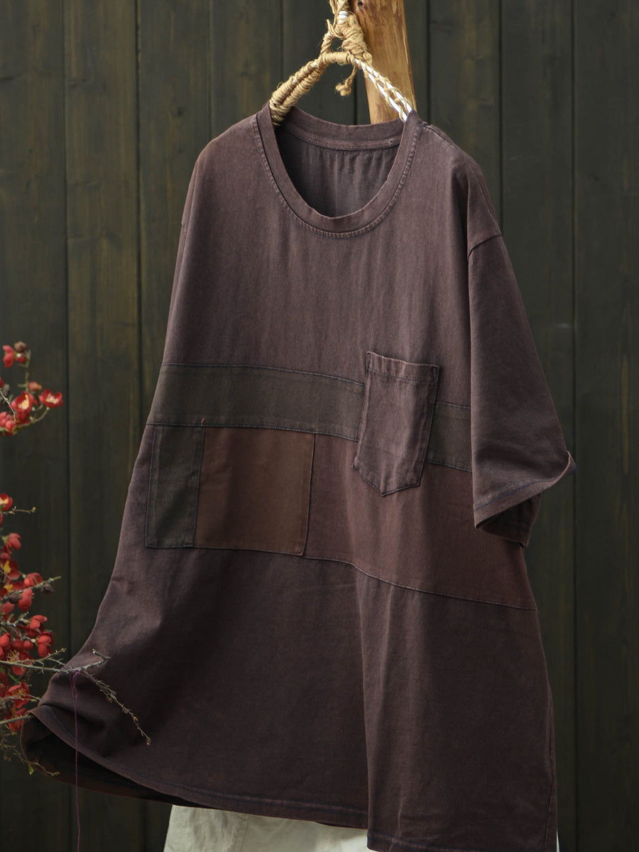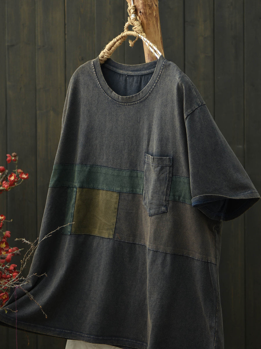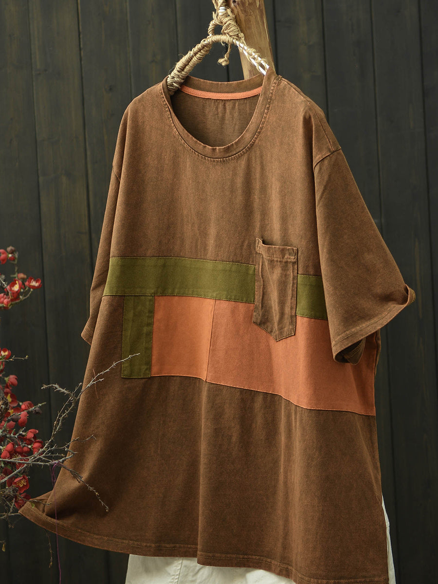 Women Summer Retro Patchwork Cotton T-Shirt