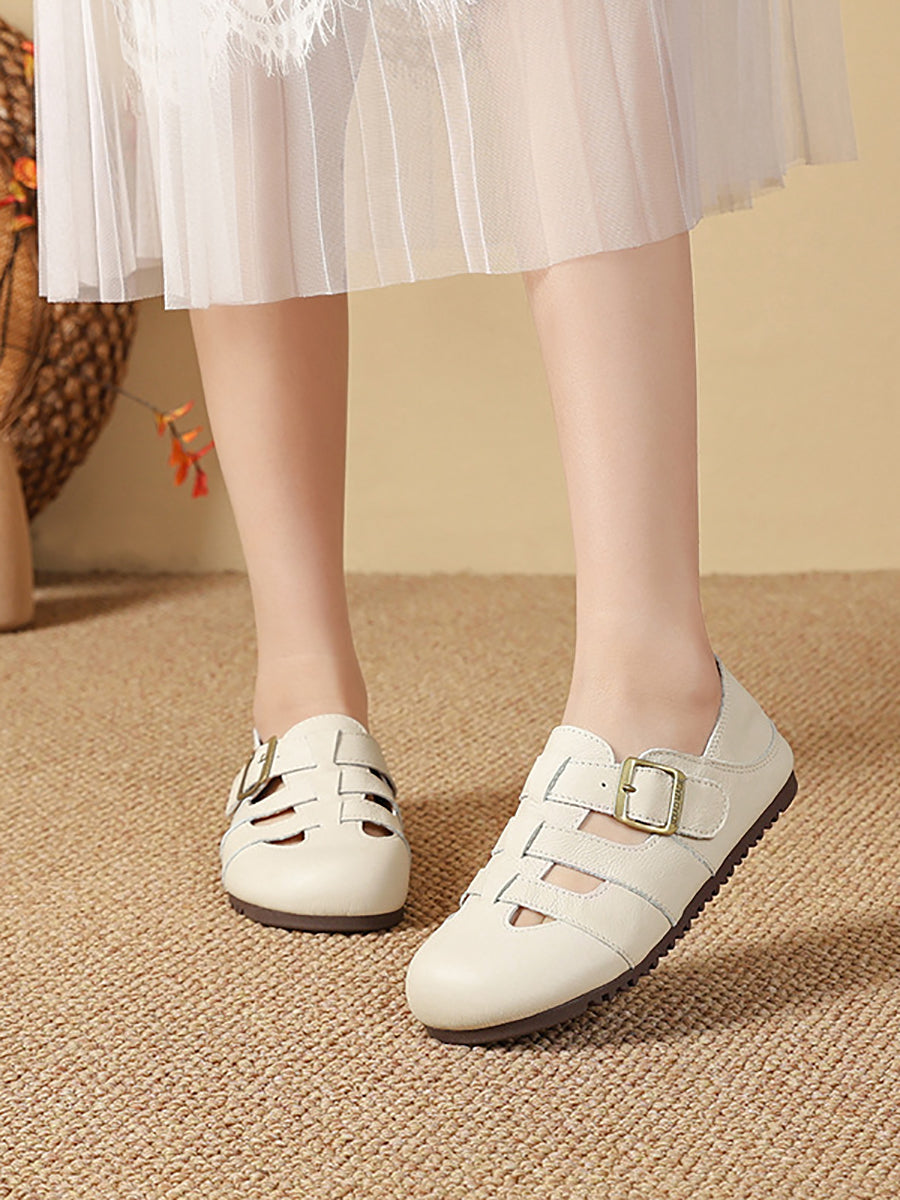 Women Summer Vintage Genuine Leather Flat Sandals