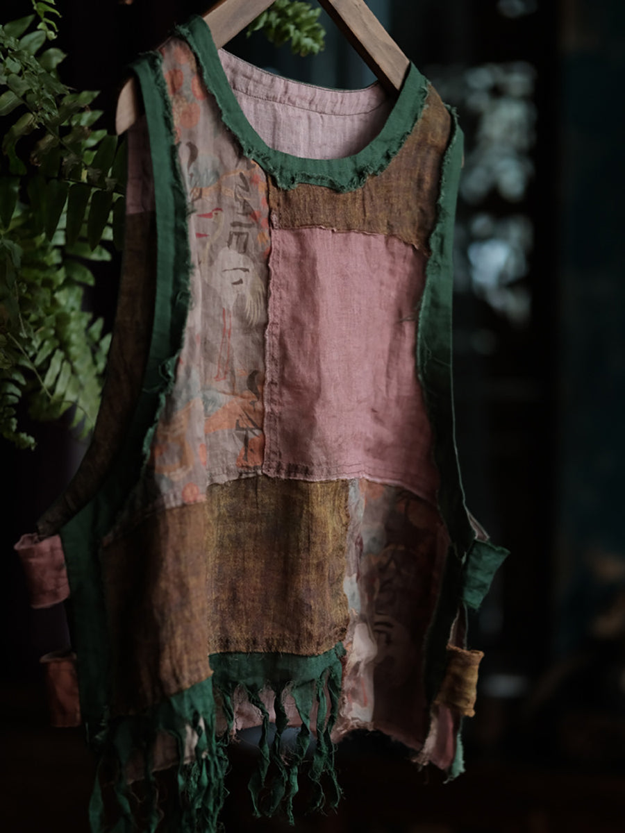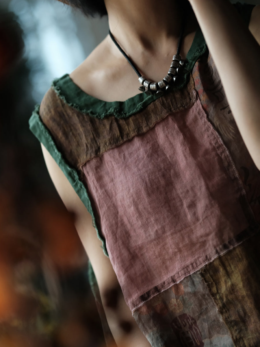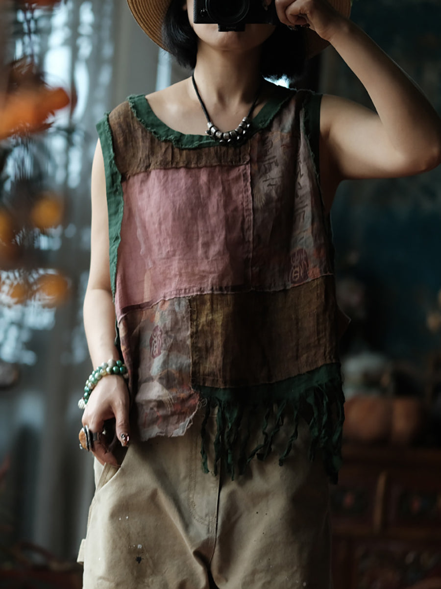 Women Summer Vintage Patchwork O-Neck Tank Top