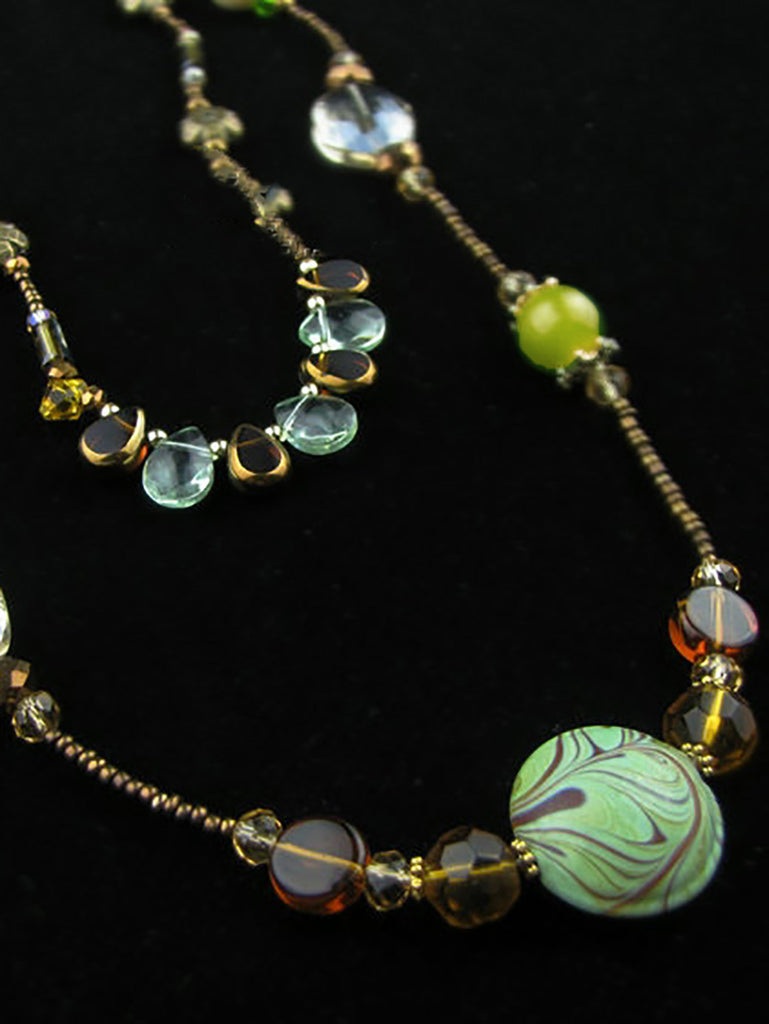Women Vintage Crystal Bead Acrylic Pandent Necklace