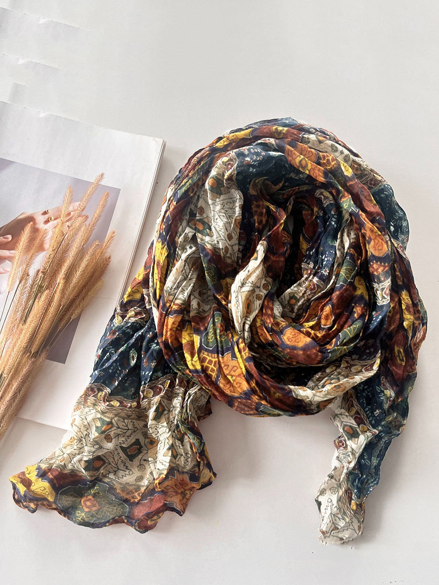 Women Vintage Flower Spliced Shawl Scarf