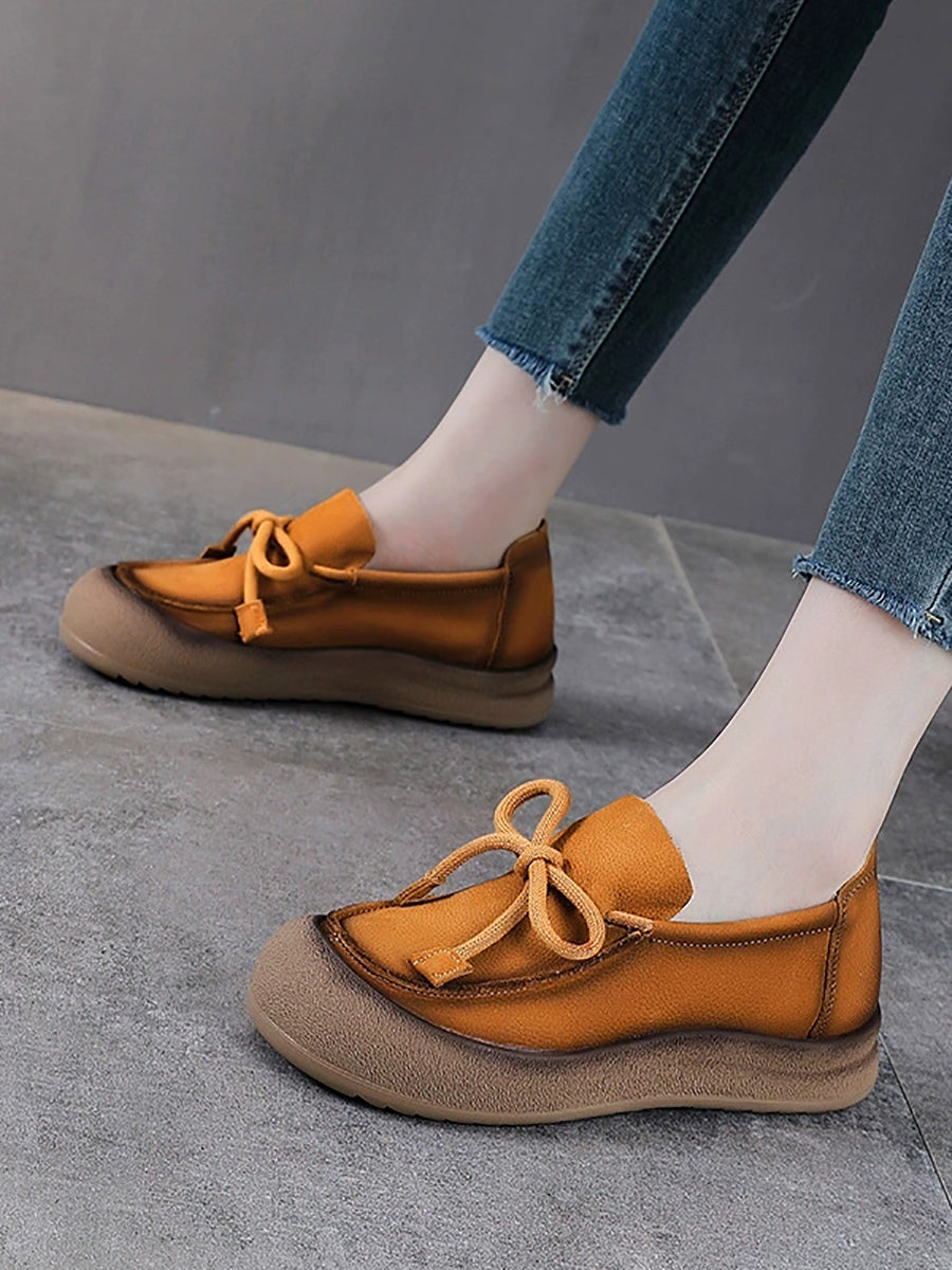 Women Vintage Genuine Leather Bowknot Flat Shoes
