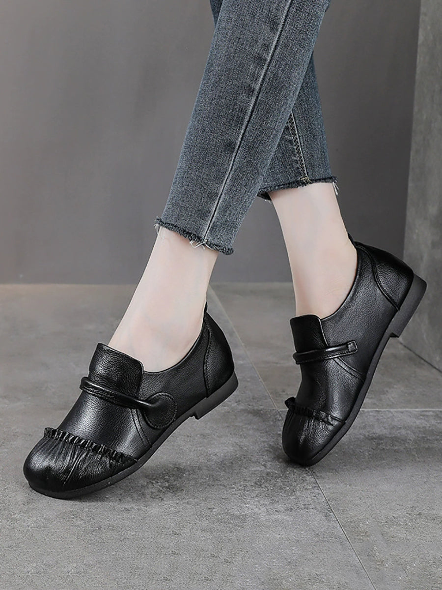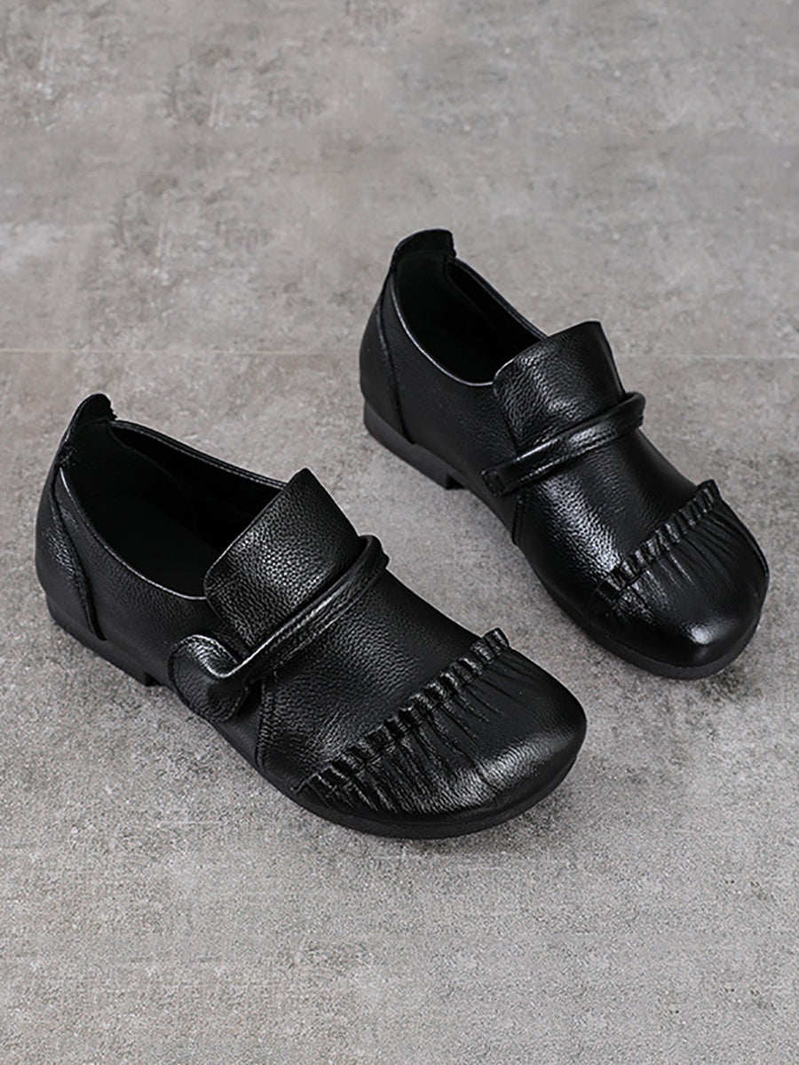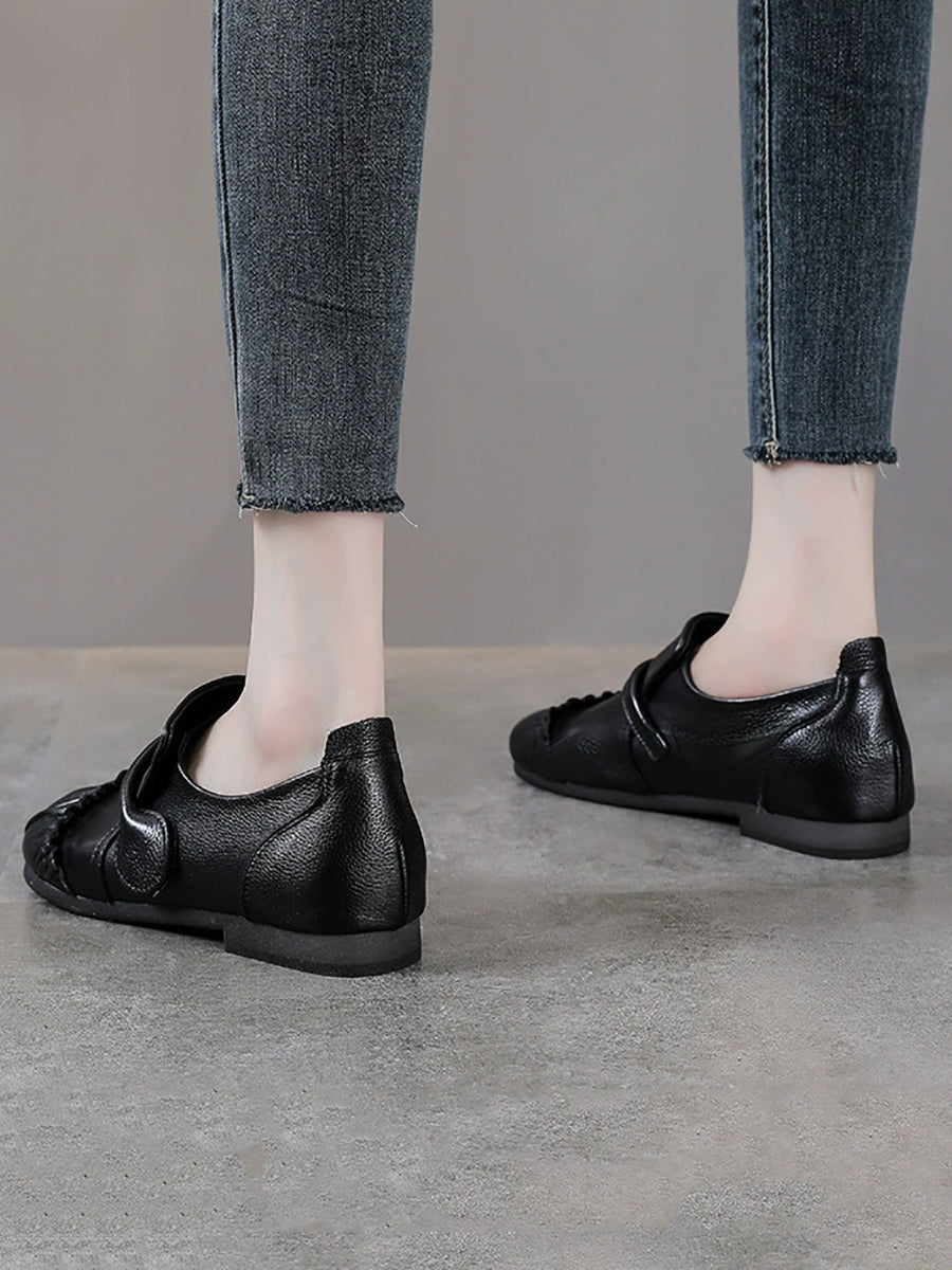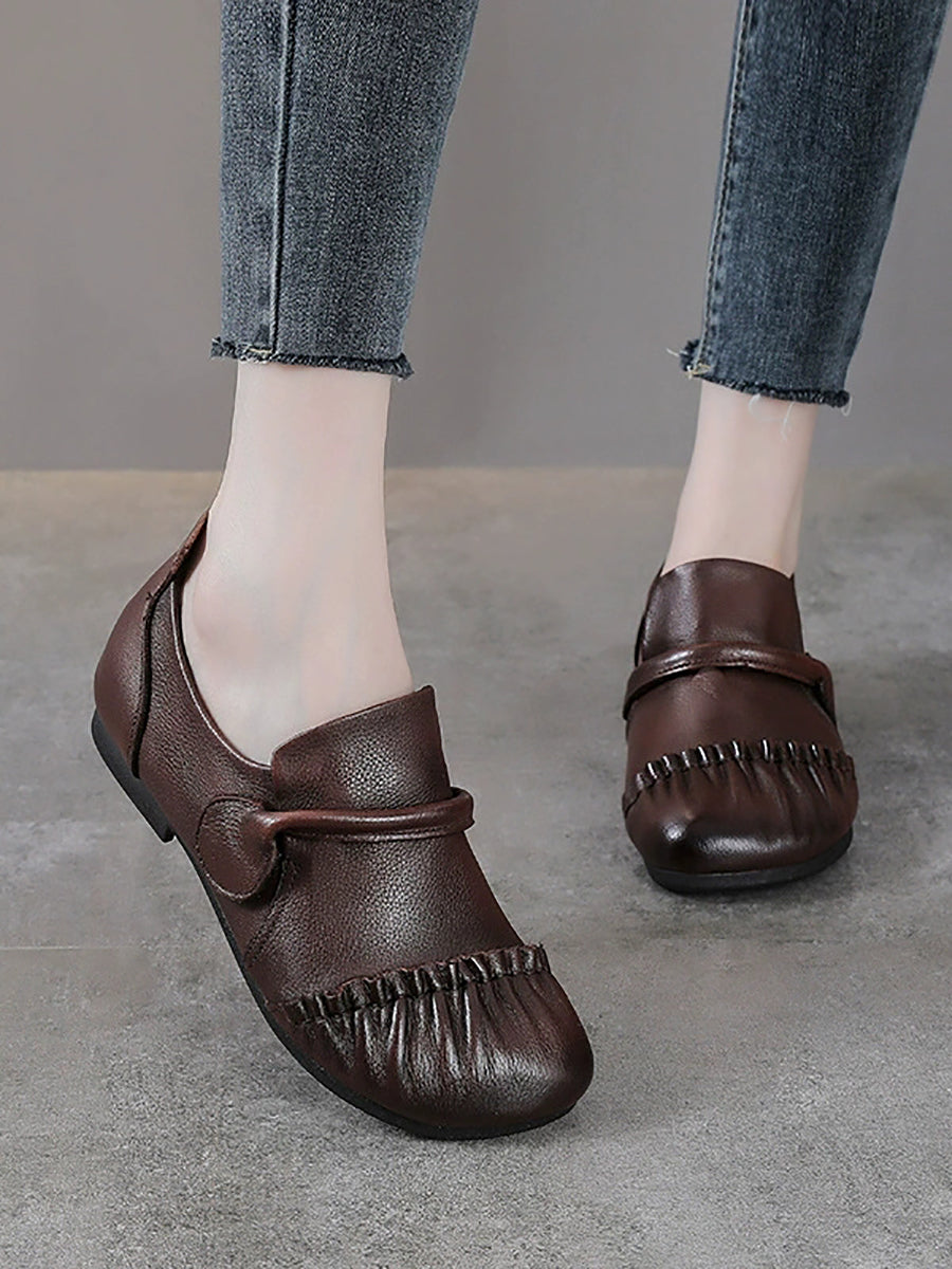 Women Vintage Genuine Leather Spliced Low Heel Shoes