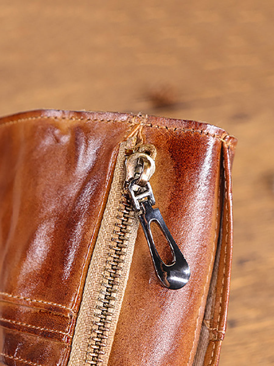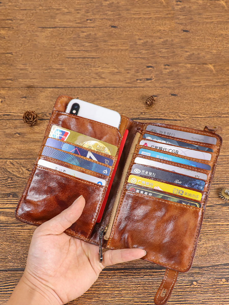 Women Vintage Pure Color Leather Wallet
