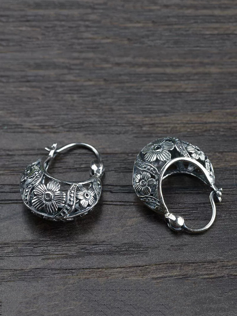 Women Vintage S925Silver Flower Earrings