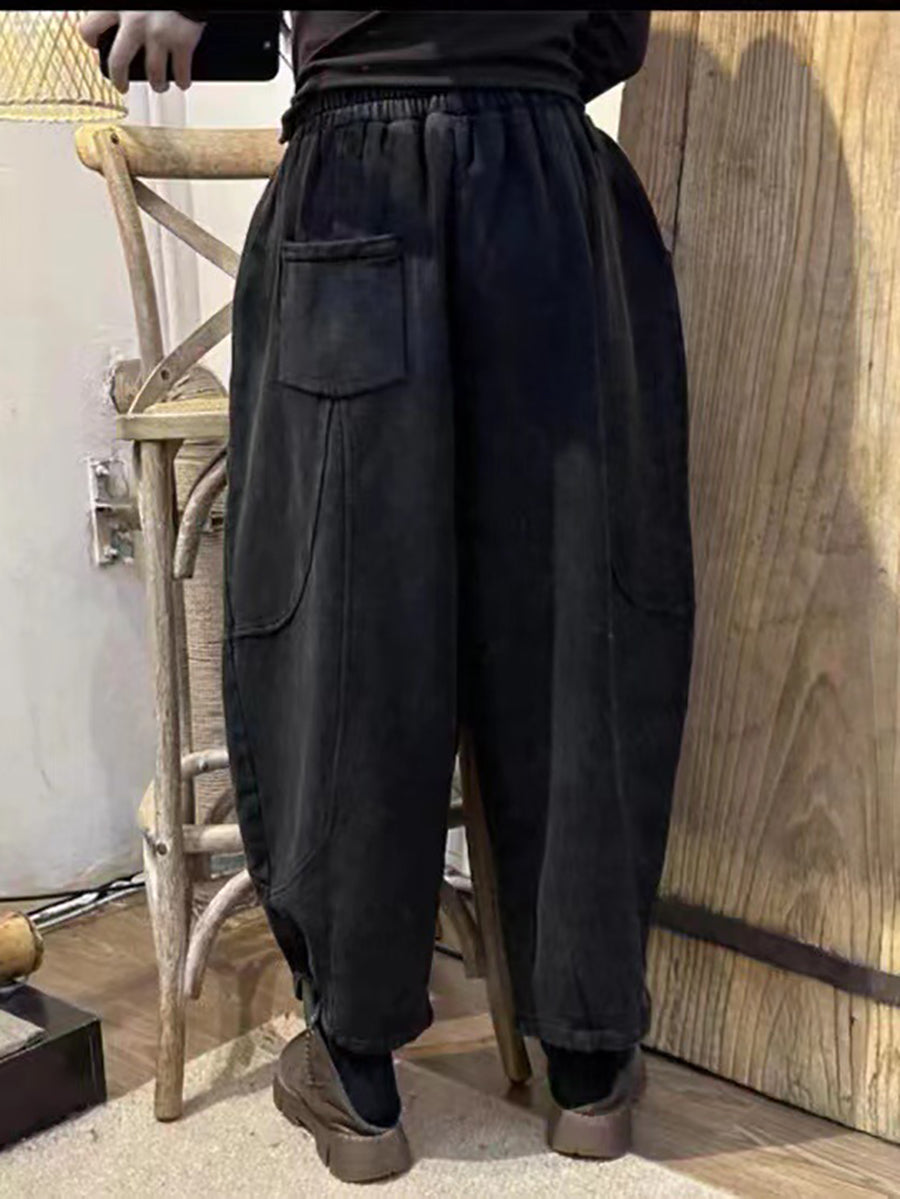 Women Vintage Worn Solid Spliced Loose Pants