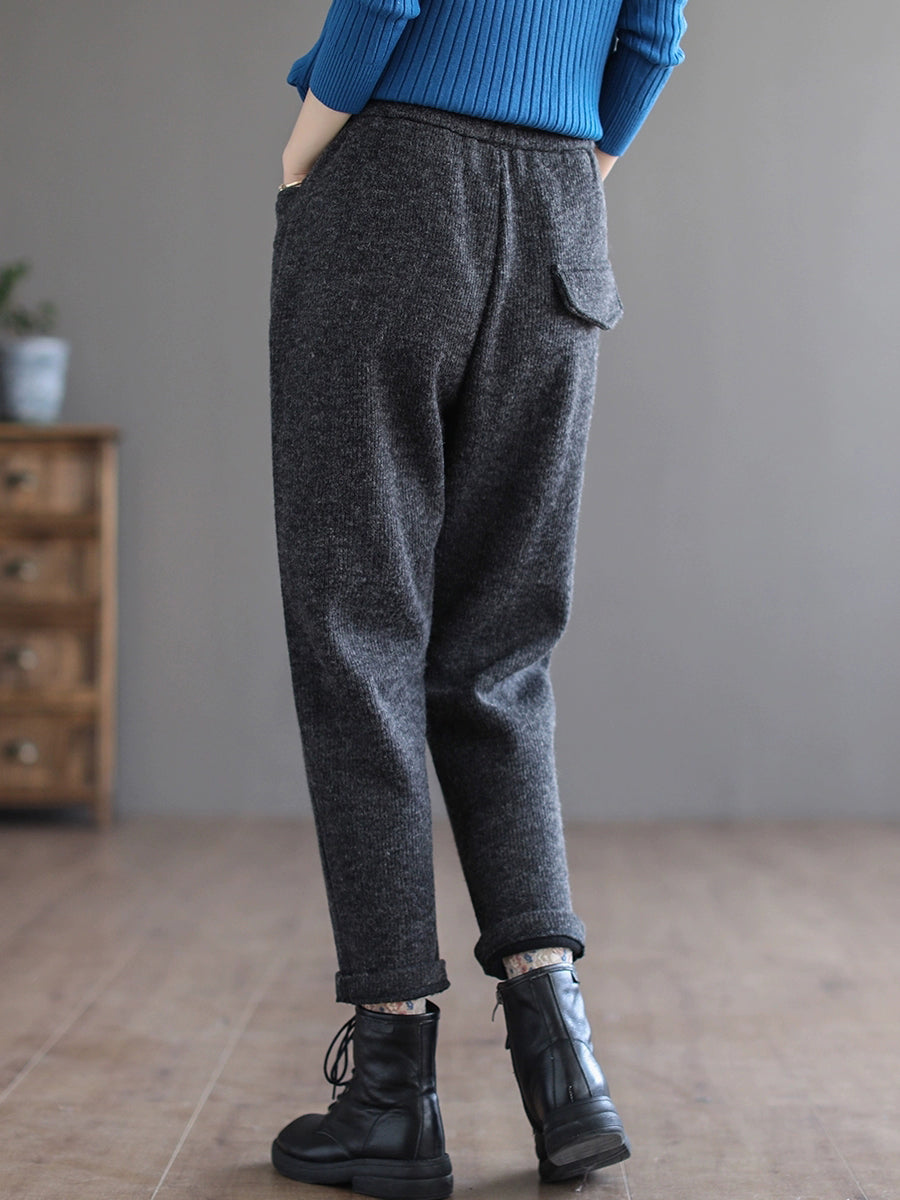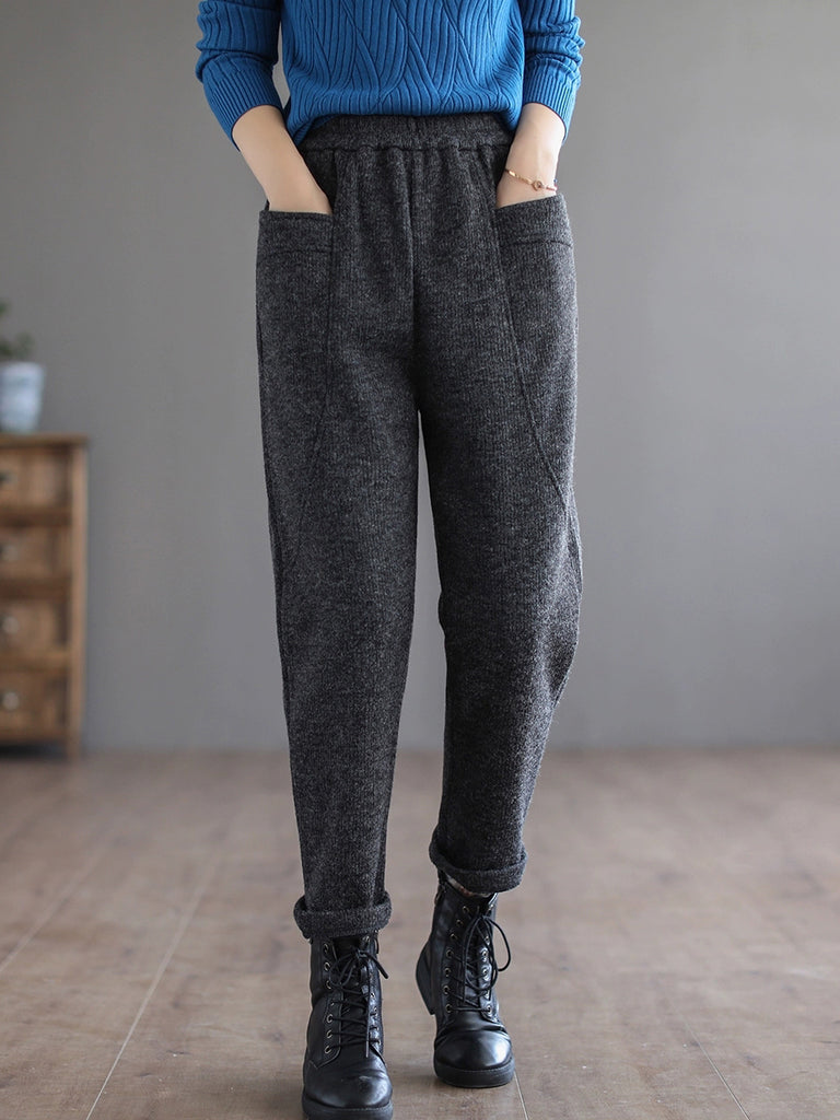 Women Winter Casual Pure Color Fleece-lined Harem Pants