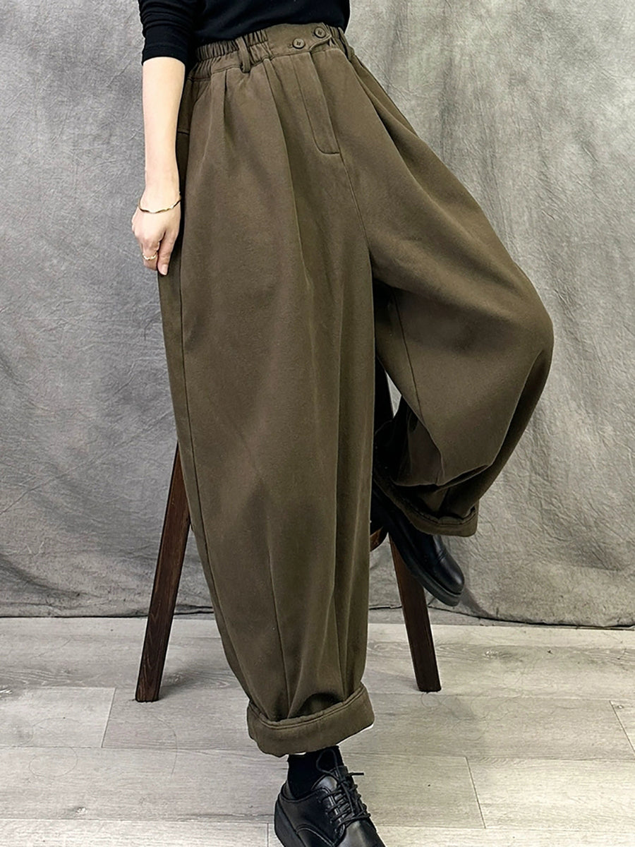 Women Winter Casual Pure Color Fleece-lined Harem Pants