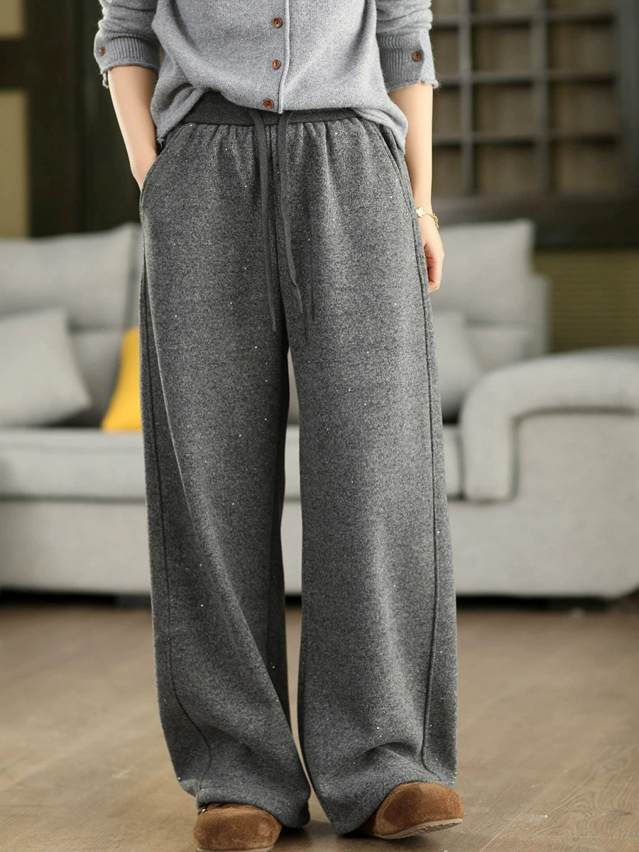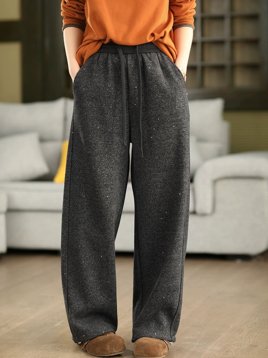 Women Winter Casual Pure Color Fleece-lined Straight Pants