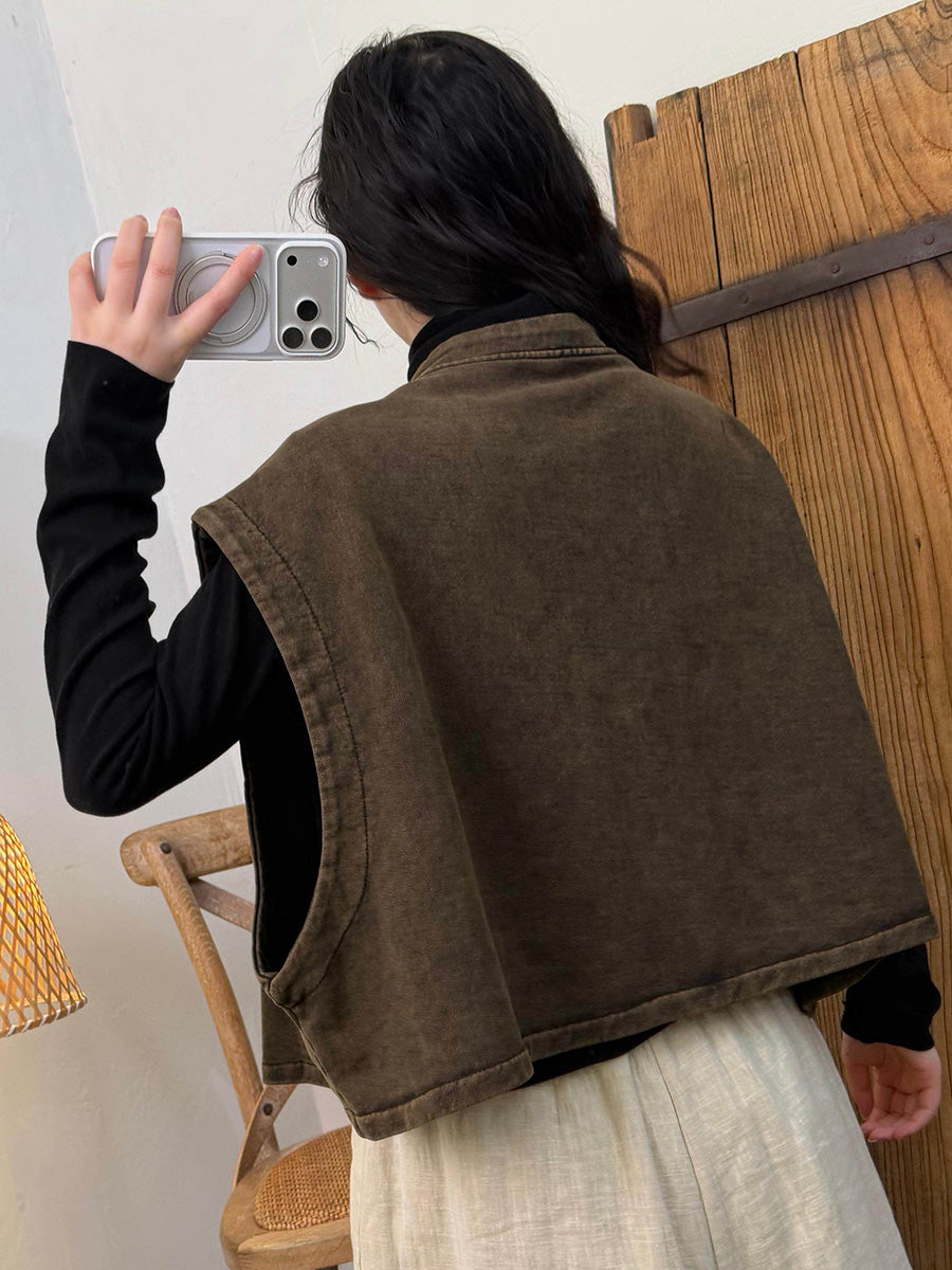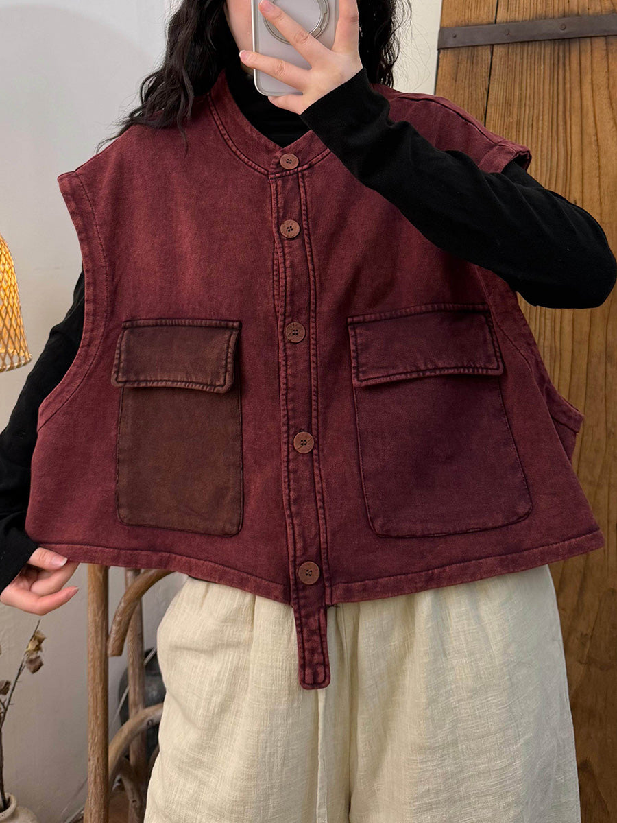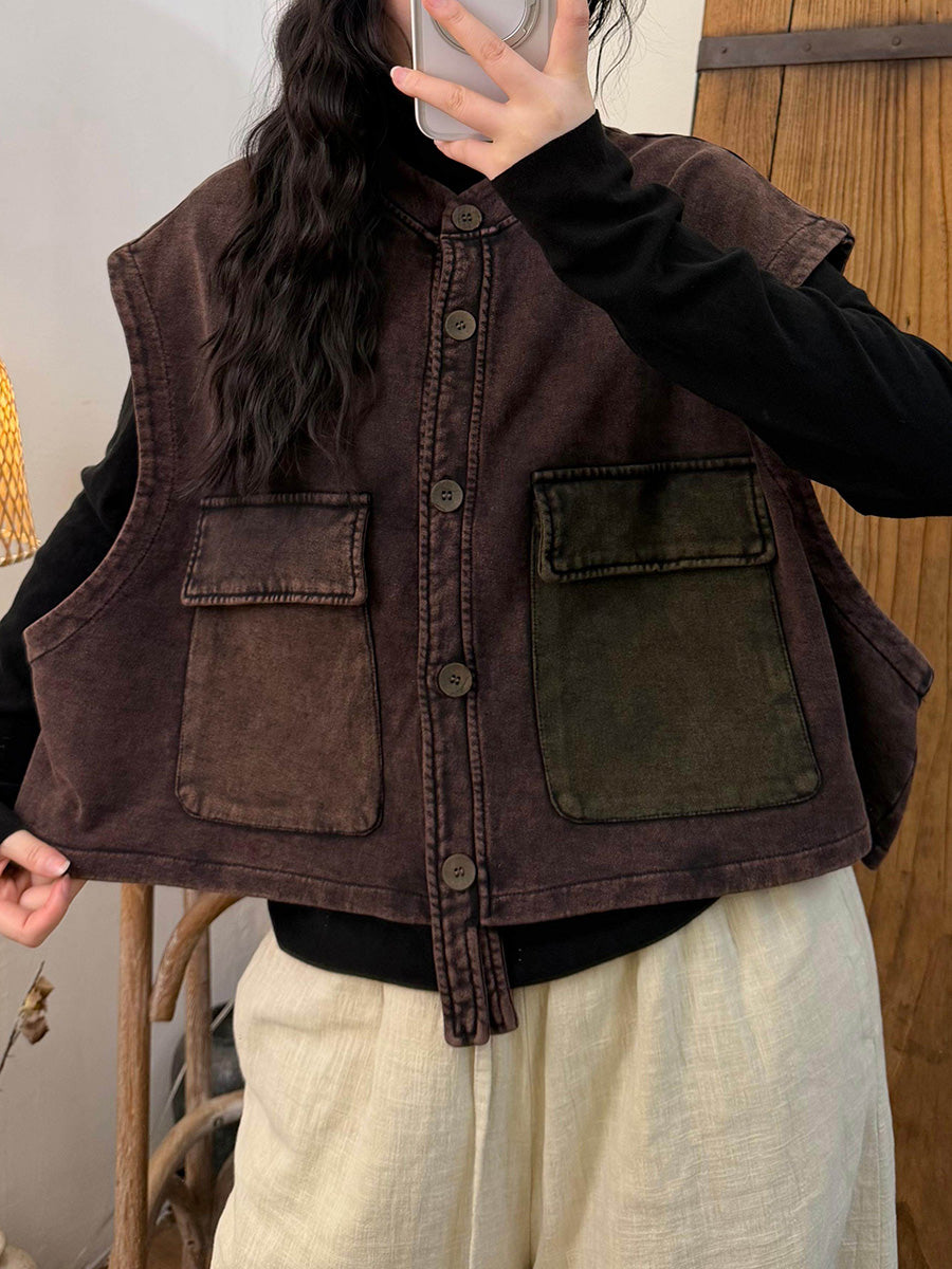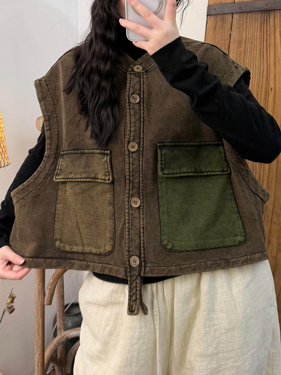 Women Winter Retro Colorblock Vest
