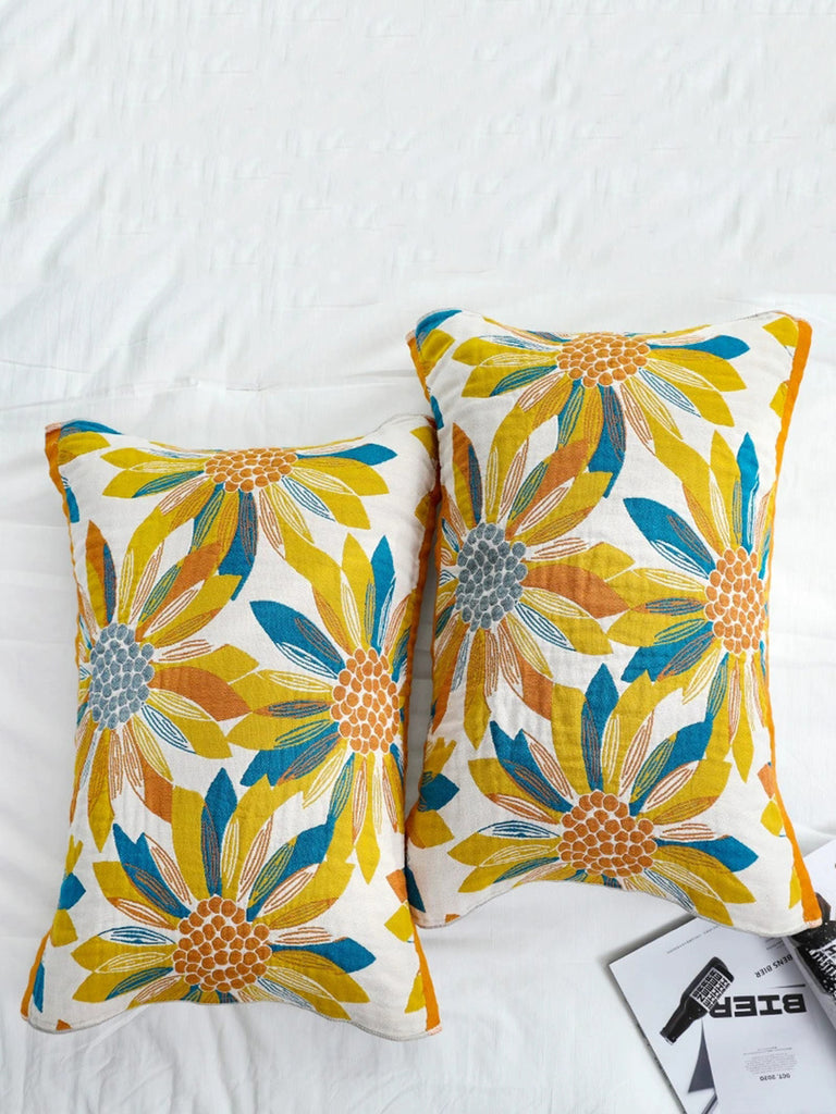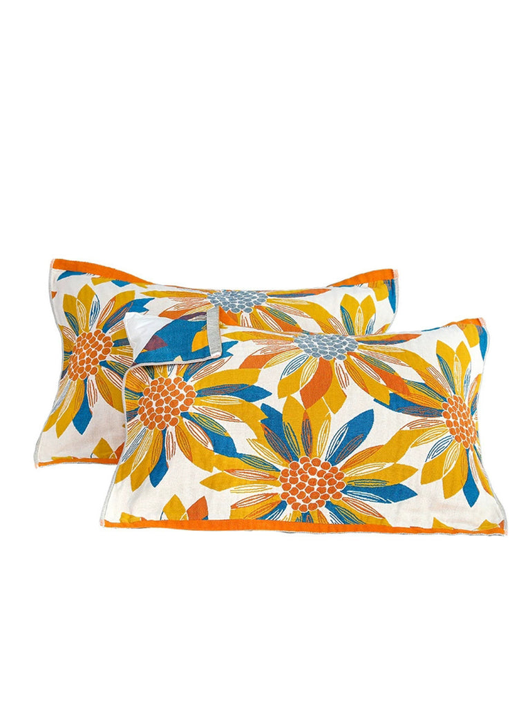 2 stk. bomuldspudebetræk med solsikkemotiv, blødt og svedabsorberende