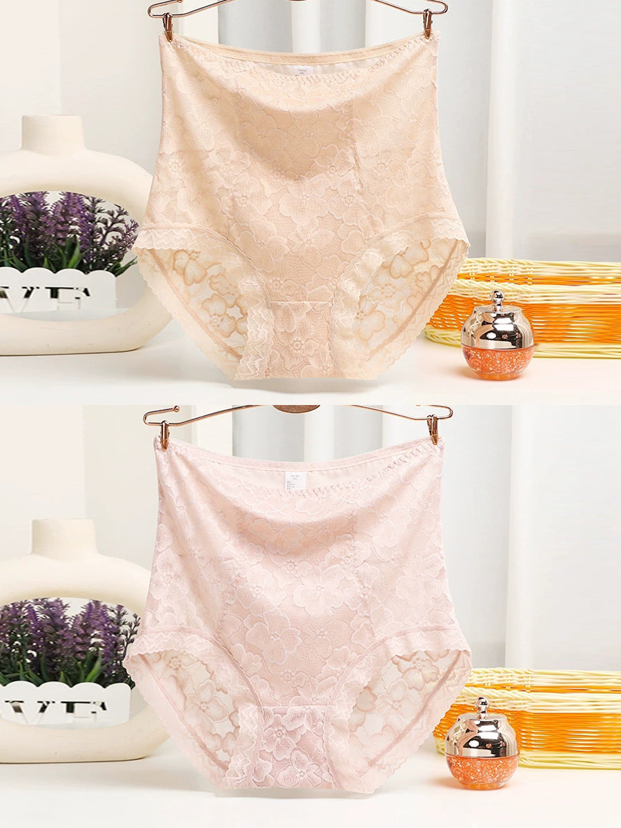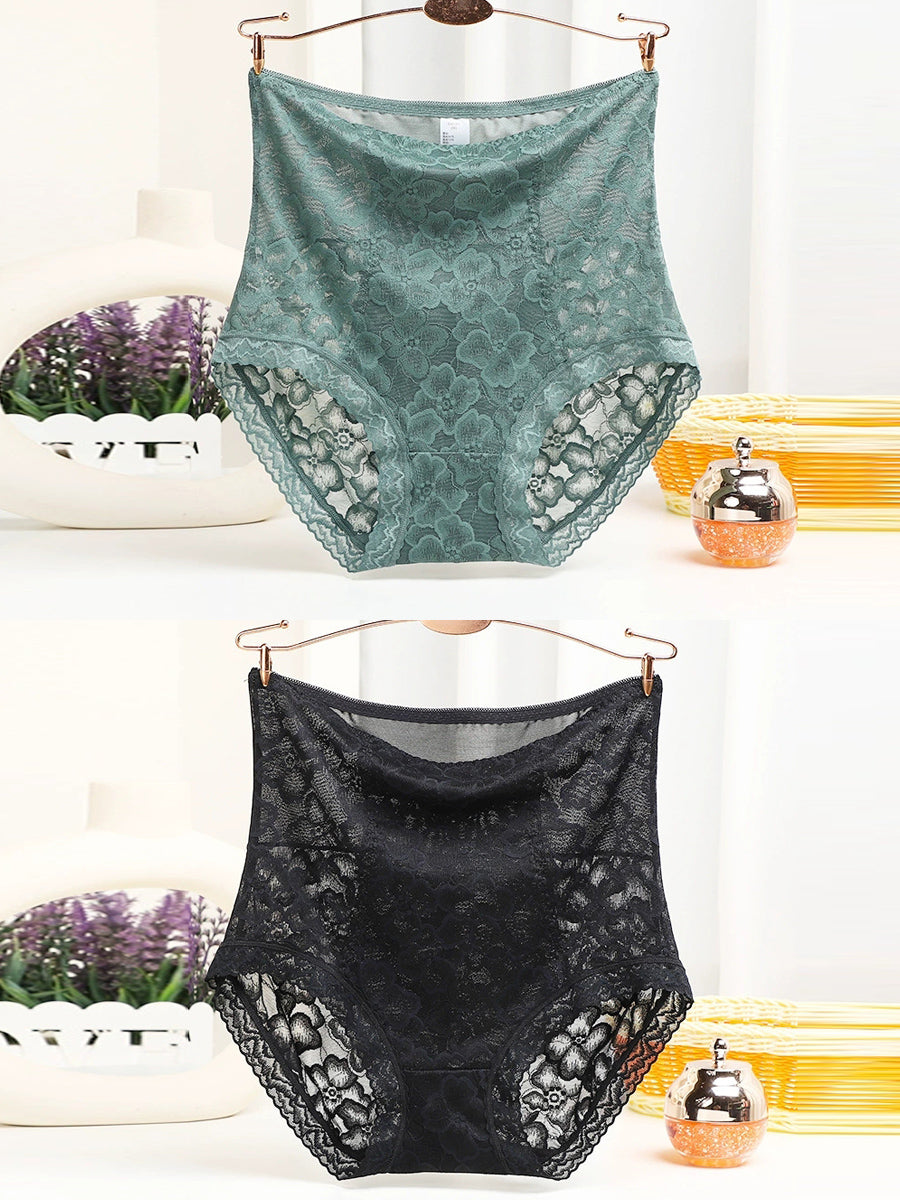 2 stk. højtaljede undertøj til kvinder med kunstnerisk blondeprint