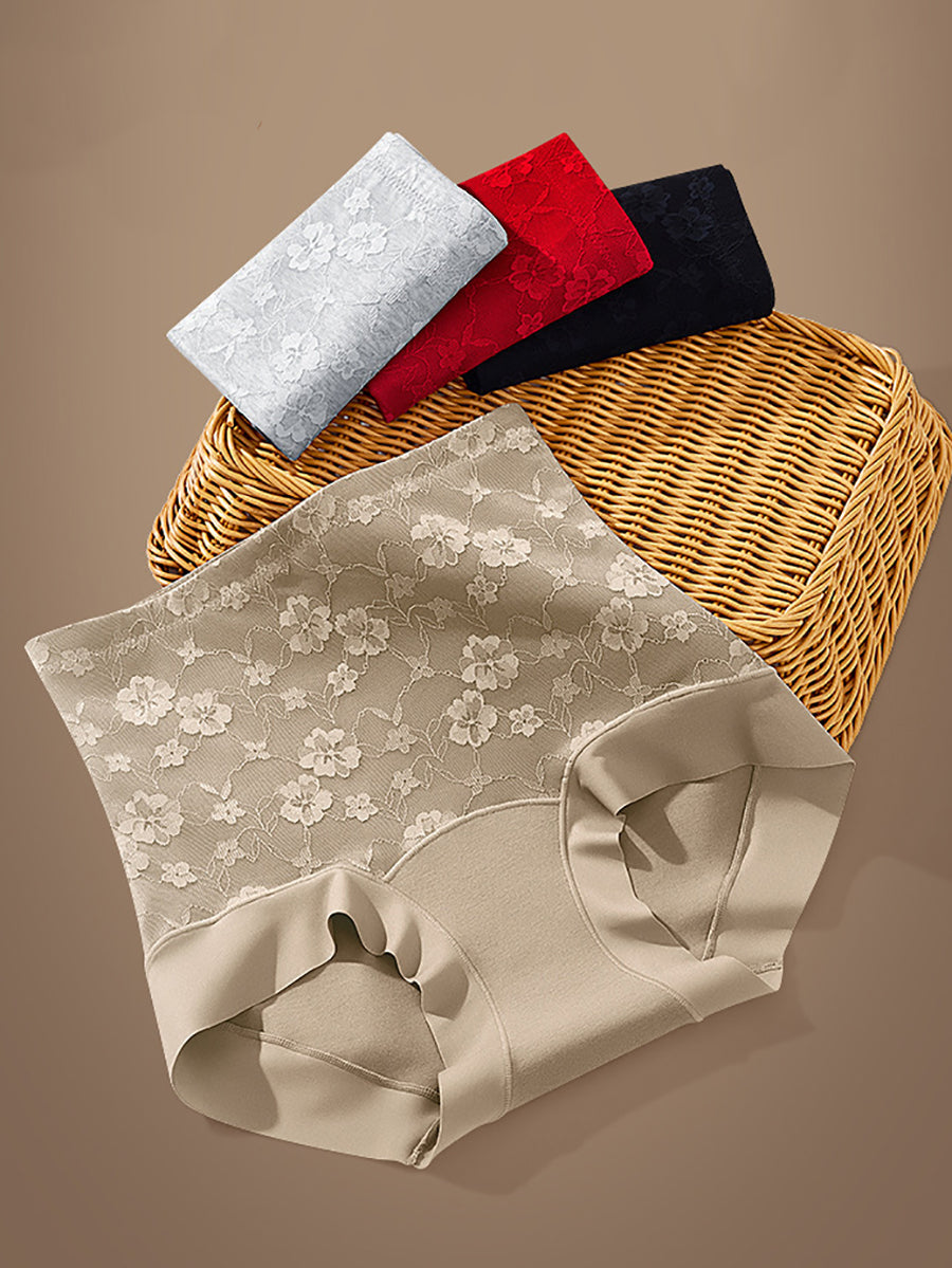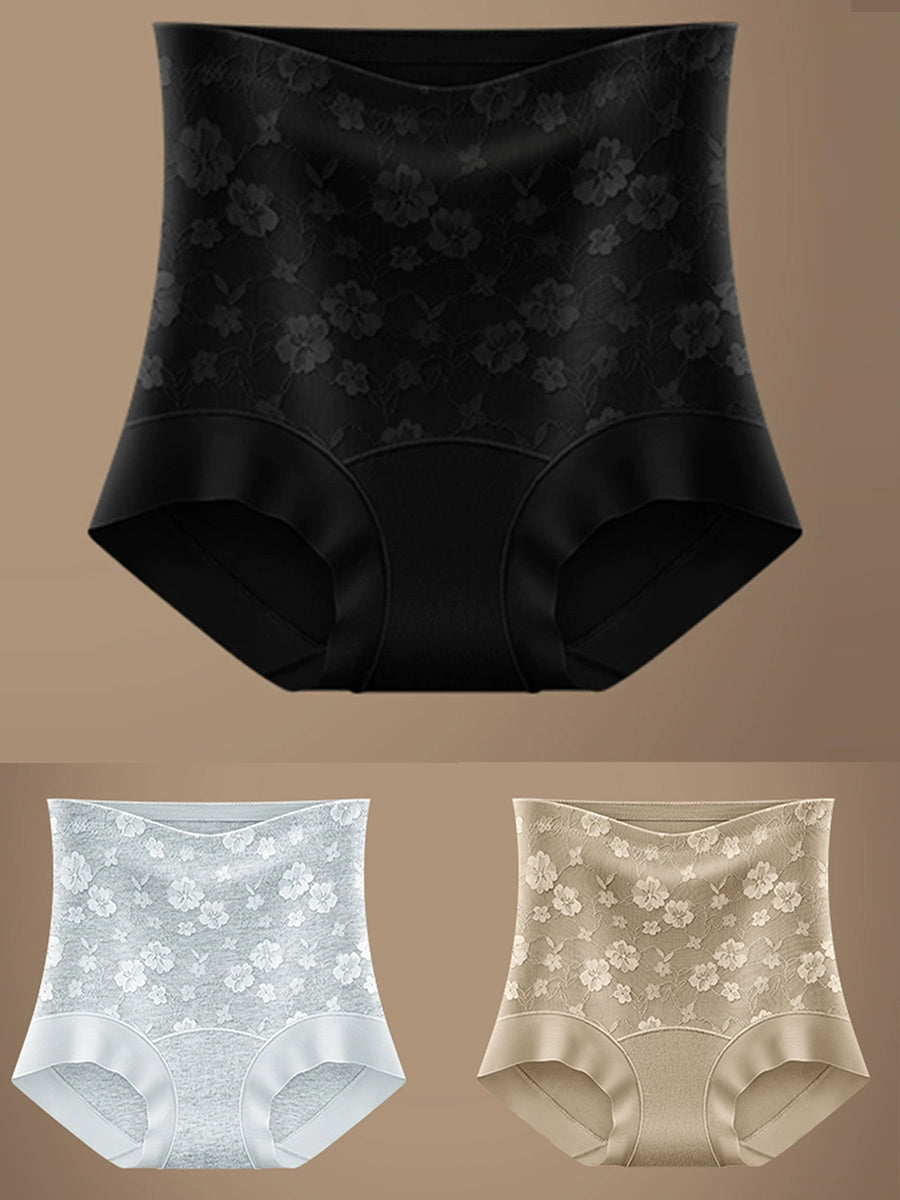 3 stk. kunstnerisk blomsterprintet højtaljet undertøj til kvinder