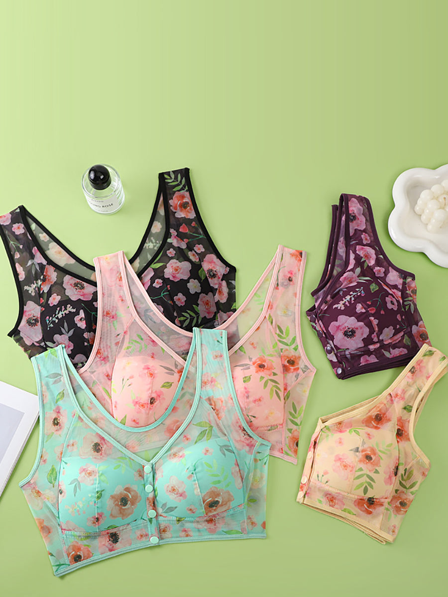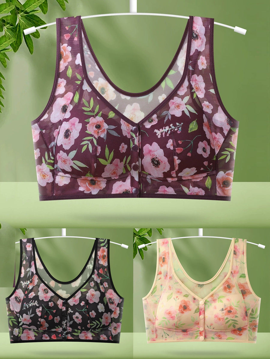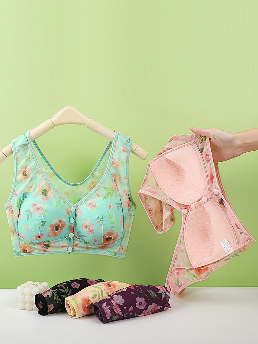 3 dele kvinder kunstnerisk blomster foran spænde trådløs bh