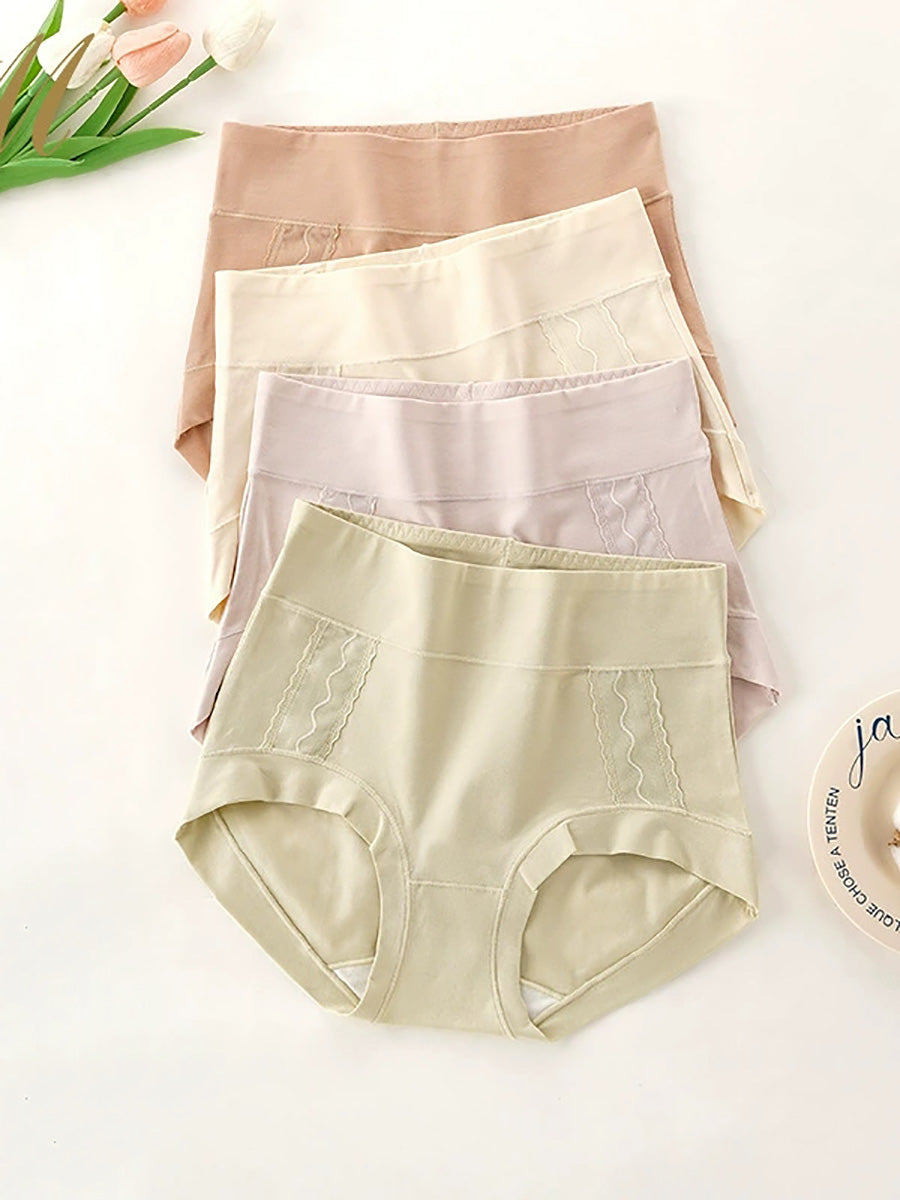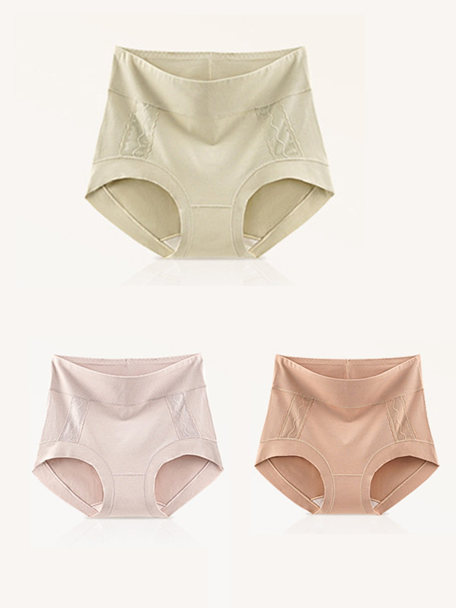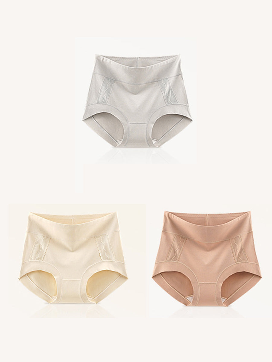 3 stykker kvinders kunstneriske, rene farver højtaljede undertøj