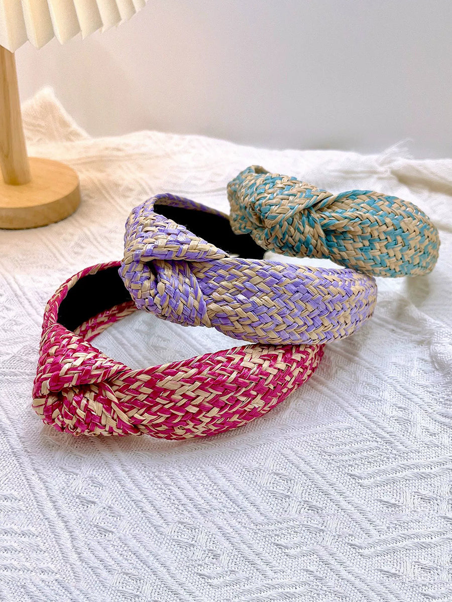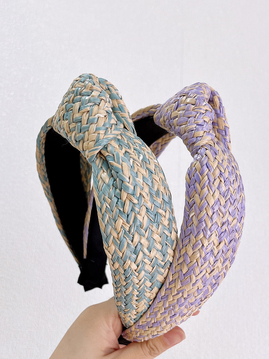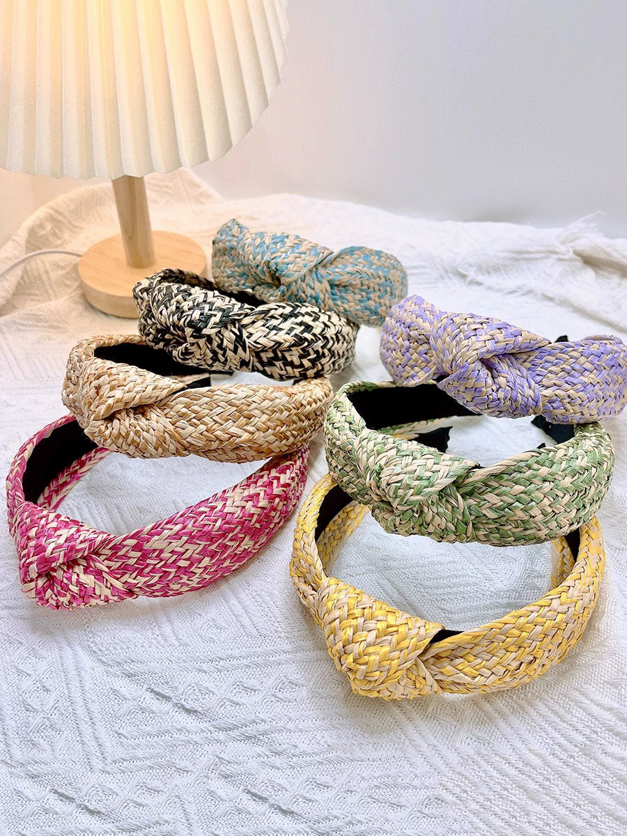 4 stk. kunstnerisk raffia-hårbånd med knude og græs